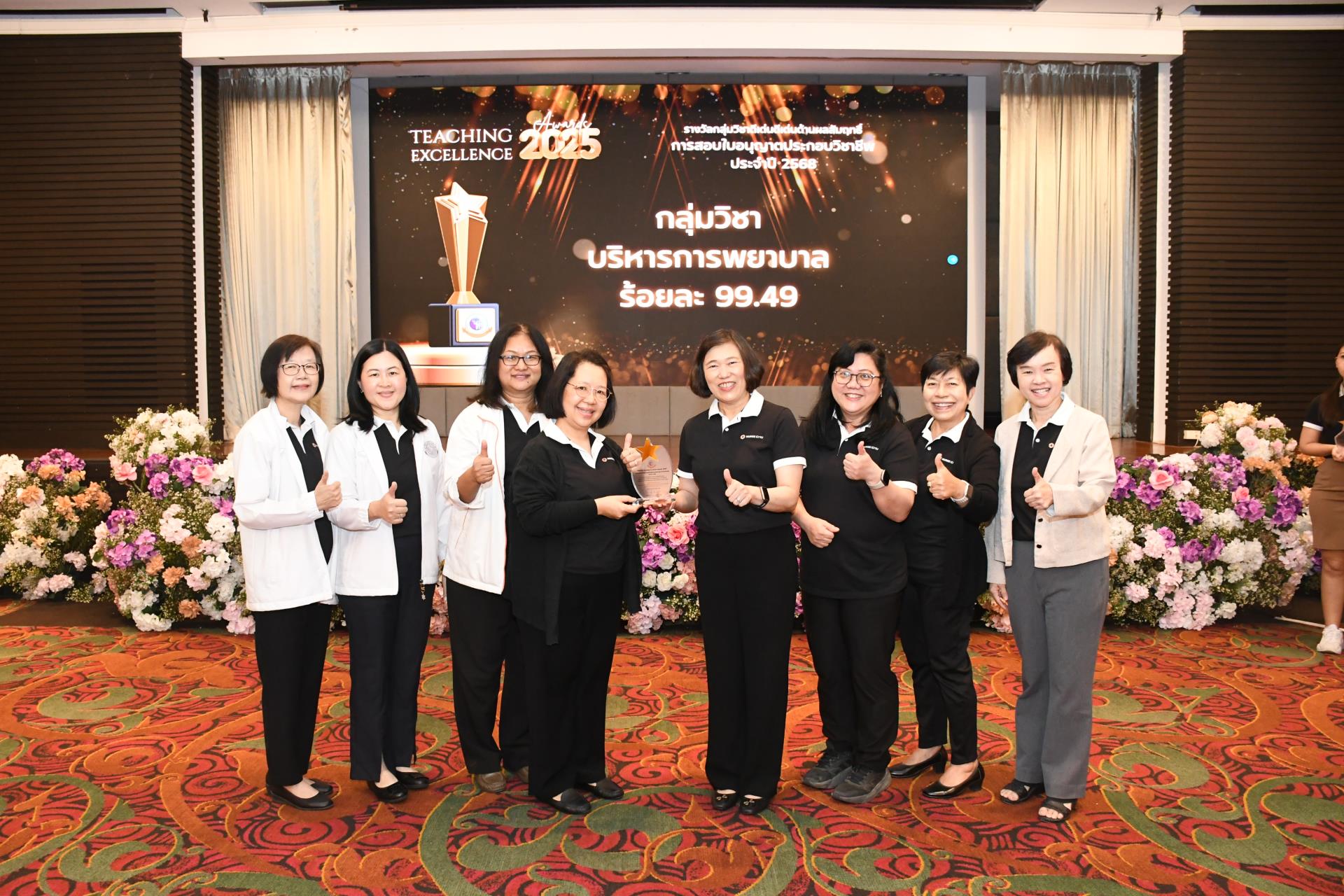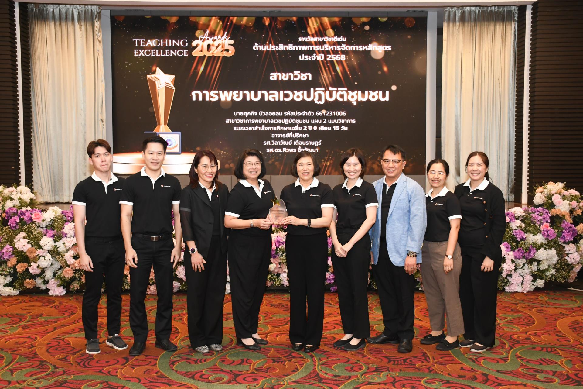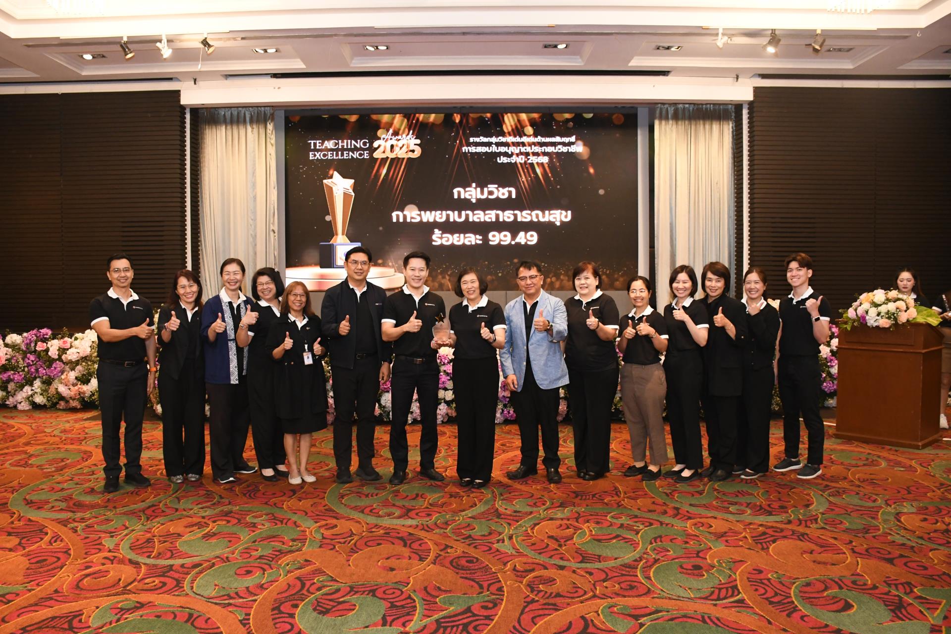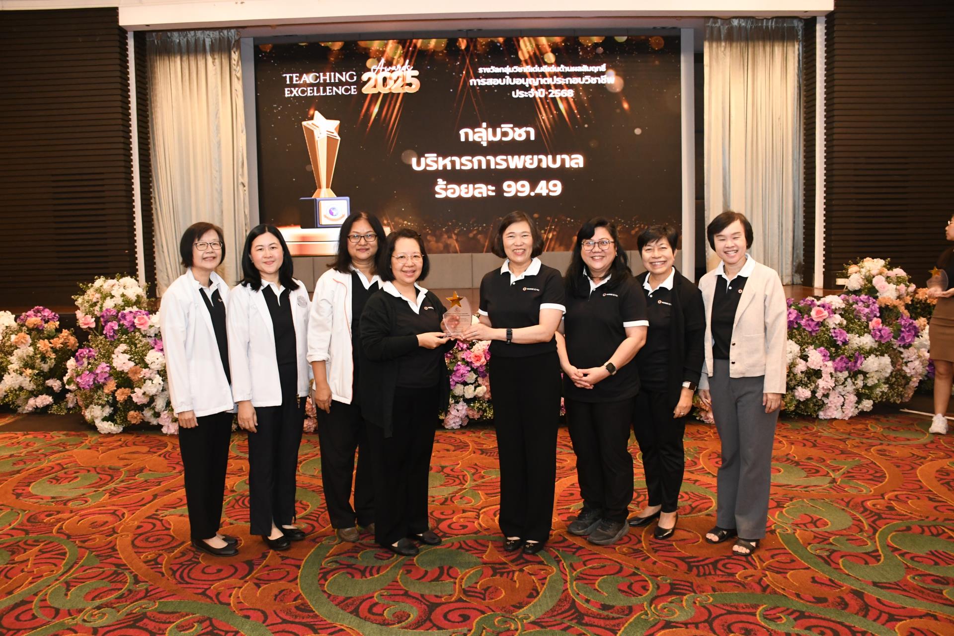 รางวัลกลุ่มวิชาดีเด่นด้านผลสัมฤทธิ์การสอบใบอนุญาตประกอบวิชาชีพ ประจำปี 2568 (ร้อยละนักศึกษาสอบผ่านการสอบความรู้ผู้ขอขึ้นทะเบียนและรับใบอนุญาตเป็นผู้ประกอบวิชาชีพการพยาบาล การผดุงครรภ์ หรือการพยาบาลและการผดุงครรภ์ จากสภาการพยาบาล ครั้งที่ 1 สูงสุด)
