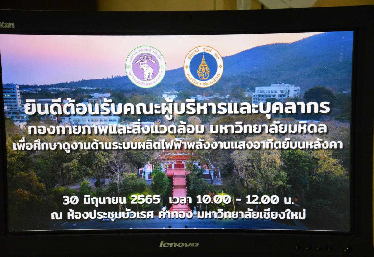 รองศาสตราจารย์ประเสริฐ ฤกษ์เกรียงไกร รองอธิการบดีมหาวิทยาลัยเชียงใหม่ ให้การต้อนรับรองศาสตราจารย์ ดร.กิติกร จามรดุสิต รองอธิการบดีฝ่ายสิ่งแวดล้อมและการจัดการอย่างยั่งยืน มหาวิทยาลัยมหิดลและคณะ ในโอกาสที่มาศึกษาดูงานด้านการบริหารจัดการพลังงานทดแทนระบบผลิตฟ้าพลังงานแสงอาทิตย์ (Solar Rooftop) ของมหาวิทยาลัยเชียงใหม่ โดยมีผู้ช่วยศาสตราจารย์ ดร.พฤกษ์ อักกะรังสี ผู้อำนวยการสถาบันวิจัยและพัฒนาพลังงานนครพิงค์ มหาวิทยาลัยเชียงใหม่ คณะผู้บริหารและเจ้าหน้าที่ ร่วมให้การต้อนรับและบรรยายสรุป ณ ห้องประชุมบัวเรศ คำทอง ชั้น 5 อาคารสำนักงานมหาวิทยาลัย 2 วันพฤหัสบดีที่ 30 มิถุนายน พ.ศ. 2565