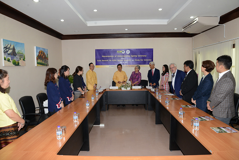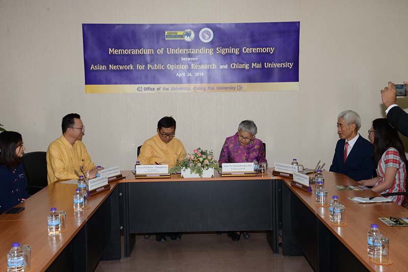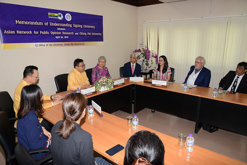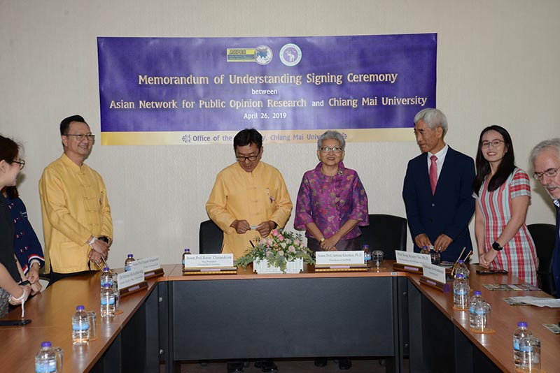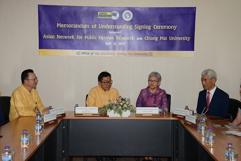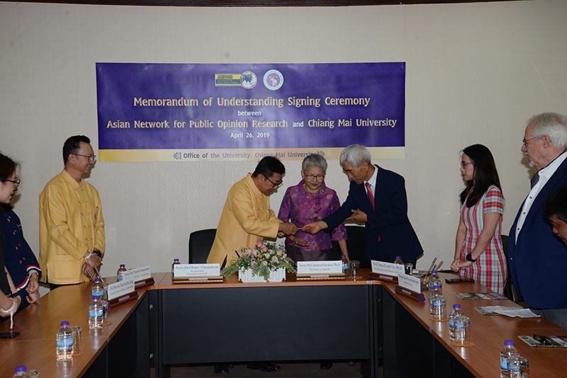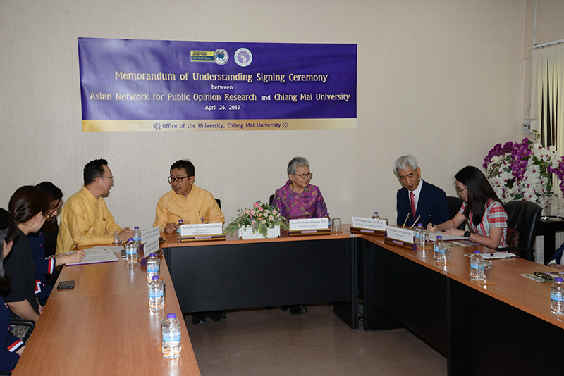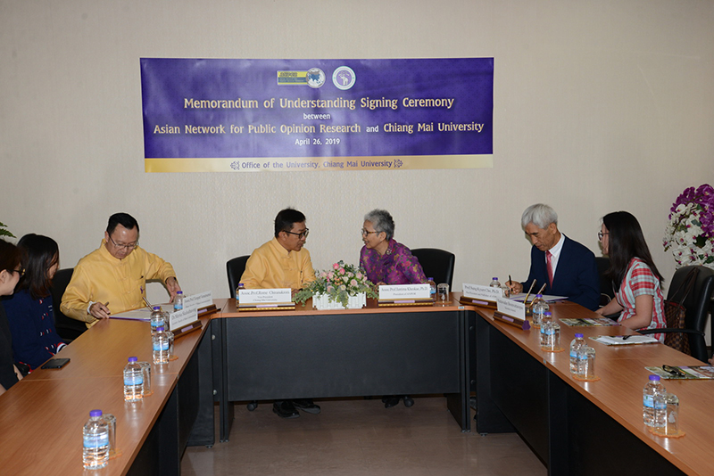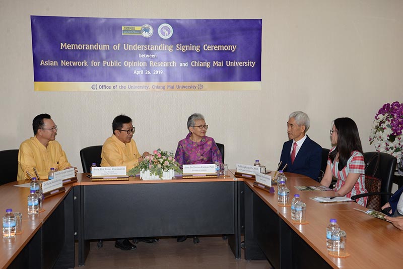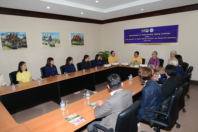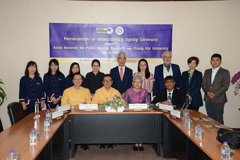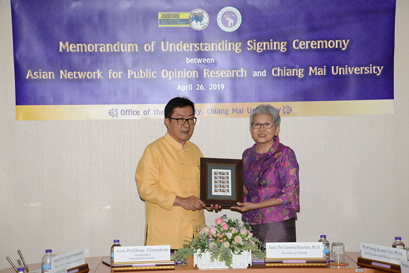 รองศาสตราจารย์ โรม จิรานุกรม รองอธิการบดีมหาวิทยาลัยเชียงใหม่ ต้อนรับ Assoc. Prof. Dr. Jantima Kheokao, President of Asian Network for Public Opinion Research (ANPOR) ในโอกาสที่มาลงนามบันทึกข้อตกลงความร่วมมือ ระหว่างมหาวิทยาลัยเชียงใหม่ และ ANPOR เพื่อการจัดโครงการประชุมวิชาการนานาชาติ The 7th ANPOR ANNUAL Conference 2019 ณ ห้องประชุมกองวิเทศสัมพันธ์ สำนักงานมหาวิทยาลัย มหาวิทยาลัยเชียงใหม่ เมื่อวันศุกร์ที่ 26 มีนาคม พ.ศ. 2562