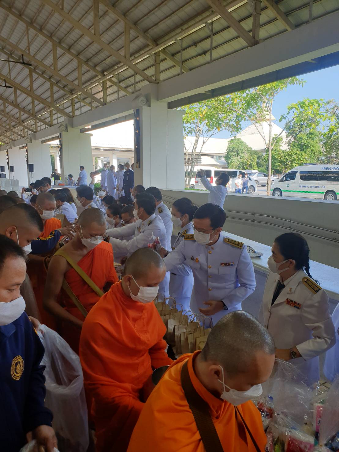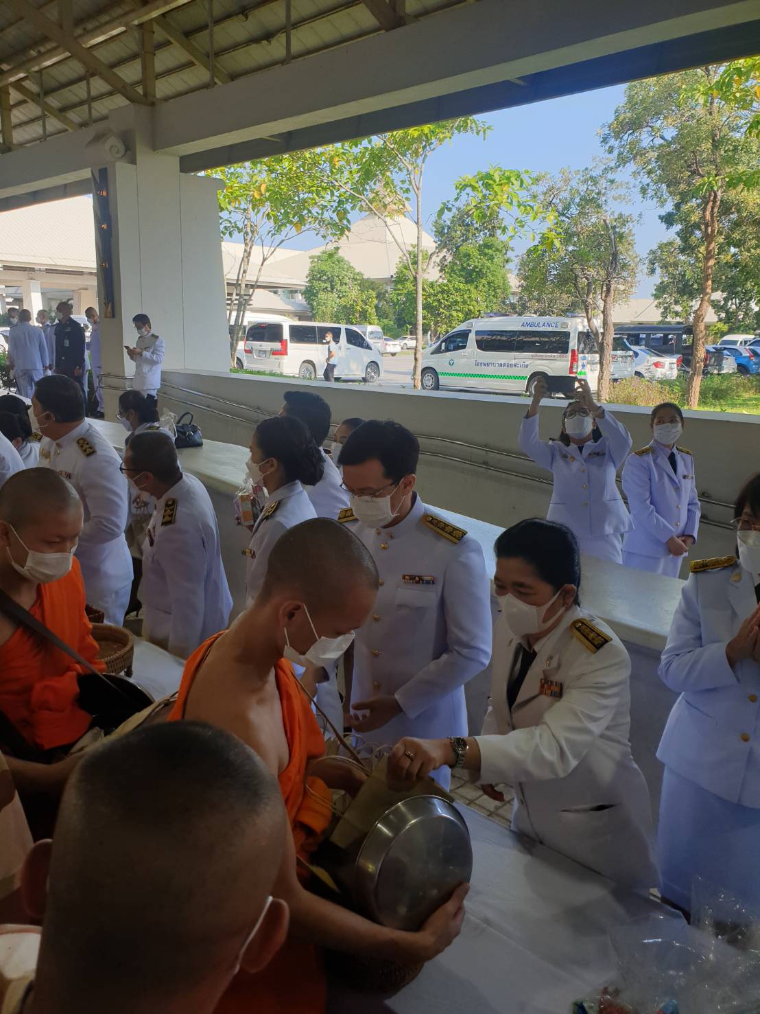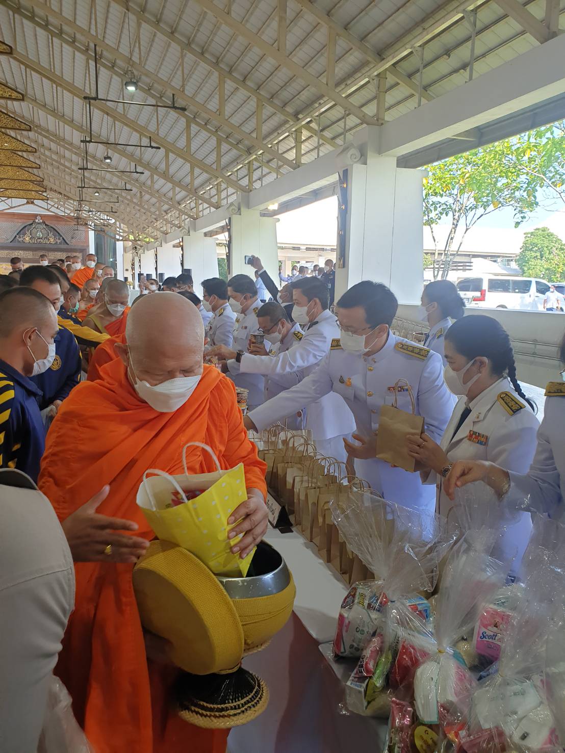 พิธีทำบุญตักบาตรพระสงฆ์และสามเณร จำนวน 89 รูป น้อมรำลึกในพระมหากรุณาธิคุณเนื่องในวันคล้ายวันสวรรคต พระบาทสมเด็จพระบรมชนกาธิเบศร มหาภูมิพลอดุลยเดชมหาราช บรมนาถบพิตร