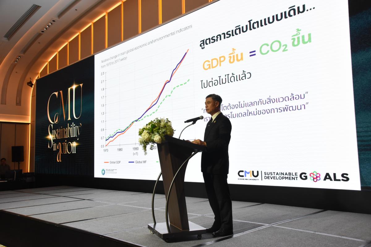 CMU Sustainability in Action 2025 ถือเป็นหมุดหมายสำคัญของมหาวิทยาลัยเชียงใหม่ ในการผนึกกำลังจากทุกภาคส่วน เพื่อร่วมกันกำหนดทิศทางอนาคตของการศึกษาไทย และยกระดับสังคมไปสู่ความยั่งยืนอย่างเป็นระบบ บนพื้นฐานของความร่วมมือ ความรับผิดชอบ และจิตสำนึกต่อส่วนรวม โดยภายในงานได้มีการบรรยายและการเสวนาจากผู้นำองค์กรภาคธุรกิจและผู้บริหารมหาวิทยาลัย เพื่อแลกเปลี่ยนวิสัยทัศน์ด้านการบริหารจัดการองค์กรในประเด็นที่สำคัญผ่านบทบาทของการศึกษาและภาคธุรกิจ ต่อการขับเคลื่อนความยั่งยืน และการสร้างเครือข่ายความร่วมมือเพื่อพัฒนาบัณฑิตในอนาคต