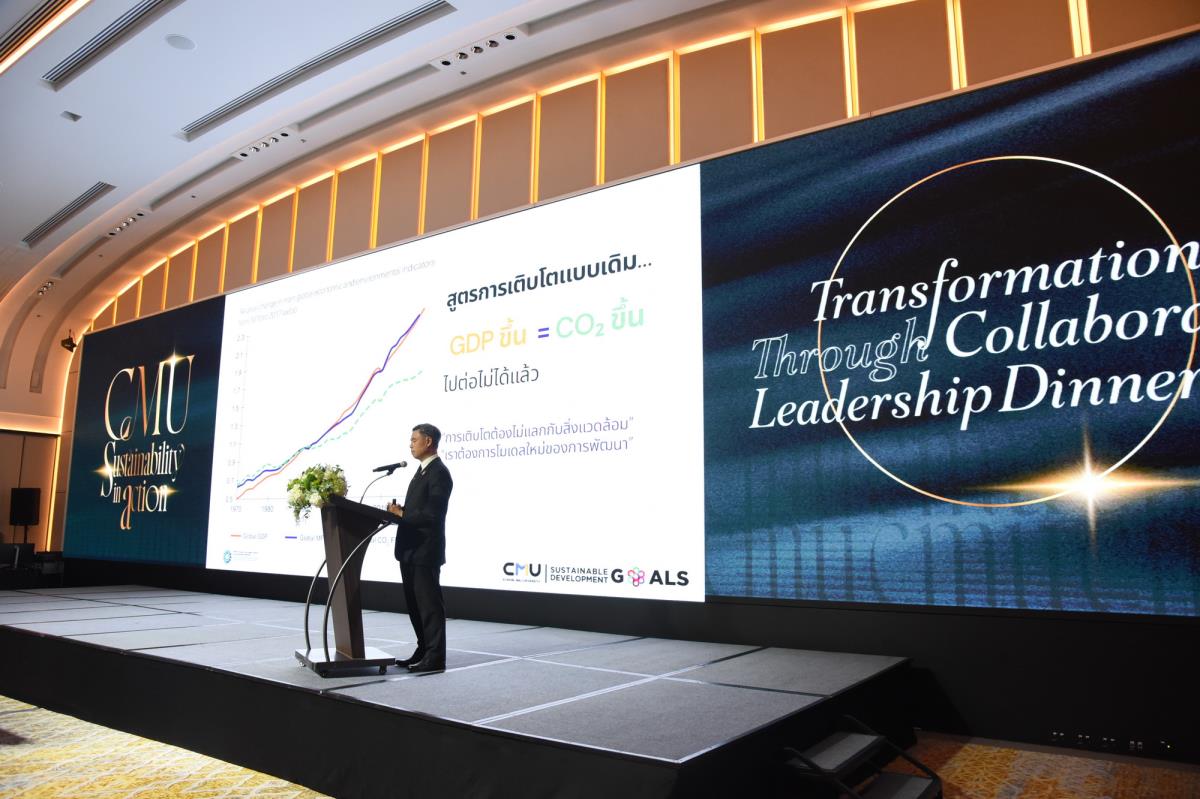 มหาวิทยาลัยเชียงใหม่ จัดงาน “CMU SUSTAINABILITY IN ACTION: Transformation Through Collaboration Leadership Dinner” เมื่อวันอังคารที่ 25 พฤศจิกายน 2568 ณ ห้องเดอะ แม่ปิง แกรนด์บอลรูม โรงแรมอินเตอร์คอนติเนนตัล เชียงใหม่ แม่ปิง จังหวัดเชียงใหม่ โดยมีผู้บริหารระดับสูงจากภาคธุรกิจและผู้บริหารมหาวิทยาลัยเชียงใหม่ เข้าร่วมอย่างพร้อมเพรียง เพื่อร่วมแลกเปลี่ยนวิสัยทัศน์และต่อยอดความร่วมมือเชิงยุทธศาสตร์ด้าน “การศึกษาและความยั่งยืน” ทั้งในระดับองค์กรและระดับประเทศ