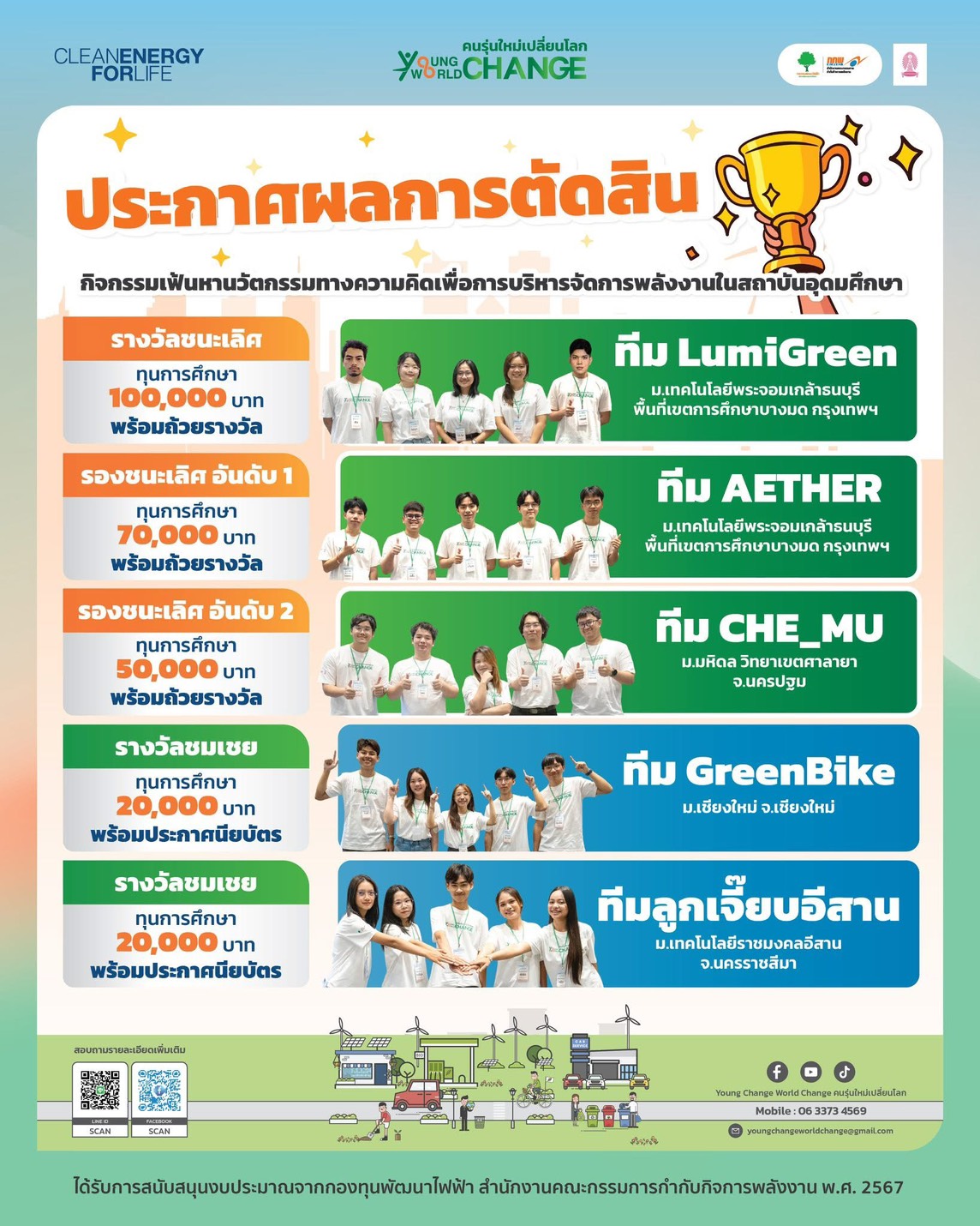 ทีมนักศึกษา มช. “GreenBike” คว้ารางวัลชมเชยโครงการ “Young Change World Change สร้างนวัตกรรมพลังงานสะอาดขับเคลื่อนสังคมยั่งยืน