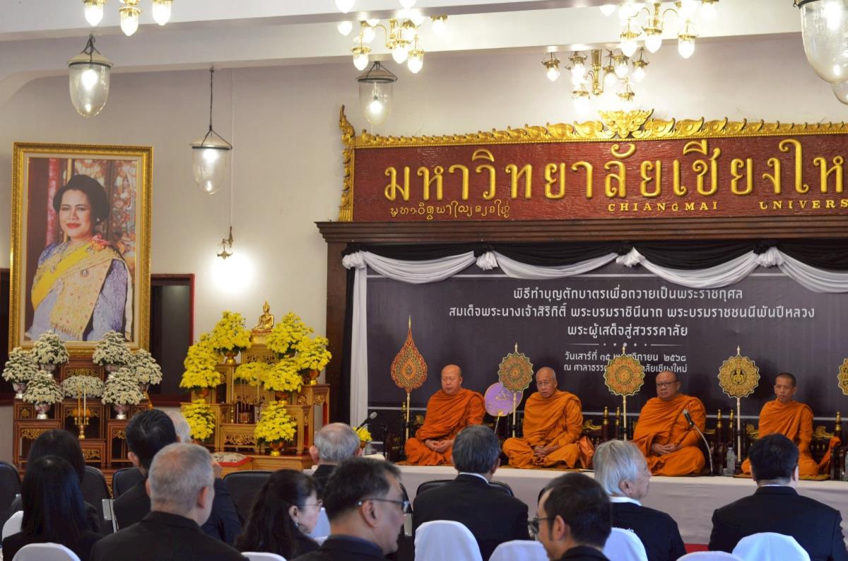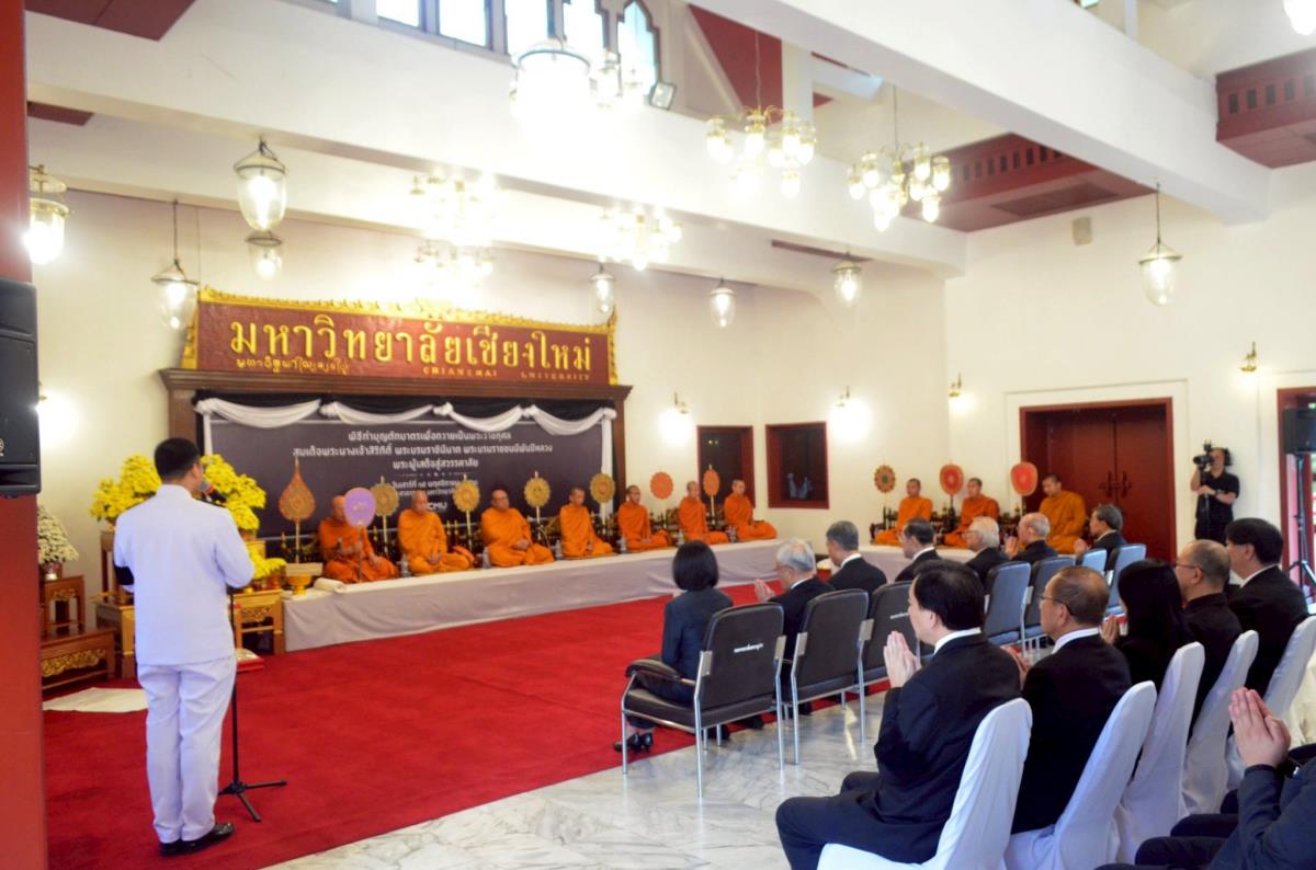 พิธีดังกล่าวจัดขึ้น ณ ศาลาธรรม มหาวิทยาลัยเชียงใหม่ โดยมี ศ.พิเศษ ดร.สุรเกียรติ์ เสถียรไทย นายกสภามหาวิทยาลัยเชียงใหม่ เป็นประธาน พร้อมด้วย ศ. ดร. นพ.พงษ์รักษ์ ศรีบัณฑิตมงคล อธิการบดีมหาวิทยาลัยเชียงใหม่ คณะกรรมการสภามหาวิทยาลัย ผู้บริหาร คณาจารย์ บุคลากร นักศึกษา ร่วมแสดงความสำนึกในพระมหากรุณาธิคุณอย่างพร้อมเพรียง