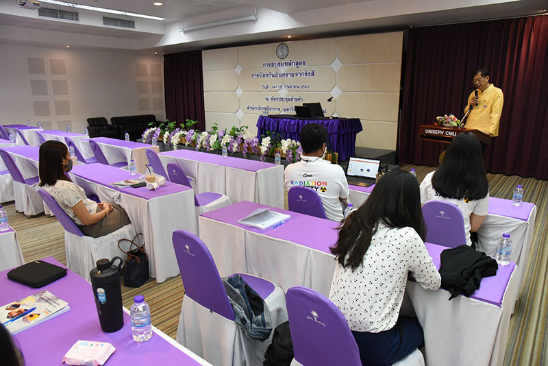 รองศาสตราจารย์ ดร.สัมพันธ์ สิงหราชวราพันธ์ รองอธิการบดีมหาวิทยาลัยเชียงใหม่ เป็นประธานเปิดการอบรมหลักสูตรการป้องกันอันตรายจากรังสี ประจำปี 2563 เพื่อสร้างความรู้ความเข้าใจในเรื่องอันตรายจากกัมมันตภาพรังสี มาตรการในการป้องกันอันตรายในการปฏิบัติงานทางรังสีอย่างปลอดภัย ให้แก่ผู้รับผิดชอบ ผู้ตรวจสอบดูแลและควบคุมการปฏิบัติงานหน่วยงานต่างๆ ของมหาวิทยาลัยเชียงใหม่ ณ ห้องประชุม สำนักบริการวิชาการ มหาวิทยาลัยเชียงใหม่ วันจันทร์ที่ 14 กันยายน พ.ศ. 2563
