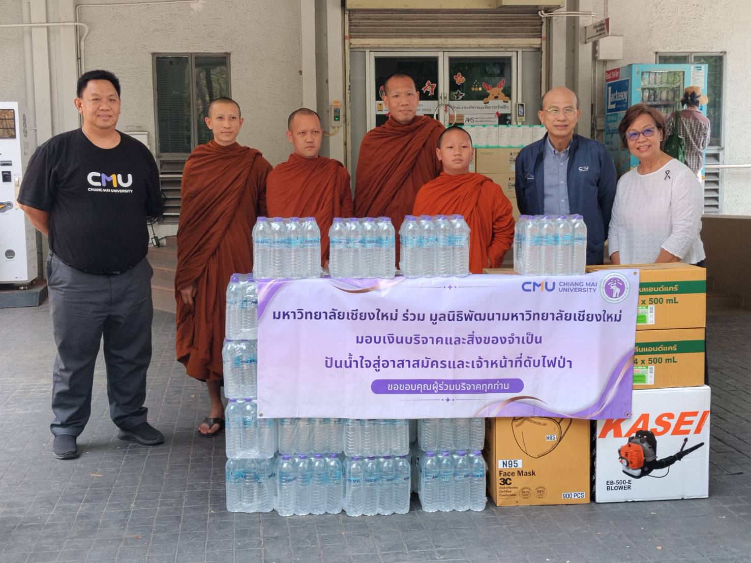 ถวายเครื่องเป่าใบไม้ น้ำดื่ม และหน้ากากอนามัย บรรเทาปัญหาไฟป่า และสถานการณ์ปัญหาฝุ่นหมอกควัน PM 2.5