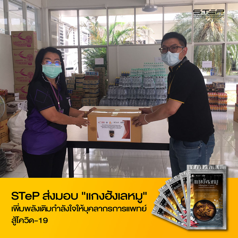 STeP ร่วมเป็นกำลังใจให้แก่บุคลากรทางการแพทย์ เพิ่มพลังด้วยแกงฮังเลหมูพร้อมรับประทาน ผลิตภัณฑ์นวัตกรรมจากโรงงานต้นแบบนวัตกรรมอาหารครบวงจร (Innovative Food Fabrication Pilot Plant) สนับสนุนการทำงานสู้ภัยโควิด-19 ณ โรงพยาบาลสนามเชียงใหม่ 2 (หอหญิง 5 มช.)