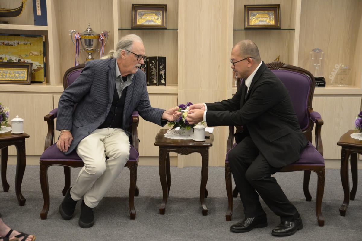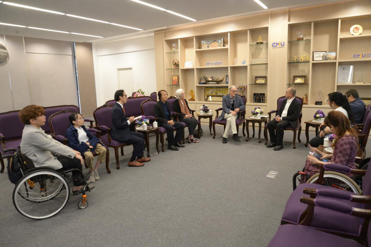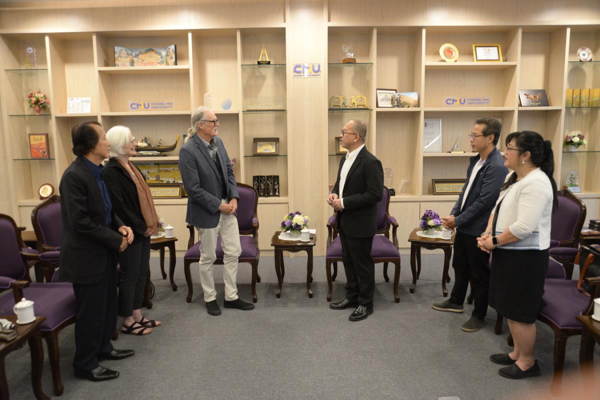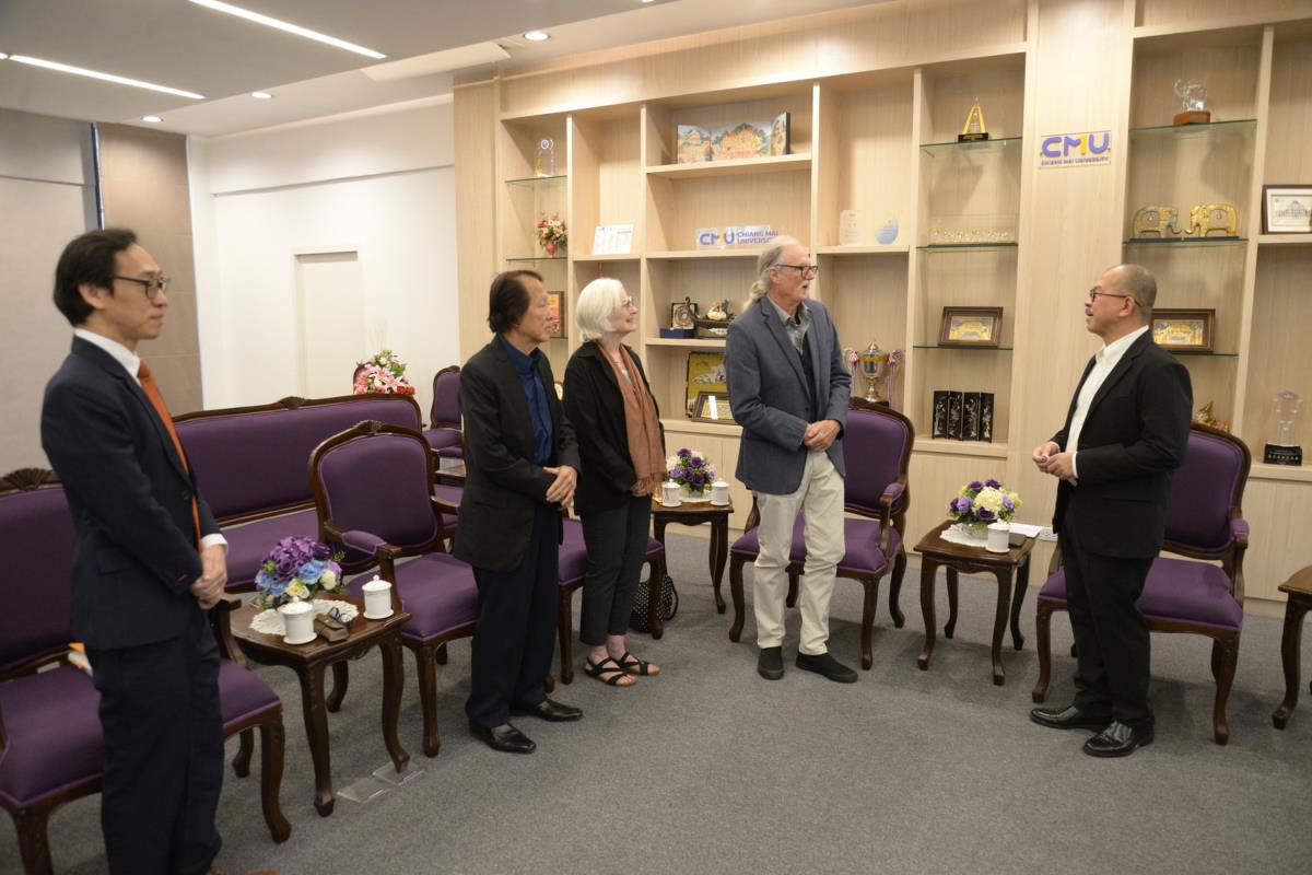 ศาสตราจารย์ปฏิบัติ ดร.เอกชัย มหาเอก รองอธิการบดีมหาวิทยาลัยเชียงใหม่ ให้การต้อนรับ Mrs. Sheryl L, Tewksbury Founder, Honorary Advisor and Foundation Board Secretary, Mr. James Tewksbury, Co-Founder of Global Campus Foundation รองศาสตราจารย์ ดร.อรรณพ พงษ์วาท ที่ปรึกษากิตติมศักดิ์ GCF และนายยุทธพล ดำรงชื่นสกุล ผู้อำนวยการ Global Campus Chiang Mai ในโอกาสที่มาปรึกษาหารือเกี่ยวกับการดำเนินงานทางวิชาการร่วมกันในอนาคต และรายงานผลการดำเนินงานทางวิชาการที่ผ่านมาภายใต้ข้อตกลงความร่วมมือทางวิชาการร่วมกัน ณ ห้องรับรอง ม.ล.ปิ่น มาลากุล อาคารสำนักงานมหาวิทยาลัย 1 มหาวิทยาลัยเชียงใหม่ วันศุกร์ที่ 10 มกราคม พ.ศ. 2568