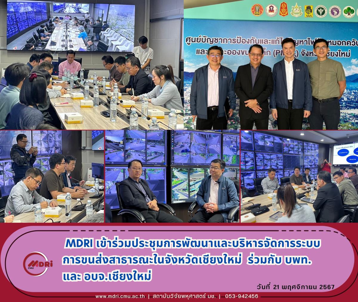 สถาบันวิจัยพหุศาสตร์ มหาวิทยาลัยเชียงใหม่ โดย รองศาสตราจารย์วงกต วงศ์อภัย รองผู้อำนวยการสถาบันวิจัยพหุศาสตร์ พร้อมด้วย รองศาสตราจารย์ ดร.ปุ่น เที่ยงบูรณธรรม รองผู้อำนวยการฝ่ายแผนและยุทธศาสตร์องค์กร หน่วยบริหารและจัดการทุนด้านการพัฒนาระดับพื้นที่ (บพท.) และรองศาสตราจารย์ ดร.พีรพงศ์ จิตเสงี่ยม อาจารย์ประจำภาควิชาวิศวกรรมโยธา คณะวิศวกรรมศาสตร์เชียงใหม่ เข้าร่วมประชุมหารือแนวทางการพัฒนาและบริหารจัดการระบบการขนส่งสาธารณะในจังหวัดเชียงใหม่ ร่วมกับ นายทศพล เผื่อนอุดม รองผู้ว่าราชการจังหวัดเชียงใหม่ และนายสมชาติ วัฒนากล้า รองนายก อบจ.เชียงใหม่ ณ สำนักงานองค์การบริหารส่วนจังหวัดเชียงใหม่ เมื่อวันที่ 21 พฤศจิกายน 2567 เวลา 13.30 – 15.30 น.