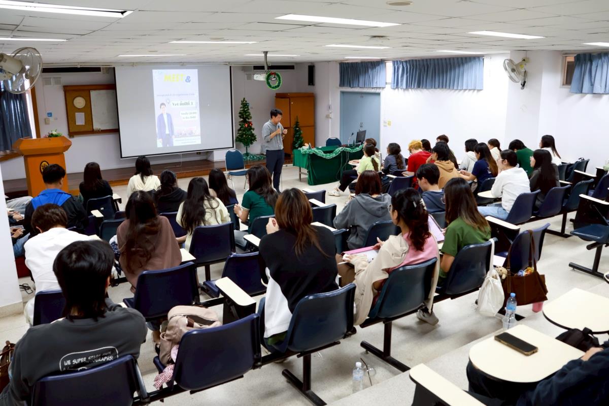 งานบริการการศึกษาและพัฒนาคุณภาพนักศึกษา จัดกิจกรรม Roadshow "คณบดีพบนักศึกษา" เพื่อพบปะน้อง ๆ นักศึกษาสัตวแพทย์ ชั้นปีที่ 3 ในการให้ข้อมูลเกี่ยวกับกิจกรรมและโครงการความร่วมมือระดับนานาชาติที่คณะทำการผลักดันอย่างต่อเนื่อง เมื่อวันที่ 20 พฤศจิกายน 2568