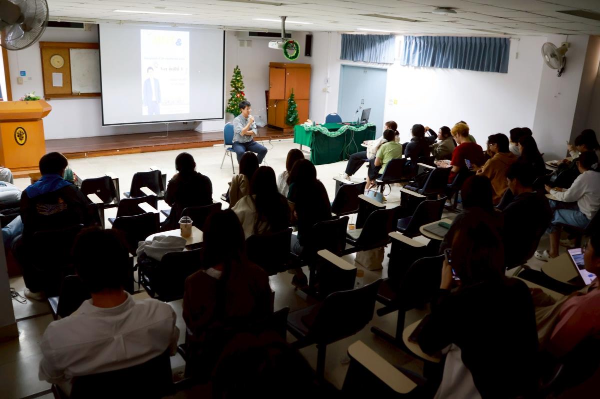 เมื่อวันที่ 20 พฤศจิกายน 2568 ศ.(เชี่ยวชาญพิเศษ) ดร. น.สพ.กรกฎ งานวงศ์พาณิชย์ คณบดีคณะสัตวแพทยศาสตร์ มหาวิทยาลัยเชียงใหม่ และพี่ ๆ บุคลากรงานบริการการศึกษาและพัฒนาคุณภาพนักศึกษา พบน้อง ๆ นักศึกษาสัตวแพทย์ ชั้นปีที่ 3 ในกิจกรรม Roadshow “คณบดีพบนักศึกษา” เพื่อให้ข้อมูลเกี่ยวกับกิจกรรมและโครงการความร่วมมือระดับนานาชาติที่คณะทำการผลักดันอย่างต่อเนื่อง มีเป้าประสงค์สำคัญคือการเปิดประตูให้นักศึกษามีโอกาสเติบโตในมิติที่หลากหลาย ทั้งด้านวิชาการและประสบการณ์ต่างประเทศ ในโอกาสนี้ คณบดียังได้ร่วมพูดคุยแบบใกล้ชิดกับน้อง ๆ พร้อมรับฟังมุมมอง ข้อคิดเห็น และข้อเสนอแนะ เพื่อใช้เป็นแนวทางพัฒนาสิ่งอำนวยความสะดวกและสร้างสภาพแวดล้อมการเรียนรู้ที่ดีที่สุดสำหรับนักศึกษาทุกคน