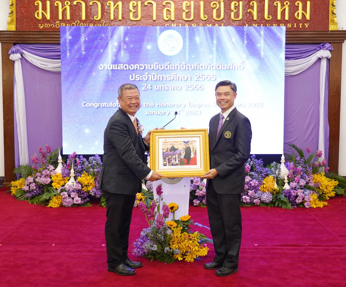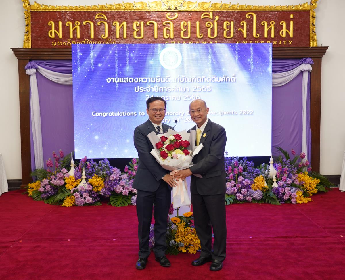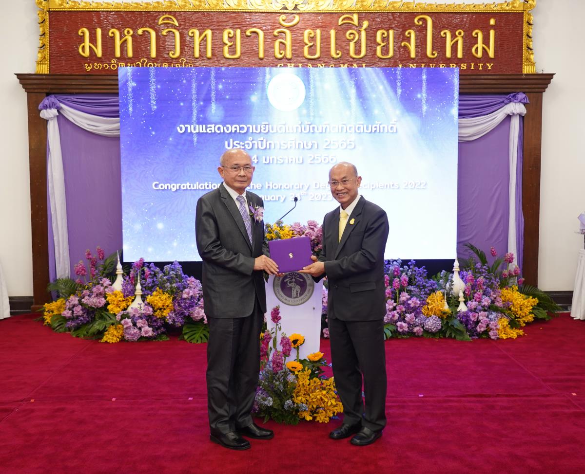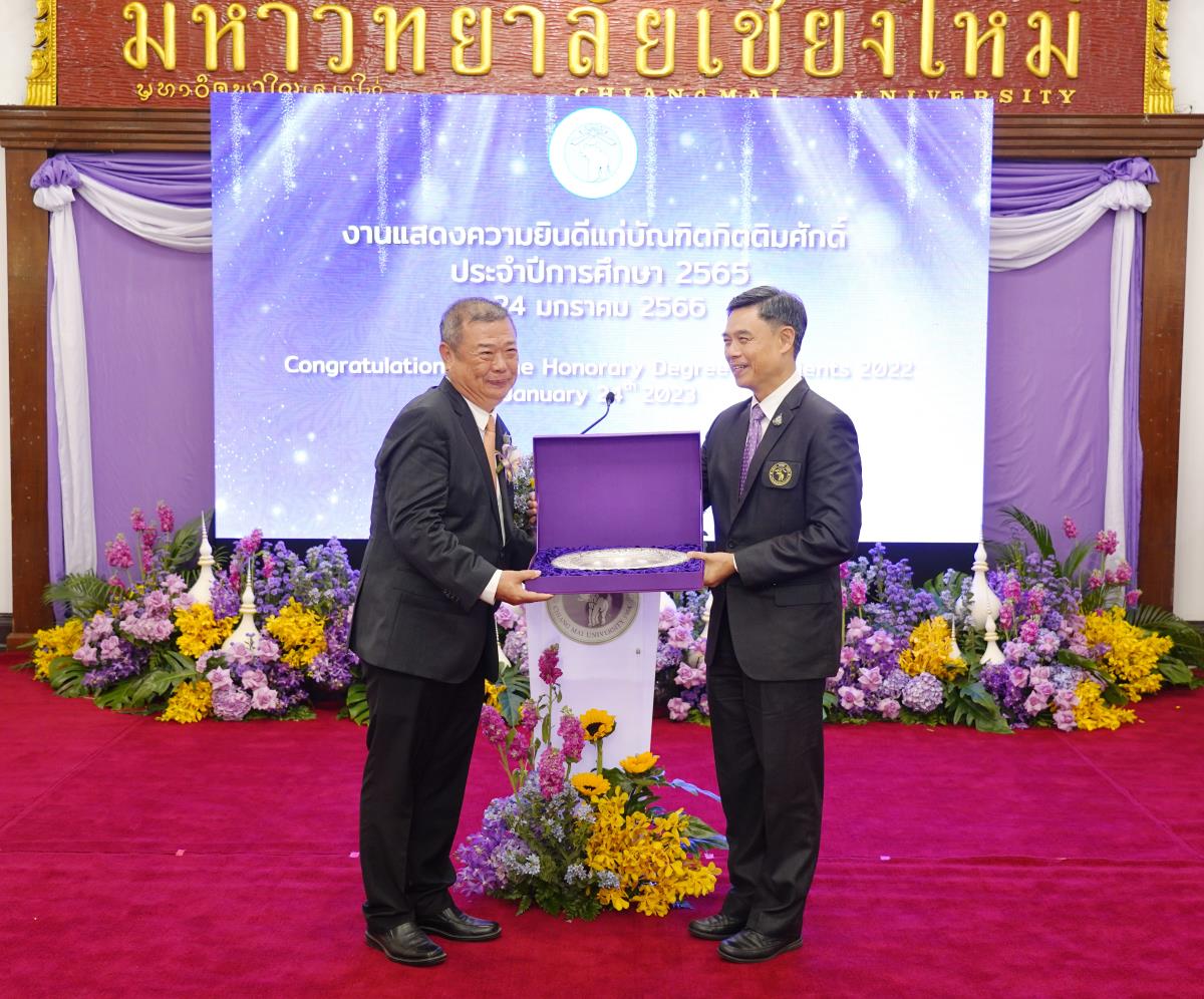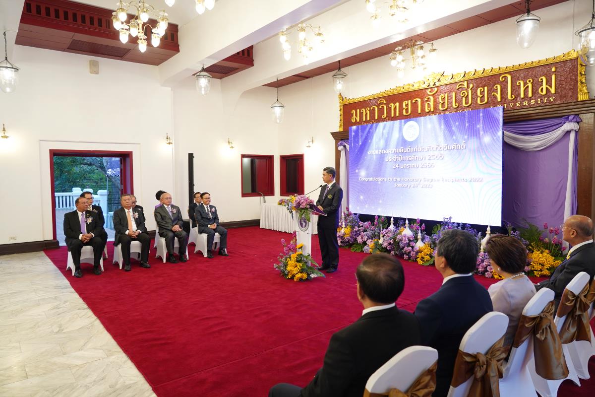 มหาวิทยาลัยเชียงใหม่ จัดงานแสดงความยินดีผู้ที่ได้รับพระราชทานปริญญากิตติมศักดิ์ ในงานพิธีพระราชทานปริญญาบัตร ครั้งที่ 57 ประจำปีการศึกษา 2564-2565 โดยมีศาสตราจารย์เกียรติคุณ นายแพทย์เกษม วัฒนชัย นายกสภามหาวิทยาลัยเชียงใหม่ กล่าวแสดงความยินดี มอบเกียรติบัตร และมอบดอกไม้ ศาสตราจารย์ ดร.นพ.พงษ์รักษ์ ศรีบัณฑิตมงคล อธิการบดีมหาวิทยาลัยเชียงใหม่ กล่าวต้อนรับและมอบของที่ระลึก แก่ผู้ที่ได้รับพระราชทานปริญญากิตติมศักดิ์ ณ ศาลาธรรม มหาวิทยาลัยเชียงใหม่ เมื่อวันอังคารที่ 24 มกราคม 2566