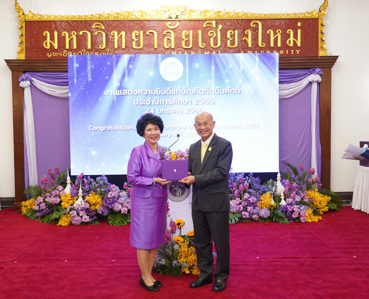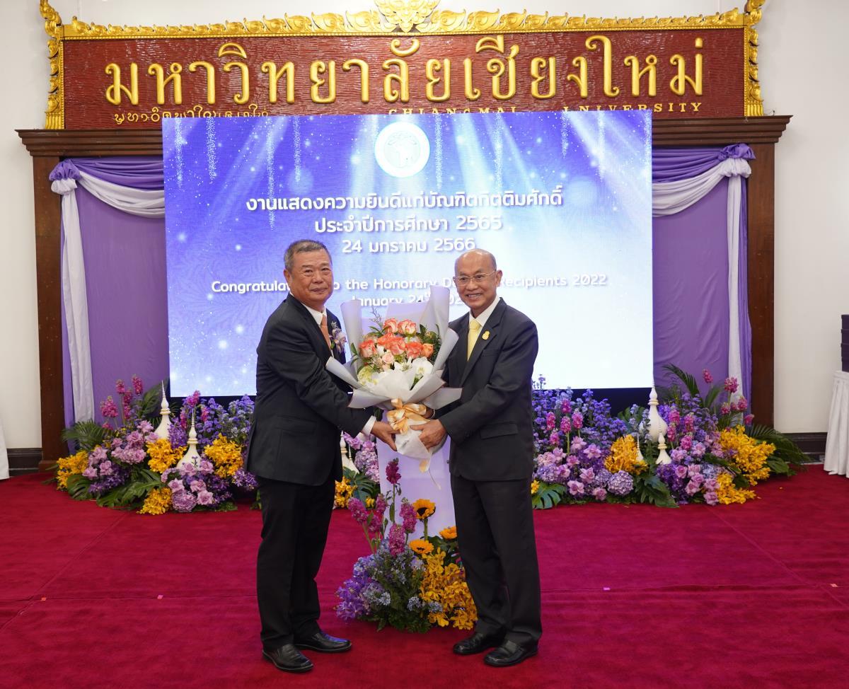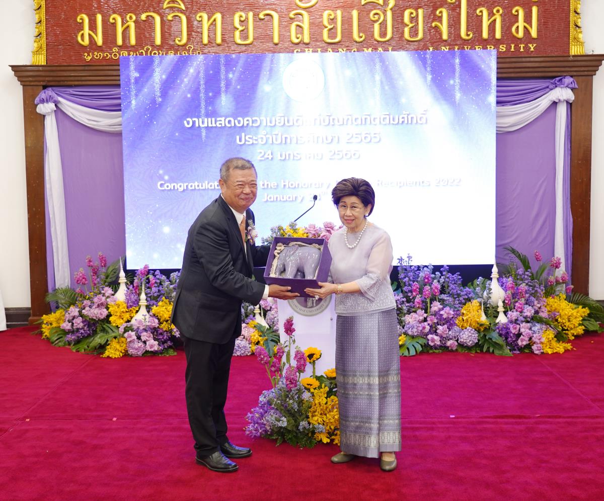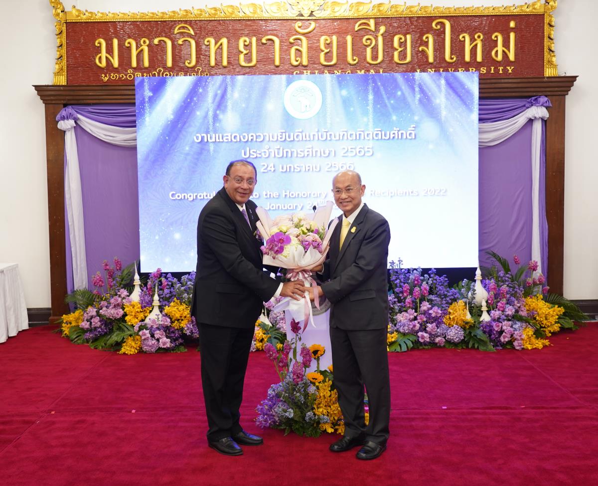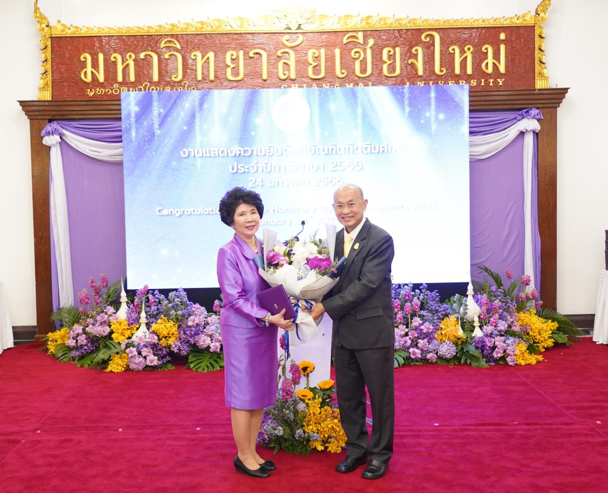 มหาวิทยาลัยเชียงใหม่ จัดงานแสดงความยินดีผู้ที่ได้รับพระราชทานปริญญากิตติมศักดิ์ ในงานพิธีพระราชทานปริญญาบัตร ครั้งที่ 57 ประจำปีการศึกษา 2564-2565 โดยมีศาสตราจารย์เกียรติคุณ นายแพทย์เกษม วัฒนชัย นายกสภามหาวิทยาลัยเชียงใหม่ กล่าวแสดงความยินดี มอบเกียรติบัตร และมอบดอกไม้ ศาสตราจารย์ ดร.นพ.พงษ์รักษ์ ศรีบัณฑิตมงคล อธิการบดีมหาวิทยาลัยเชียงใหม่ กล่าวต้อนรับและมอบของที่ระลึก แก่ผู้ที่ได้รับพระราชทานปริญญากิตติมศักดิ์ ณ ศาลาธรรม มหาวิทยาลัยเชียงใหม่ เมื่อวันอังคารที่ 24 มกราคม 2566