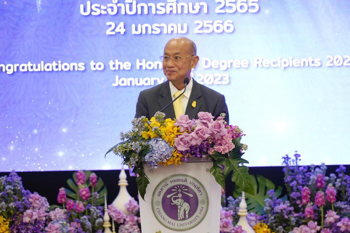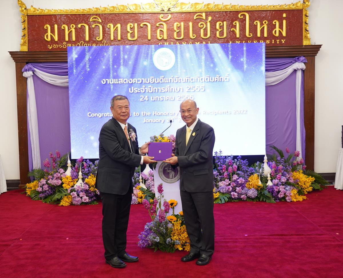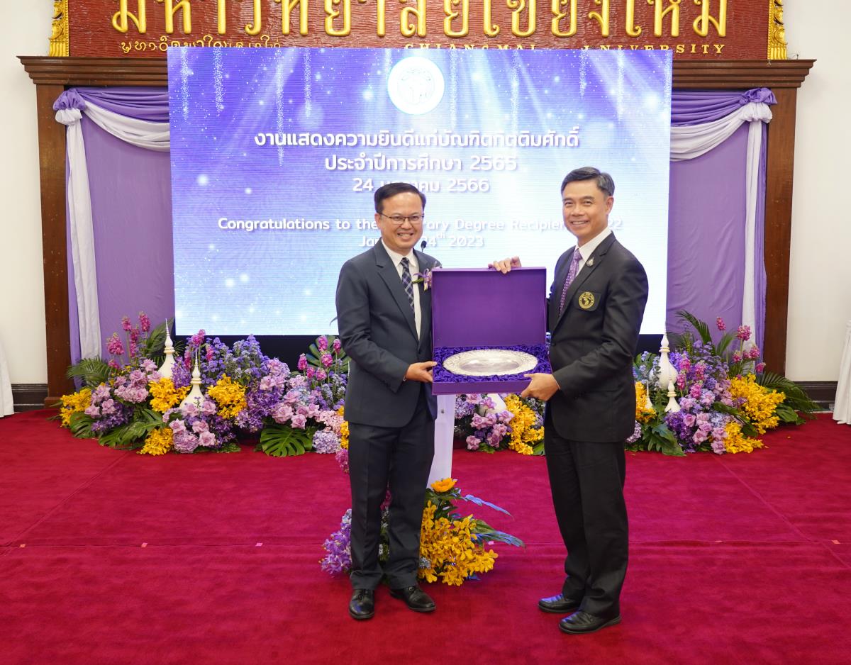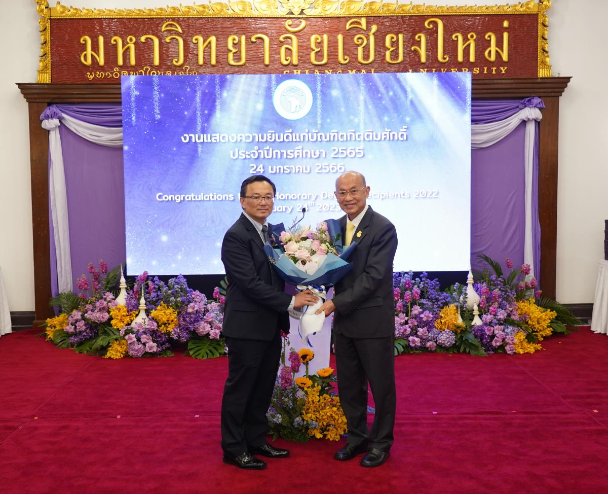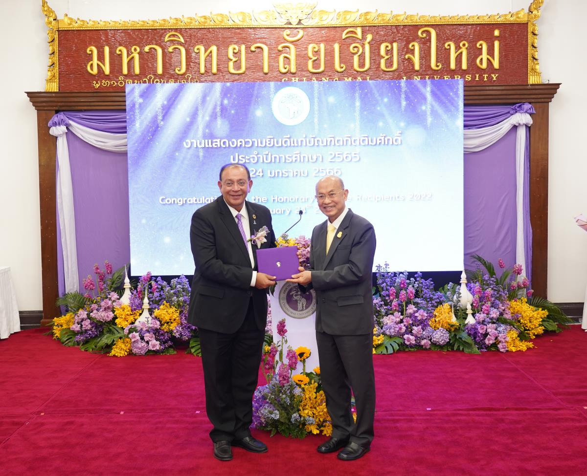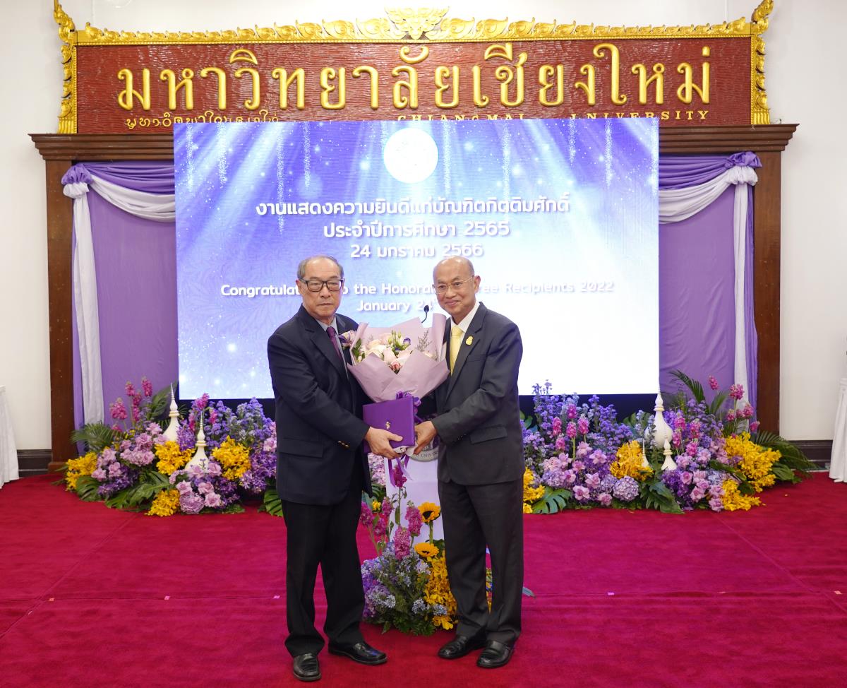 มหาวิทยาลัยเชียงใหม่ จัดงานแสดงความยินดีผู้ที่ได้รับพระราชทานปริญญากิตติมศักดิ์ ในงานพิธีพระราชทานปริญญาบัตร ครั้งที่ 57 ประจำปีการศึกษา 2564-2565 โดยมีศาสตราจารย์เกียรติคุณ นายแพทย์เกษม วัฒนชัย นายกสภามหาวิทยาลัยเชียงใหม่ กล่าวแสดงความยินดี มอบเกียรติบัตร และมอบดอกไม้ ศาสตราจารย์ ดร.นพ.พงษ์รักษ์ ศรีบัณฑิตมงคล อธิการบดีมหาวิทยาลัยเชียงใหม่ กล่าวต้อนรับและมอบของที่ระลึก แก่ผู้ที่ได้รับพระราชทานปริญญากิตติมศักดิ์ ณ ศาลาธรรม มหาวิทยาลัยเชียงใหม่ เมื่อวันอังคารที่ 24 มกราคม 2566