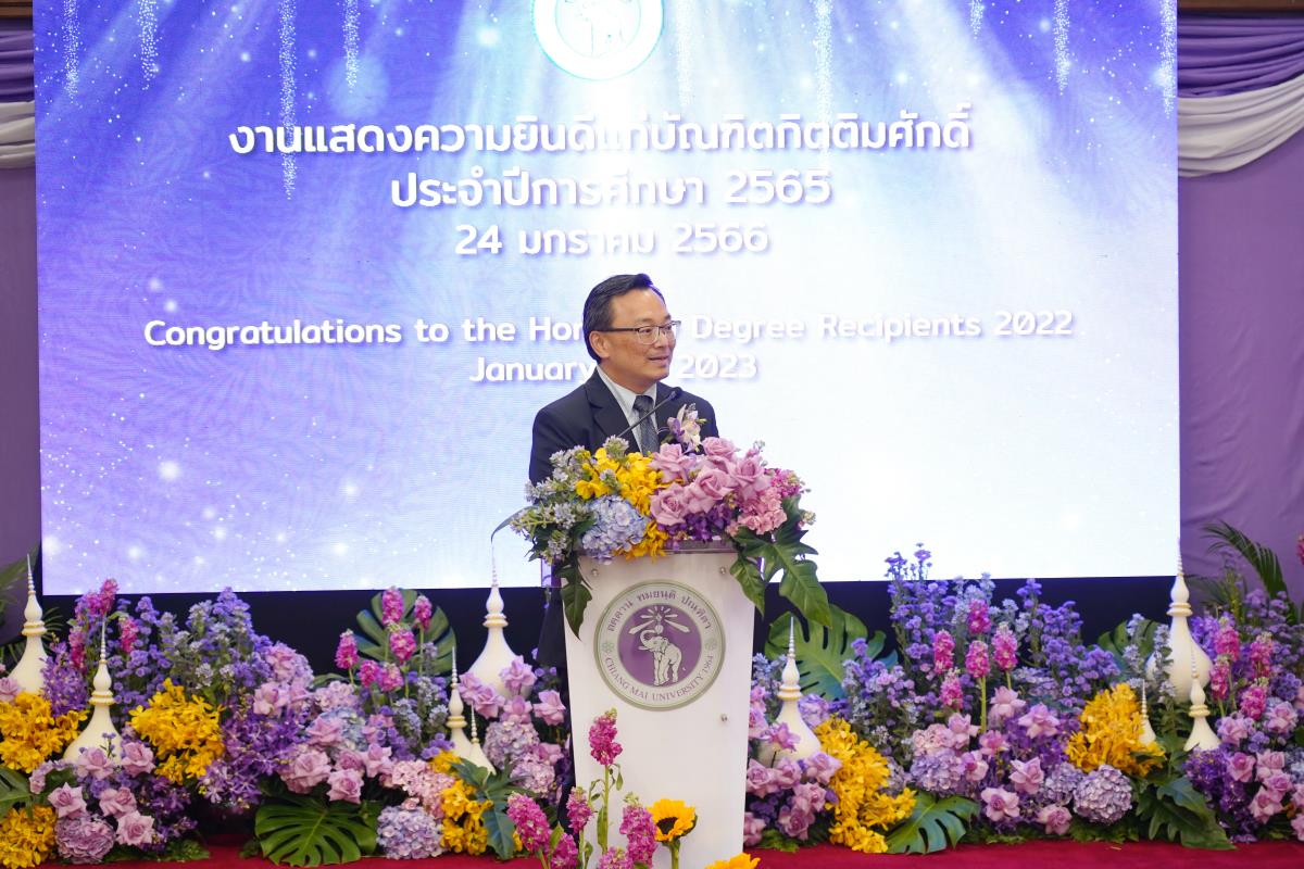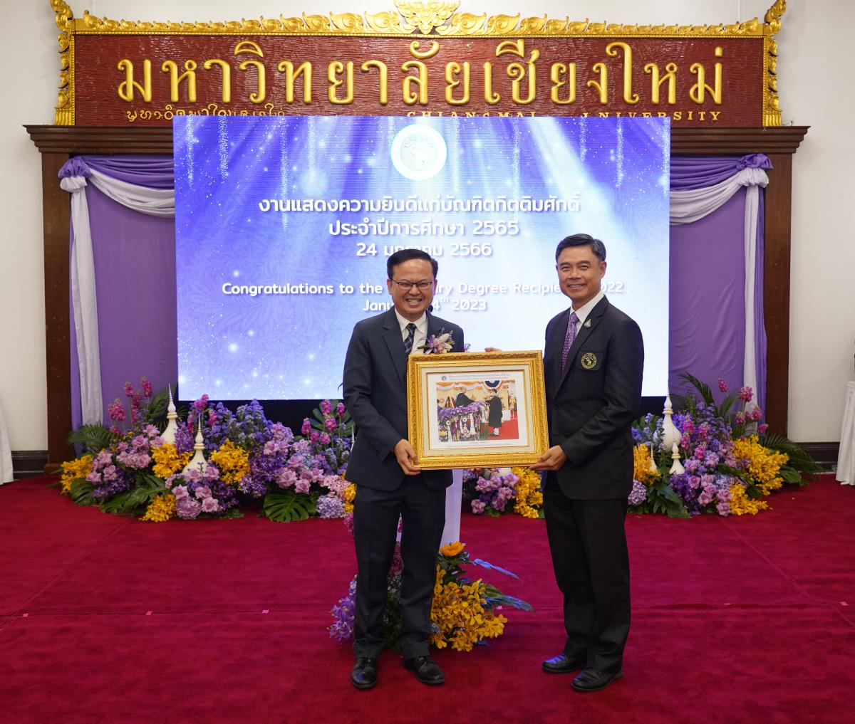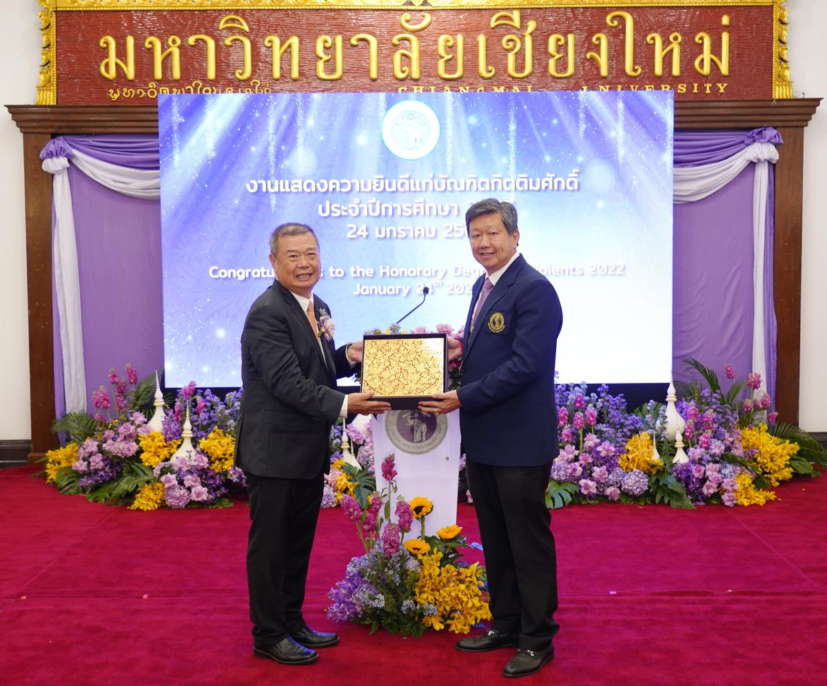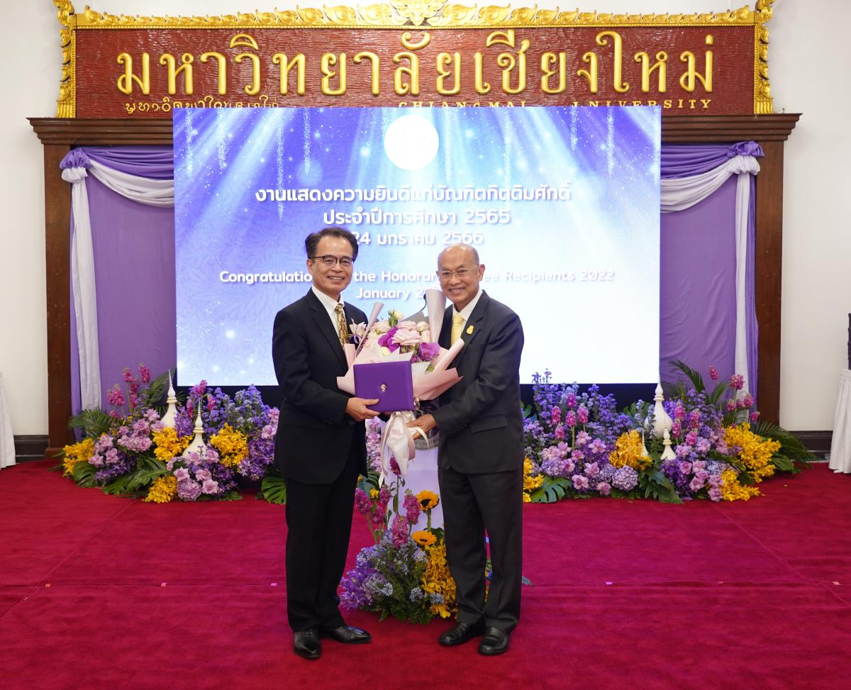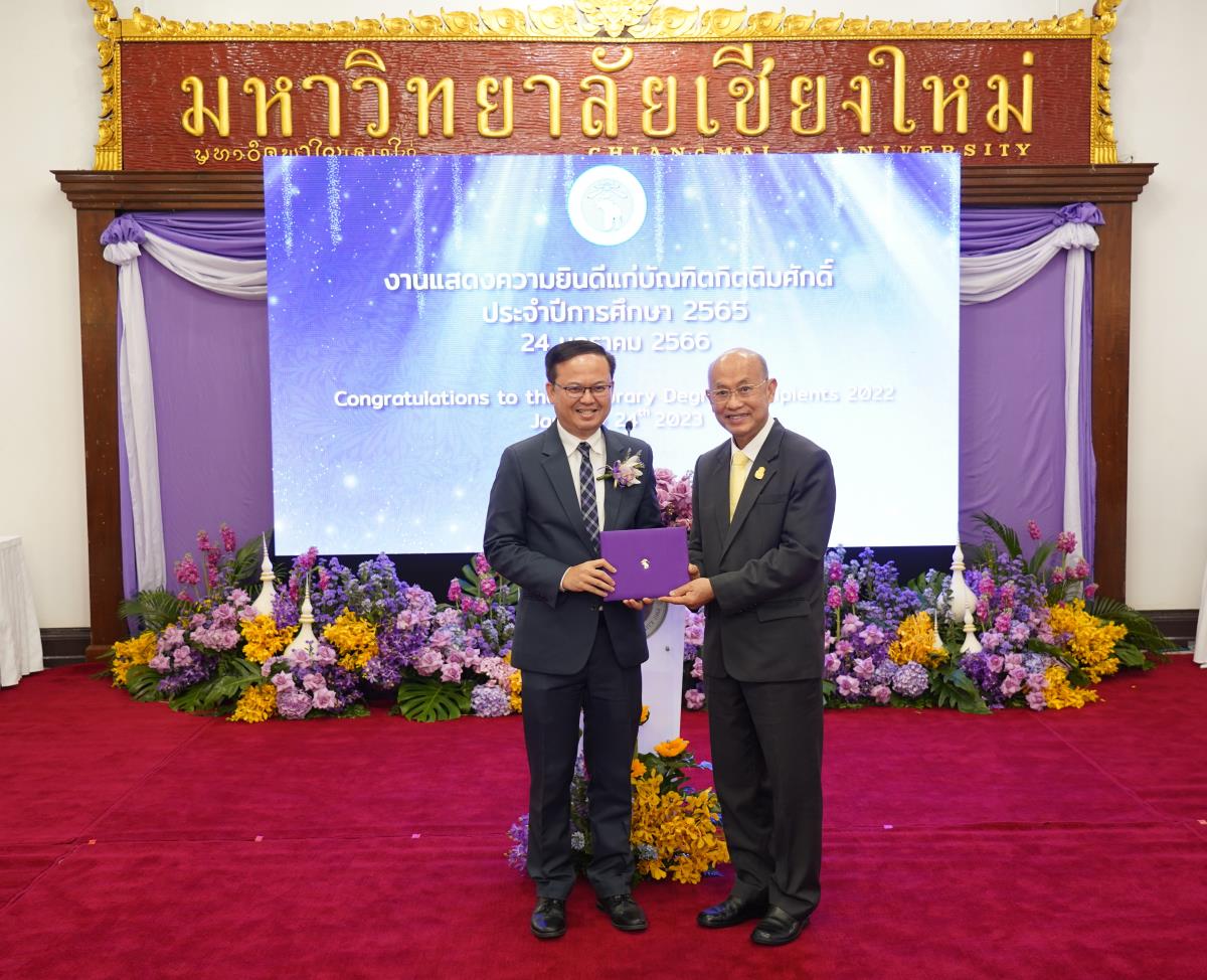 มหาวิทยาลัยเชียงใหม่ จัดงานแสดงความยินดีผู้ที่ได้รับพระราชทานปริญญากิตติมศักดิ์ ในงานพิธีพระราชทานปริญญาบัตร ครั้งที่ 57 ประจำปีการศึกษา 2564-2565 โดยมีศาสตราจารย์เกียรติคุณ นายแพทย์เกษม วัฒนชัย นายกสภามหาวิทยาลัยเชียงใหม่ กล่าวแสดงความยินดี มอบเกียรติบัตร และมอบดอกไม้ ศาสตราจารย์ ดร.นพ.พงษ์รักษ์ ศรีบัณฑิตมงคล อธิการบดีมหาวิทยาลัยเชียงใหม่ กล่าวต้อนรับและมอบของที่ระลึก แก่ผู้ที่ได้รับพระราชทานปริญญากิตติมศักดิ์ ณ ศาลาธรรม มหาวิทยาลัยเชียงใหม่ เมื่อวันอังคารที่ 24 มกราคม 2566