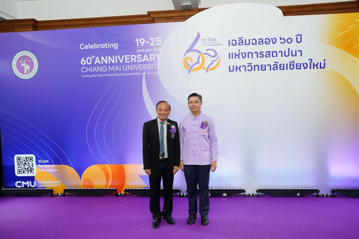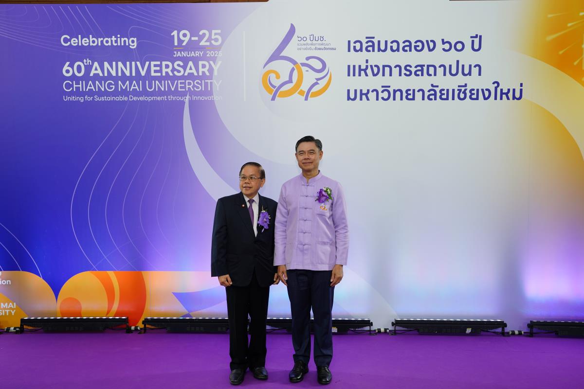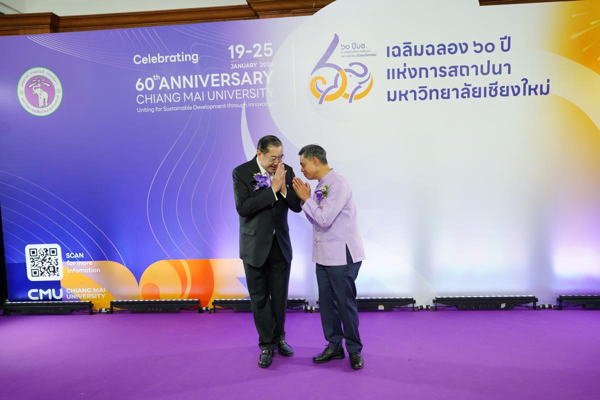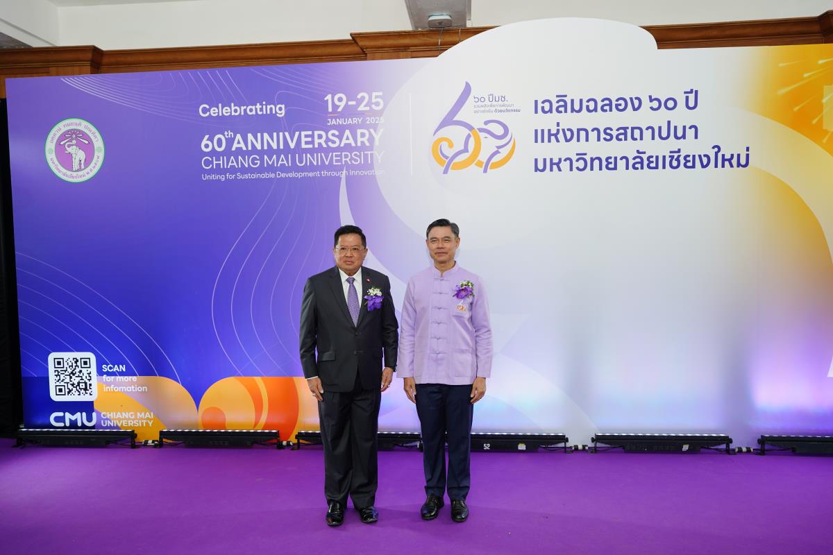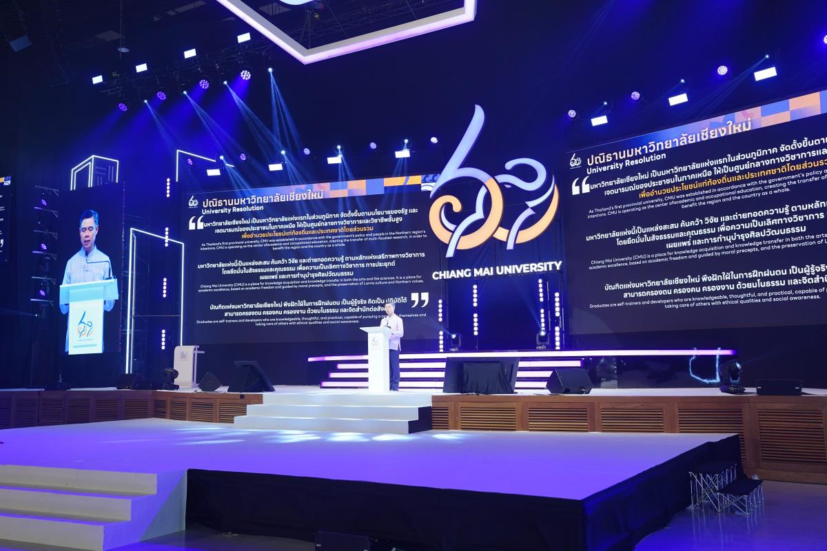 การจัดงานครั้งสำคัญนี้ ได้รับเกียรติจาก ศาสตราจารย์พิเศษ ดร.สุรเกียรติ์ เสถียรไทย นายกสภามหาวิทยาลัยเชียงใหม่ เป็นประธานเปิดงาน และปาฐกถาพิเศษ: “บทบาทของมหาวิทยาลัยกับการพัฒนาอย่างยั่งยืนท่ามกลางความเปลี่ยนแปลงของโลก” (The Role of University and Sustainable Development Amidst Global Disruptions) นอกจากนี้ ยังมีการกล่าวต้อนรับและการบรรยาย : เส้นทางสู่ 6 ทศวรรษมหาวิทยาลัยเชียงใหม่ โดย ศาสตราจารย์ ดร.นายแพทย์พงษ์รักษ์ ศรีบัณฑิตมงคล อธิการบดีมหาวิทยาลัยเชียงใหม่ อีกทั้งมีการกล่าวแสดงความยินดี โดยผู้แทนกงสุล ผู้แทนพันธมิตรมหาวิทยาลัยในต่างประเทศอีกด้วย The 60th Anniversary Celebration of CMU เป็นโอกาสสำคัญในการเฉลิมฉลองความสำเร็จและมุ่งหน้าสู่อนาคต พร้อมร่วมสะท้อนความภูมิใจในบทบาทของมหาวิทยาลัยเชียงใหม่ที่ยืนหยัดเคียงข้างการพัฒนาชุมชน สังคม และประเทศ ตลอด 60 ปีที่ผ่านมา