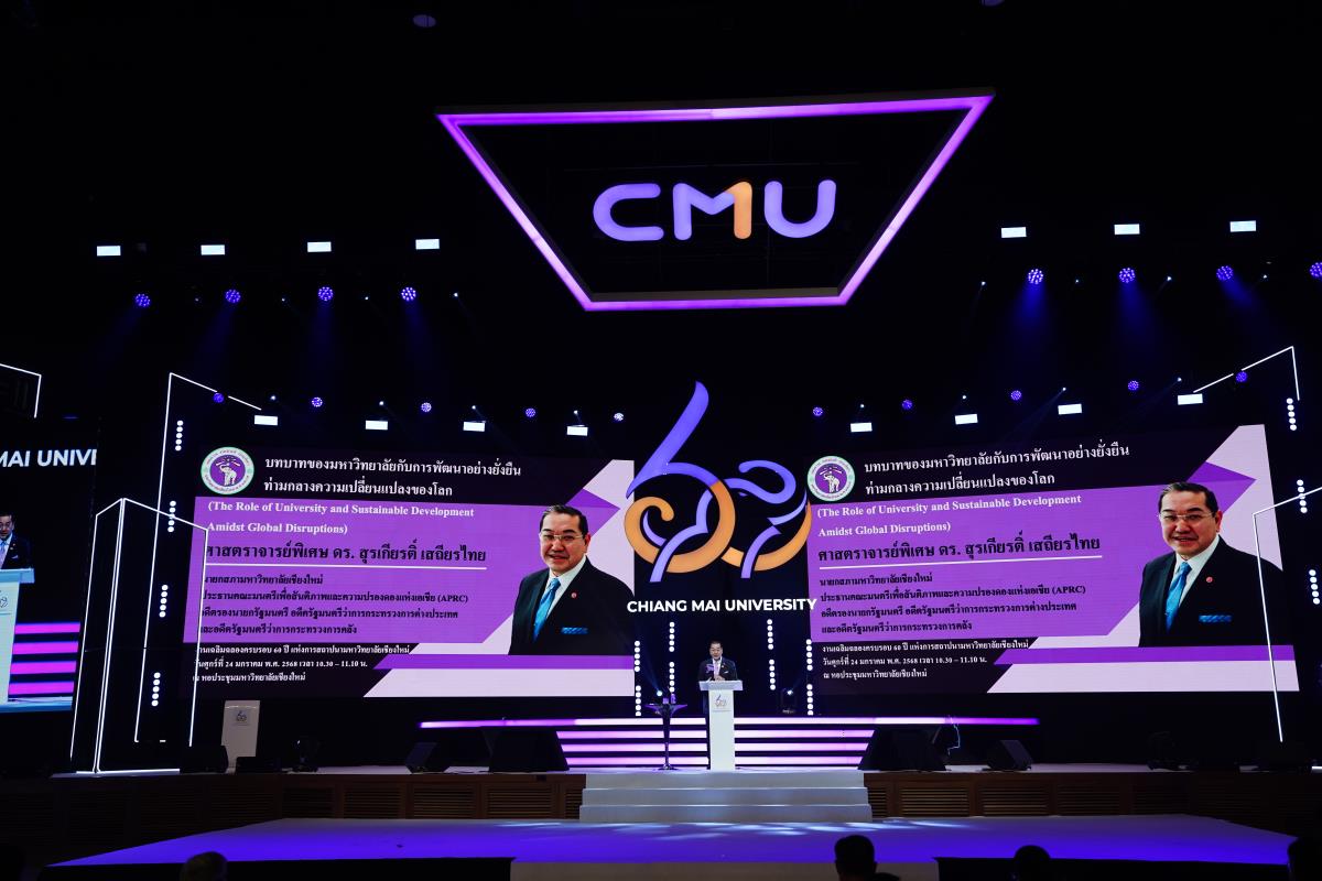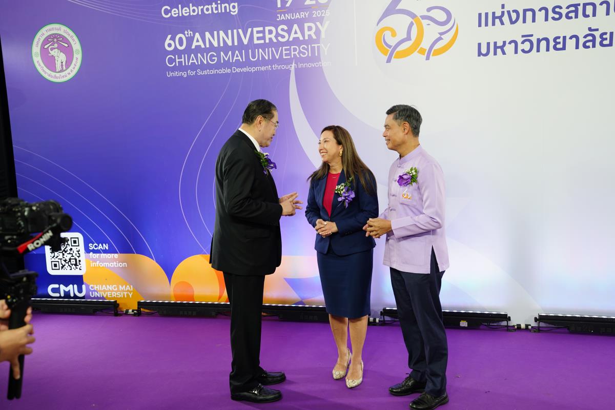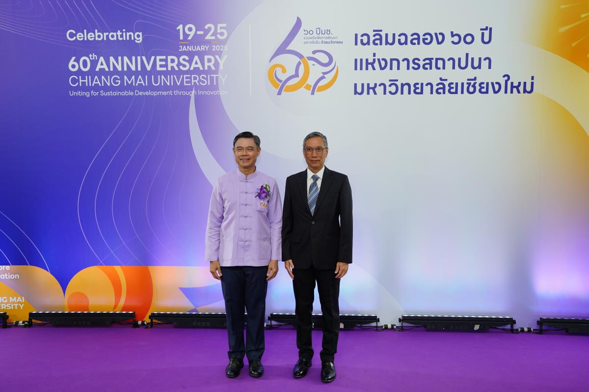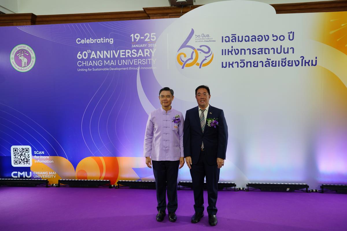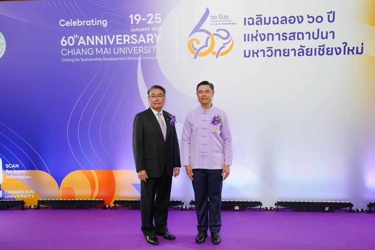 การจัดงานครั้งสำคัญนี้ ได้รับเกียรติจาก ศาสตราจารย์พิเศษ ดร.สุรเกียรติ์ เสถียรไทย นายกสภามหาวิทยาลัยเชียงใหม่ เป็นประธานเปิดงาน และปาฐกถาพิเศษ: “บทบาทของมหาวิทยาลัยกับการพัฒนาอย่างยั่งยืนท่ามกลางความเปลี่ยนแปลงของโลก” (The Role of University and Sustainable Development Amidst Global Disruptions) นอกจากนี้ ยังมีการกล่าวต้อนรับและการบรรยาย : เส้นทางสู่ 6 ทศวรรษมหาวิทยาลัยเชียงใหม่ โดย ศาสตราจารย์ ดร.นายแพทย์พงษ์รักษ์ ศรีบัณฑิตมงคล อธิการบดีมหาวิทยาลัยเชียงใหม่ อีกทั้งมีการกล่าวแสดงความยินดี โดยผู้แทนกงสุล ผู้แทนพันธมิตรมหาวิทยาลัยในต่างประเทศอีกด้วย The 60th Anniversary Celebration of CMU เป็นโอกาสสำคัญในการเฉลิมฉลองความสำเร็จและมุ่งหน้าสู่อนาคต พร้อมร่วมสะท้อนความภูมิใจในบทบาทของมหาวิทยาลัยเชียงใหม่ที่ยืนหยัดเคียงข้างการพัฒนาชุมชน สังคม และประเทศ ตลอด 60 ปีที่ผ่านมา