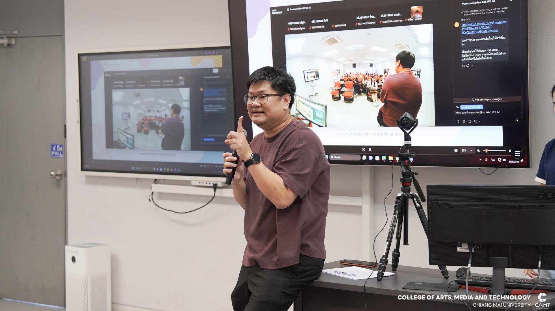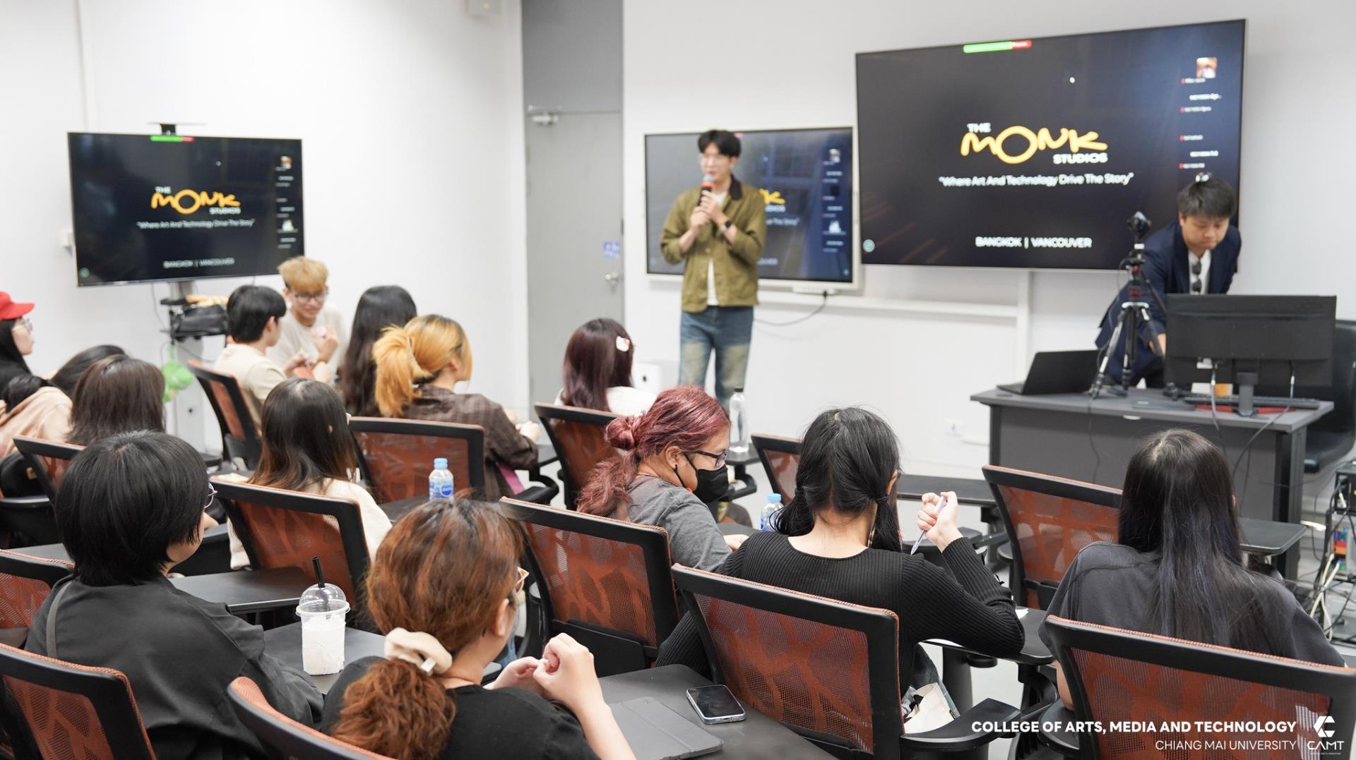โดยภายในงานได้รับเกียรติจากคุณธนภัทร ธรรมธิ ตำแหน่ง Lead Production Technical Director และคุณศรุฒ นุ่มฤทธิ์ ตำแหน่ง HR จากบริษัท The Monk Studios มาร่วมแชร์เบื้องหลังการทำงานในสายเทคนิคอลแอนิเมชัน และมาตรฐานการทำงานในระดับอุตสาหกรรม พร้อมให้คำแนะนำในมุมมองของการคัดเลือกบุคลากร การเตรียม Portfolio และเทคนิคการสัมภาษณ์งานรวมถึงการปรับปรุงผลงาน (Showreel) ให้มีความโดดเด่นและตรงกับความต้องการของตลาดให้แก่นักศึกษา เมื่อวันพุธที่ 25 มีนาคม 2569 ณ วิทยาลัยศิลปะ สื่อ และเทคโนโลยี มหาวิทยาลัยเชียงใหม่