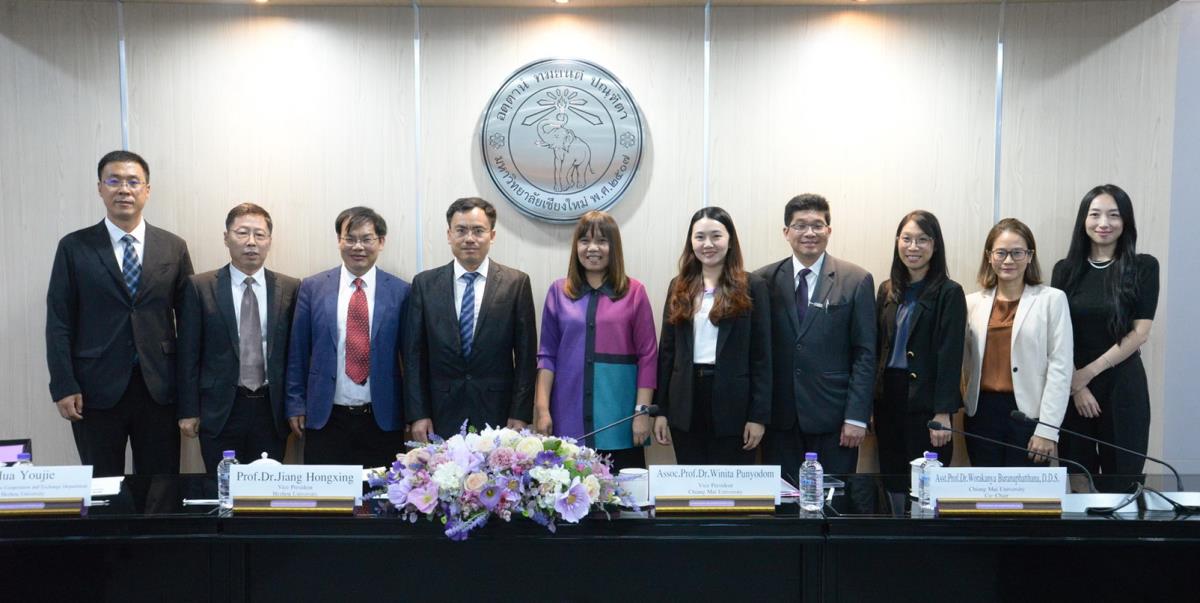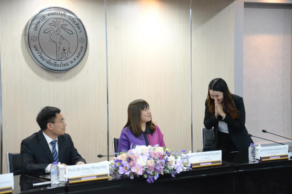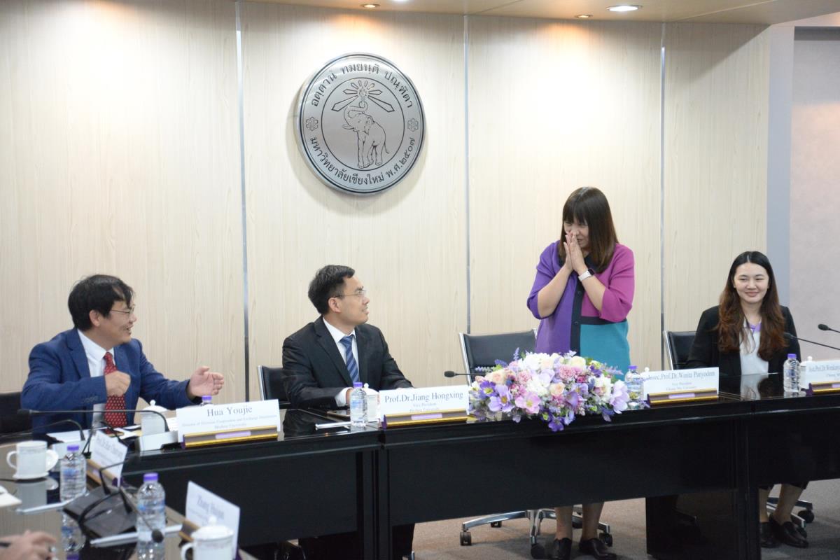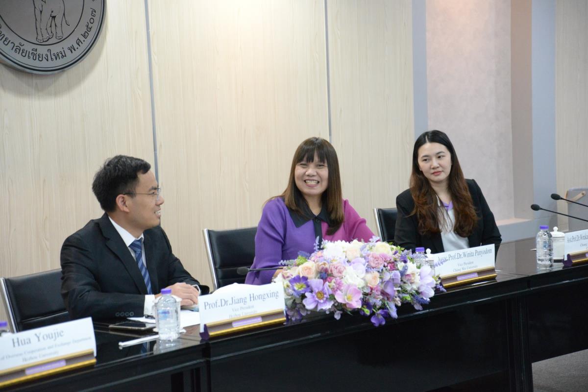 รองศาสตราจารย์ ดร.วินิตา บุณโยดม รองอธิการบดี พร้อมด้วยคณะผู้บริหารมหาวิทยาลัยเชียงใหม่ ให้การต้อนรับ Prof. Dr. Jiang Hongxing, Vice President และคณะจาก Hezhou University ประเทศสาธารณรัฐประชาชนจีน ในโอกาสที่มาปรึกษาหารือเกี่ยวกับการสร้างความร่วมมือทางวิชาการ และหารือการจัดตั้ง China - ASEAN Food Manufacture Technology Innovation College ณ ห้องประชุมพระยาศรีวิสารวาจาอาคารสำนักงานมหาวิทยาลัย 1 มหาวิทยาลัยเชียงใหม่ วันจันทร์ที่ 23 กันยายน พ.ศ. 2567