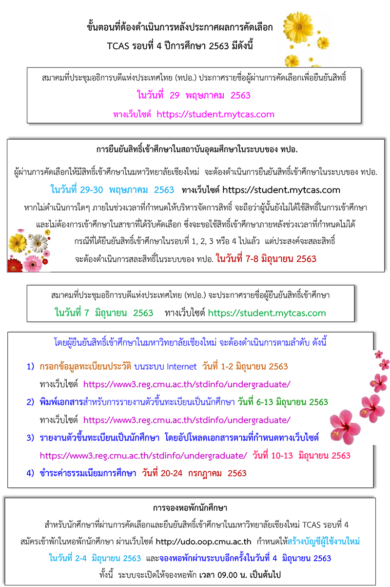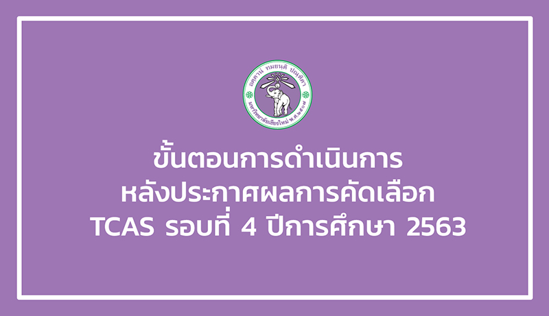 ขั้นตอนที่ต้องดำเนินการหลังประกาศผลการคัดเลือก TCAS รอบที่ 4 ปีการศึกษา 2563