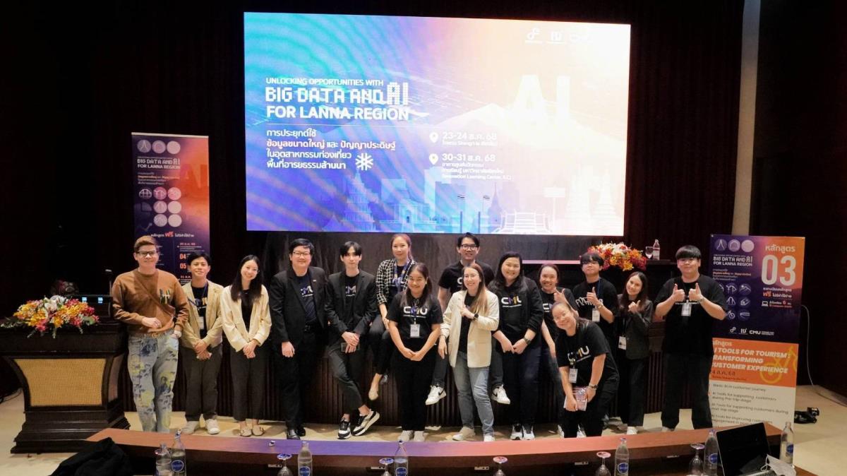 เมื่อวันที่ 23 สิงหาคม 2568 วิทยาลัยศิลปะ สื่อ และเทคโนโลยี มหาวิทยาลัยเชียงใหม่ (CAMT) ร่วมกับ Big Data Institute (BDI) ได้เปิดอบรมเชิงปฏิบัติการสำหรับผู้ประกอบการ และบุคลากรในอุตสาหกรรมการท่องเที่ยว พื้นที่ล้านนา ณ โรงแรมแชงกรีล่า เชียงใหม่ ภายใต้โครงการอบรมหลักสูตรการประยุกต์ใช้ข้อมูลขนาดใหญ่และปัญญาประดิษฐ์สำหรับบุคลากรด้านการท่องเที่ยวในพื้นที่เขตพัฒนาการท่องเที่ยวอารยธรรมล้านนา โดยมี ผู้ช่วยศาสตราจารย์ ดร. อฬิญญา พงษ์วาท หัวหน้าโครงการฯ พื้นที่ล้านนา และหัวหน้ากลุ่มวิจัย Innovative Regenerative Tourism: การขับเคลื่อนด้วยข้อมูลเพื่อความยั่งยืน นำทีมคณาจารย์จากหลายคณะ เช่น คณะมนุษยศาสตร์ ภาควิชาการท่องเที่ยว และคณะบริหารธุรกิจ ฯลฯ ผู้เชี่ยวชาญด้านการท่องเที่ยว และการวิเคราะห์ข้อมูล จัดการเรียนรู้เข้มข้น ด้าน Big Data และการประยุกต์ใช้ AI เพื่อยกระดับการตัดสินใจ สร้างประสบการณ์นักท่องเที่ยว และขับเคลื่อนเศรษฐกิจภูมิภาคอย่างยั่งยืน บรรยากาศการอบรมเป็นไปอย่างคึกคัก ได้รับความสนใจจากผู้ร่วมอบรมเป็นอย่างมาก โดยการจัดอบรมเชิงปฏิบัติการครั้งนี้ ประกอบด้วย 6 หลักสูตร และจัดอบรมทั้งหมด 4 วัน คือวันที่ 23 – 24 และ 30 - 31 สิงหาคม 2568