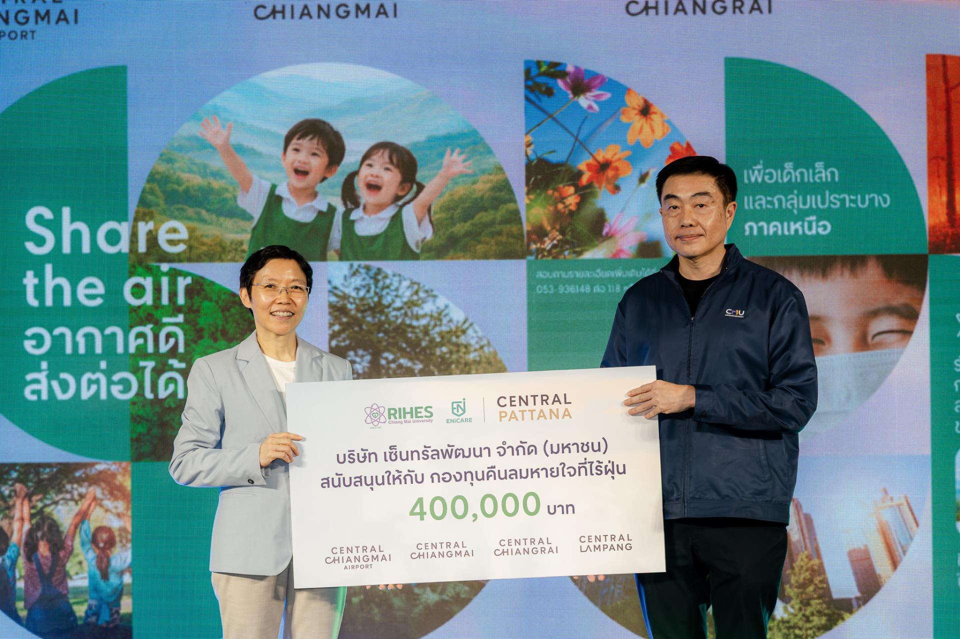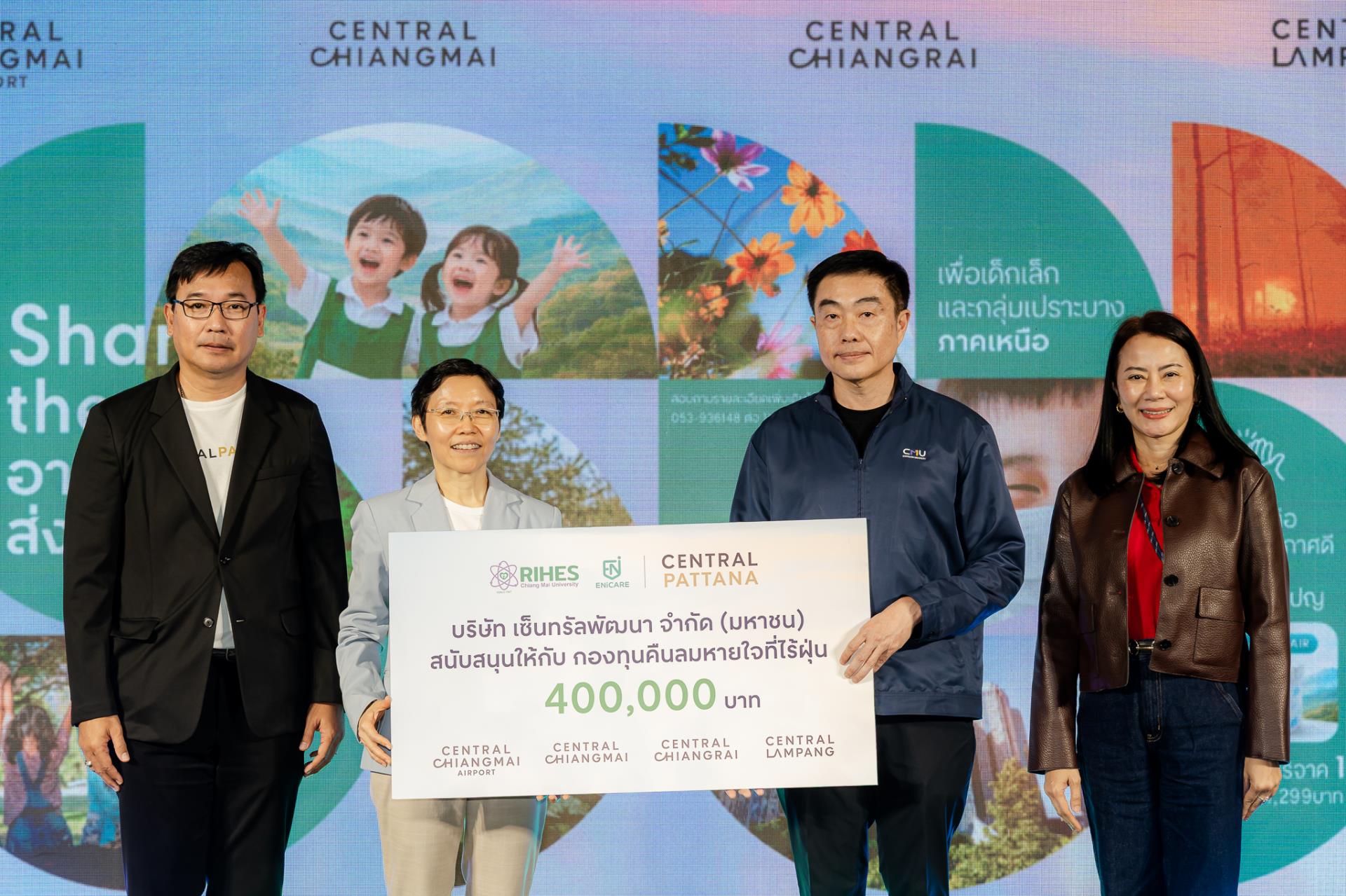 ความร่วมมือครั้งนี้ได้รับการสนับสนุนอย่างเป็นรูปธรรมจาก บริษัท เซ็นทรัลพัฒนา จำกัด (มหาชน) โดย คุณอุทัยวรรณ อนุชิตานุกูล กรรมการผู้จัดการฝ่ายบริหารความเป็นเลิศและการพัฒนาที่ยั่งยืน ได้มอบเงินสนับสนุนจำนวน 400,000 บาท ให้แก่โครงการ “คืนลมหายใจที่ไร้ฝุ่น” ซึ่งมี ศาสตราจารย์ นายแพทย์เกรียงไกร ศรีธนวิบุญชัย ผู้อำนวยการสถาบันวิจัยวิทยาศาสตร์สุขภาพ เป็นผู้แทนรับมอบ เพื่อขยายผลการดำเนินงานสู่ชุมชนและกลุ่มเปราะบางในพื้นที่ภาคเหนือ ณ ลานโปรโมชั่น ชั้น 1 ศูนย์การค้าเซ็นทรัล เชียงใหม่ วันจันทร์ที่ 23 มีนาคม พ.ศ. 2569