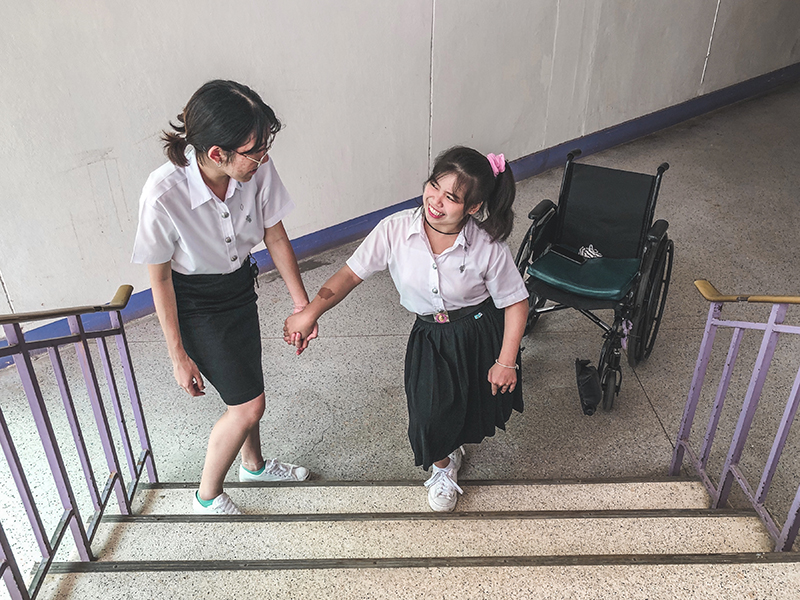 แนวคิด คนที่นั่งรถเข็นสามารถเดินได้เองนิดหน่อย แต่ถ้าเราไปช่วย พยุงเขาไว้ เขาก็จะสามารถลุกจากรถเข็นแล้วเดินกับเราอย่างค่อย ๆ ไปได้