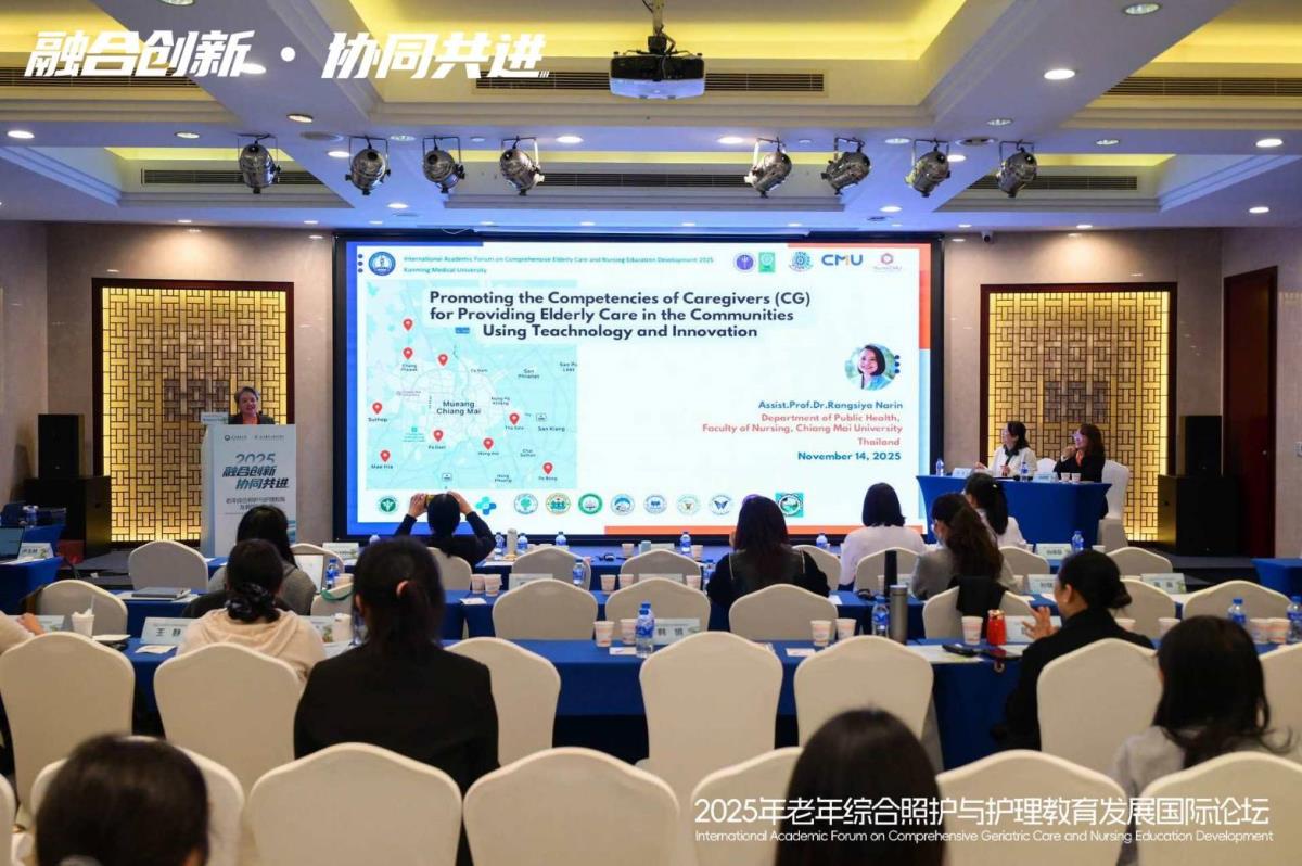 ผู้ช่วยศาสตราจารย์ ดร.ณัฐธยาน์ สุวรรณคฤหาสน์ หัวหน้าสำนักวิชาพยาบาลศาสตร์ และผู้ช่วยศาสตราจารย์ ดร.รังสิยา นารินทร์ กลุ่มวิชาการพยาบาลสาธารณสุข คณะพยาบาลศาสตร์ มหาวิทยาลัยเชียงใหม่ ได้รับเชิญจาก School of Nursing, Kunming Medical University เป็นวิทยากรและเข้าร่วมการประชุมวิชาการนานาชาติ "International Academic Forum on Comprehensive Geriatric Care and Nursing Education Development" ระหว่างวันที่ 13-15 พฤศจิกายน 2568 ณ Kunming Medical University มณฑลยูนนาน สาธารณรัฐประชาชนจีน