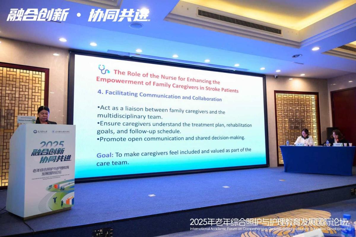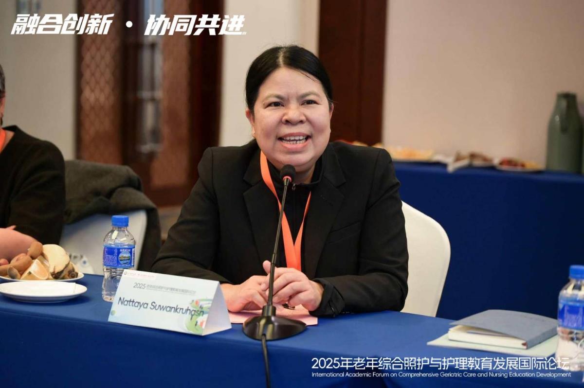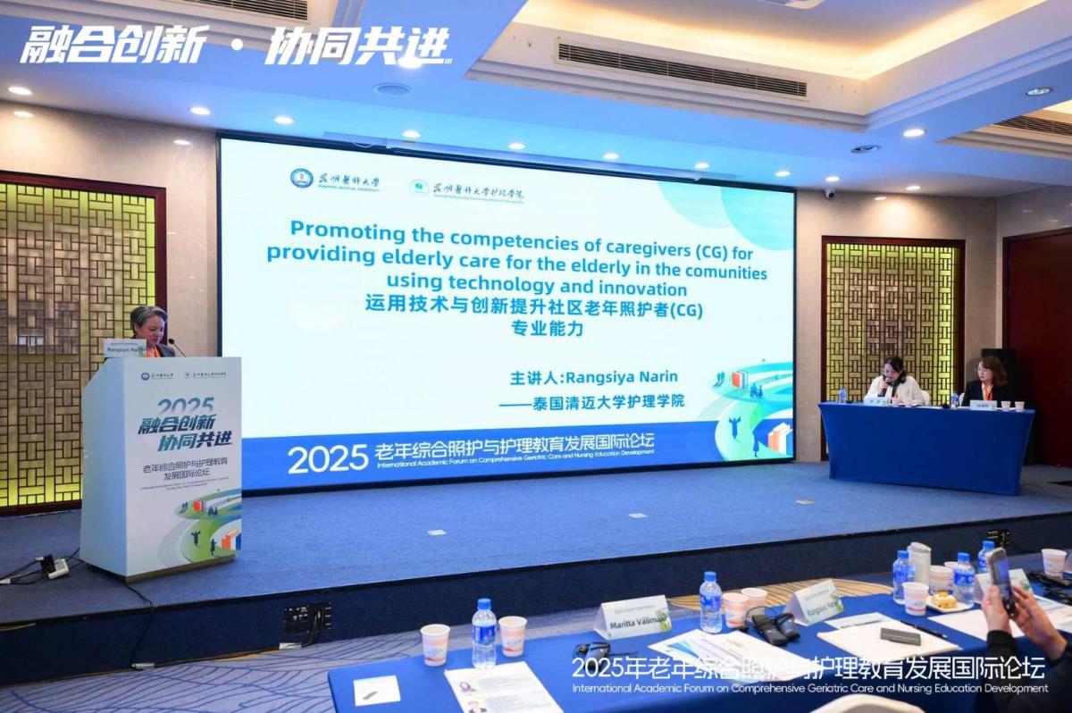 ในโอกาสนี้ ผู้ช่วยศาสตราจารย์ ดร.ณัฐธยาน์ สุวรรณคฤหาสน์ บรรยายหัวข้อ "Empowering Family Caregivers in Elderly Stroke: A Nurse Educator's Role" และ ผู้ช่วยศาสตราจารย์ ดร.รังสิยา นารินทร์ บรรยายหัวข้อ "Promoting the Competencies of Caregivers (CG) for Providing Elderly Care for the Elderly in the Communities Using Technology and Innovation" นอกจากนี้ ทั้งสองท่านยังได้ร่วมแลกเปลี่ยนทางวิชาการในการเสวนา (Roundtable Discussion) หัวข้อ "International Nursing Education Development" อีกด้วย
