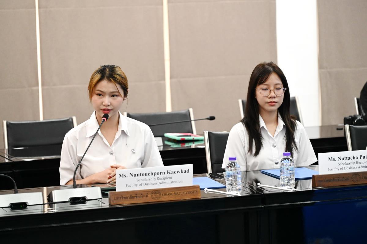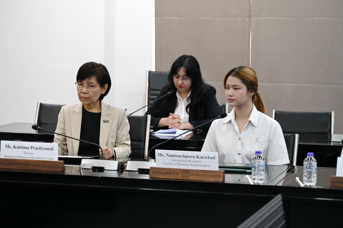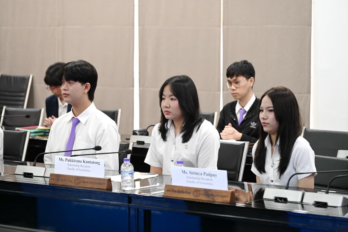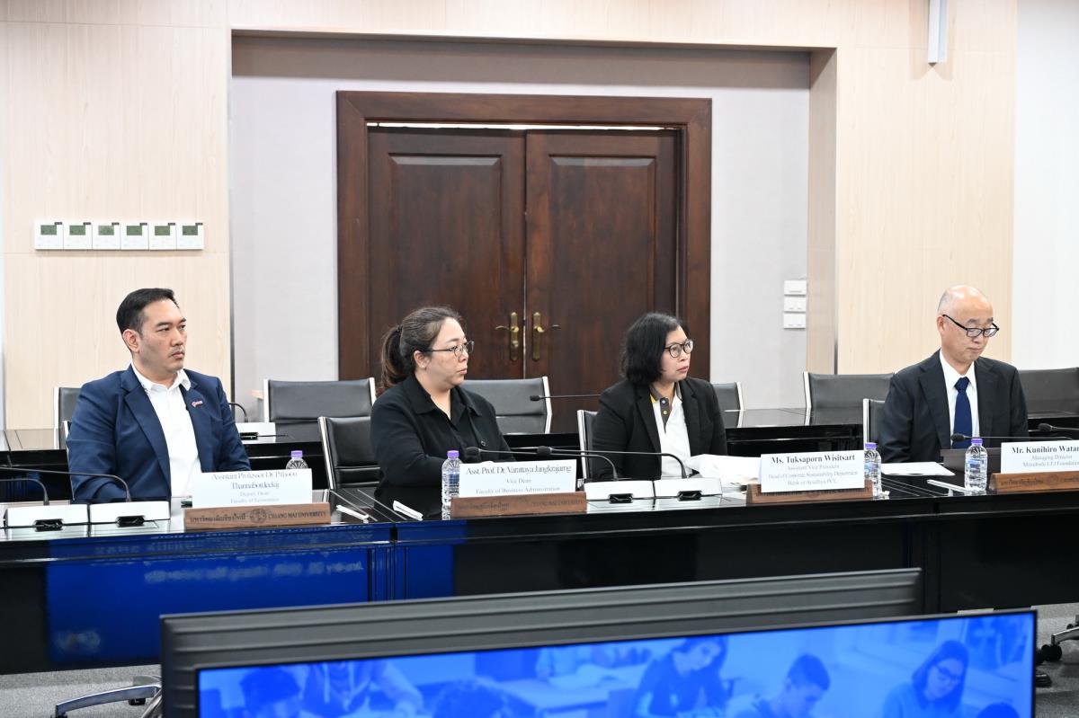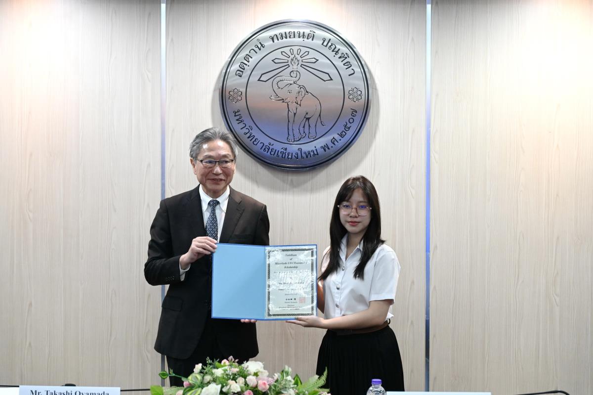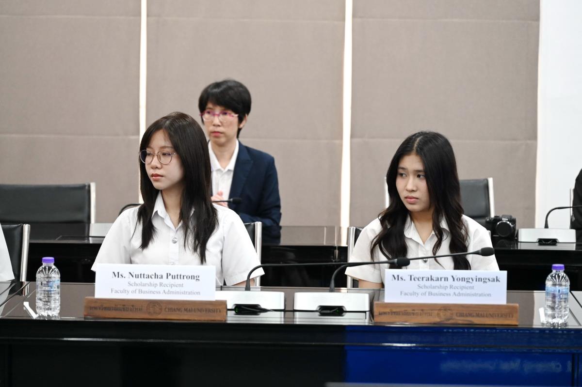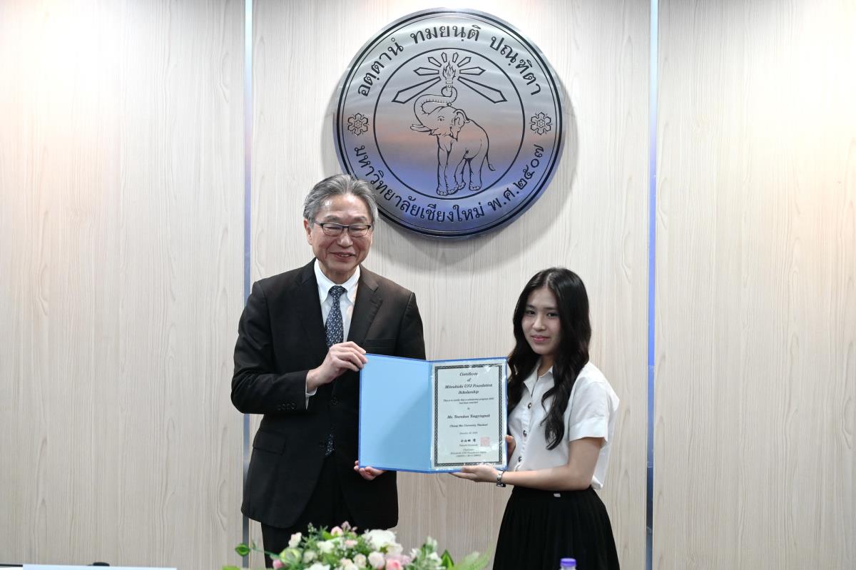 ผู้ช่วยศาสตราจารย์ ดร.ทพญ.วรกัญญา บูรณพัฒนา ผู้ช่วยอธิการบดี และคณะผู้บริหารมหาวิทยาลัยเชียงใหม่ ให้การต้อนรับ Mr. Takashi Omayada, Chairman Mitsubishi UFJ Foundation ในโอกาสที่มามอบทุนการศึกษา Mitsubishi UFJ Foundation Scholarship Awarding Ceremony 2026 ให้แก่คณะนักศึกษาคณะบริหารธุรกิจและคณะเศรษฐศาสตร์มหาวิทยาลัยเชียงใหม่ โดยมีคุณเสาวณีย์ รัตนกิจ ผู้บริหารฝ่ายกิจกรรมเพื่อสังคม ธนาคารกรุงศรีอยุธยา จำกัด (มหาชน) และผู้แทนจาก Mitsubishi UFJ Foundation ร่วมพิธีมอบทุน ณ ห้องประชุมพระยาศรีวิสารวาจา อาคารสำนักงานมหาวิทยาลัย 1 มหาวิทยาลัยเชียงใหม่ วันอังคารที่ 20 มกราคม พ.ศ. 2569