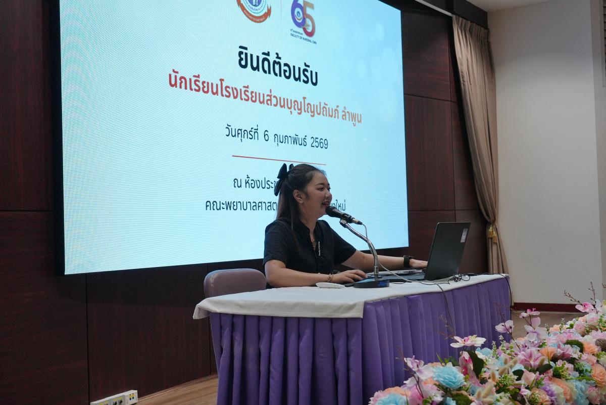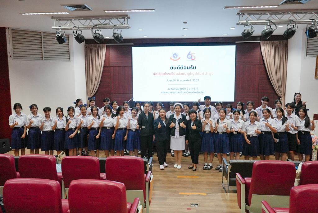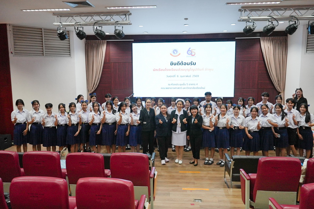 วันศุกร์ที่ 6 กุมภาพันธ์ 2569 คณะพยาบาลศาสตร์ มหาวิทยาลัยเชียงใหม่ นำโดย ผู้ช่วยศาสตราจารย์ ดร.ชุติมา มีชำนาญ ผู้ช่วยคณบดี พร้อมด้วย บุคลากรงานบริการการศึกษาและพัฒนาคุณภาพการศึกษา ให้การต้อนรับคณะครูและนักเรียนจากโรงเรียนส่วนบุญโญปถัมภ์ จังหวัดลำพูน ในโอกาสเข้ารับฟังการแนะแนวเกี่ยวกับการเรียนการสอนระดับปริญญาตรีของคณะฯ ได้แก่ โครงสร้างหลักสูตร รูปแบบการจัดการเรียนการสอน ข้อมูลเกี่ยวกับระบบและกระบวนการรับสมัครต่าง ๆ นอกจากนี้ได้เยี่ยมชมเพื่อเปิดโลกทัศน์และสัมผัสกับบรรยากาศแห่งการเรียนรู้ ณ ห้องปฏิบัติการทางการพยาบาล พิพิธภัณฑ์ประวัติคณะฯ สร้างแรงบันดาลใจสำหรับใช้เป็นแนวทางประกอบการตัดสินใจเข้าศึกษาต่อในอนาคตต่อไป