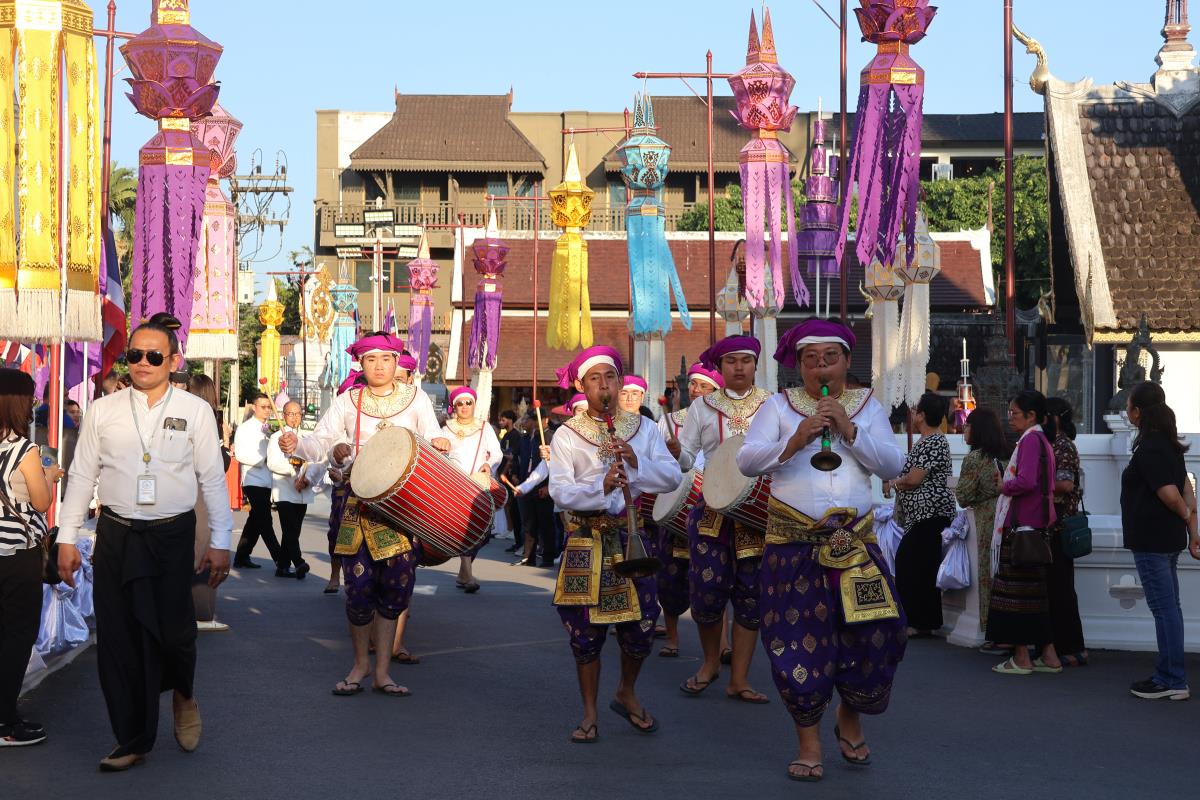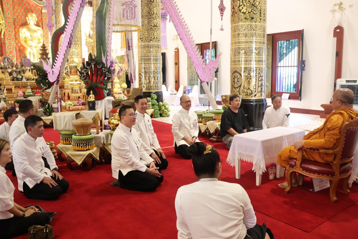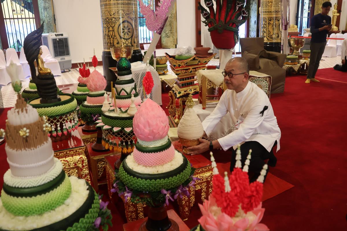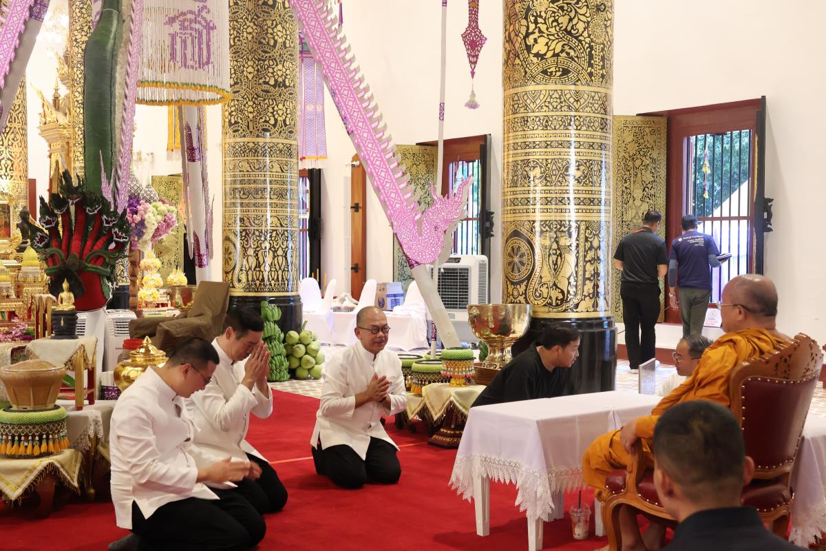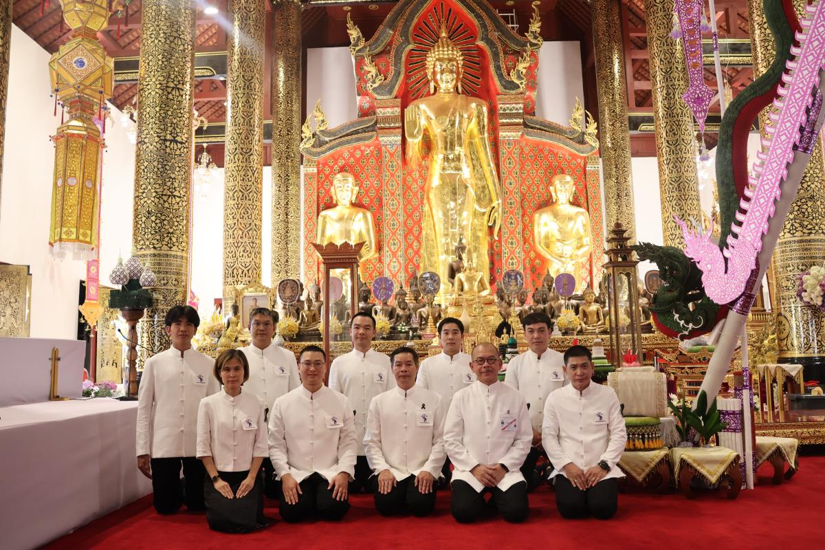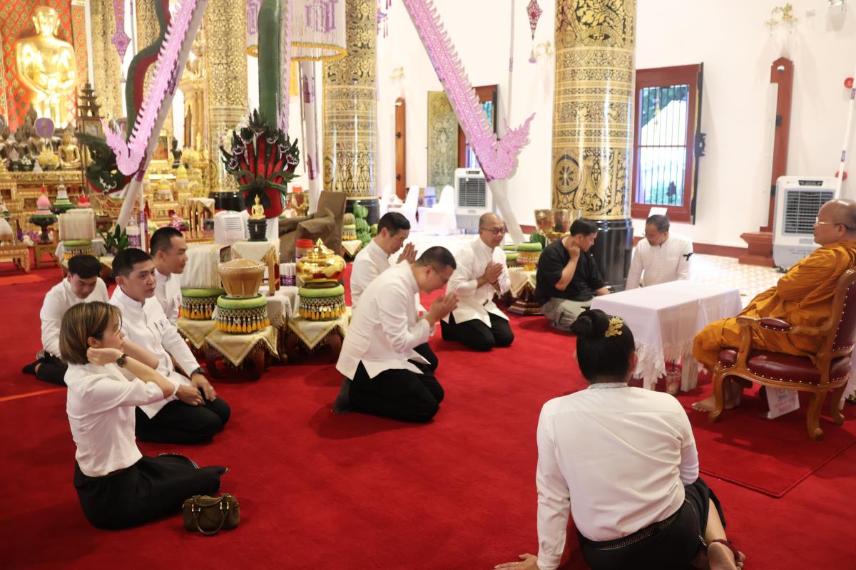 ศาสตราจารย์ปฏิบัติ ดร. เอกชัย มหาเอก รองอธิการบดี เป็นผู้แทนมหาวิทยาลัยเชียงใหม่ อันเชิญฝ้ายมงคลผูกข้อพระกร สมเด็จพระกนิษฐาธิราชเจ้า กรมสมเด็จพระเทพรัตนราชสุดาฯ สยามบรมราชกุมารี ในพิธีทูลพระขวัญ มหาวิทยาลัยเชียงใหม่ น้อมเกล้าจัดถวาย ณ วัดเจดีย์หลวงวรวิหาร สู่แท่นพิธี ภายในพระวิหารหลวง วัดเจดีย์หลวงวรวิหาร ในวันที่ 21 มกราคม 2568