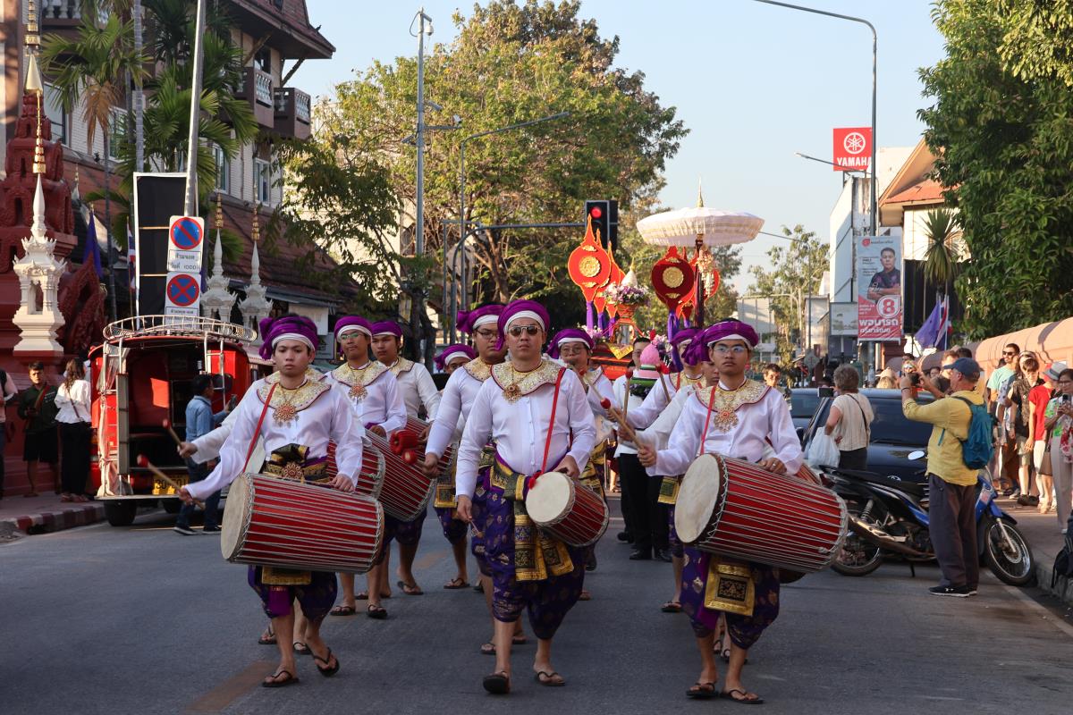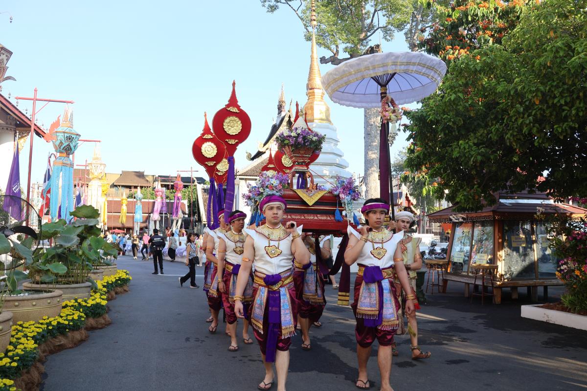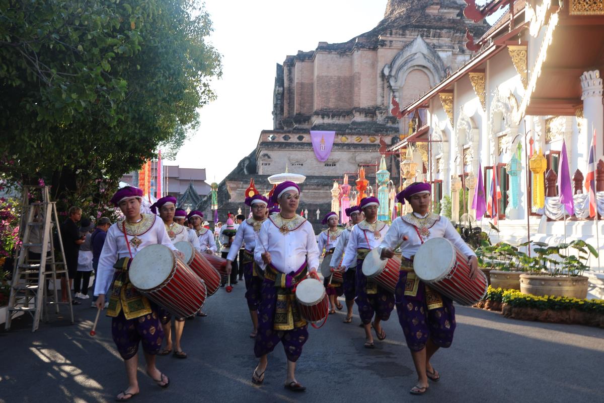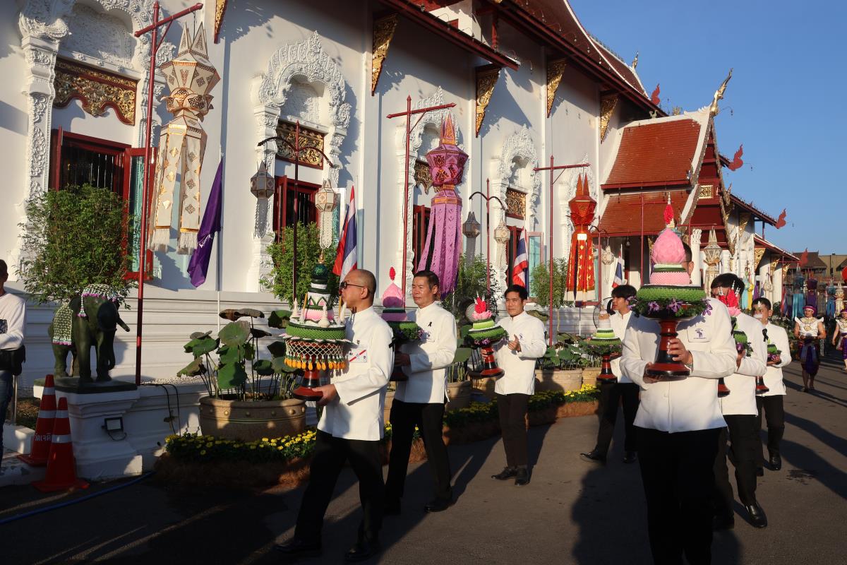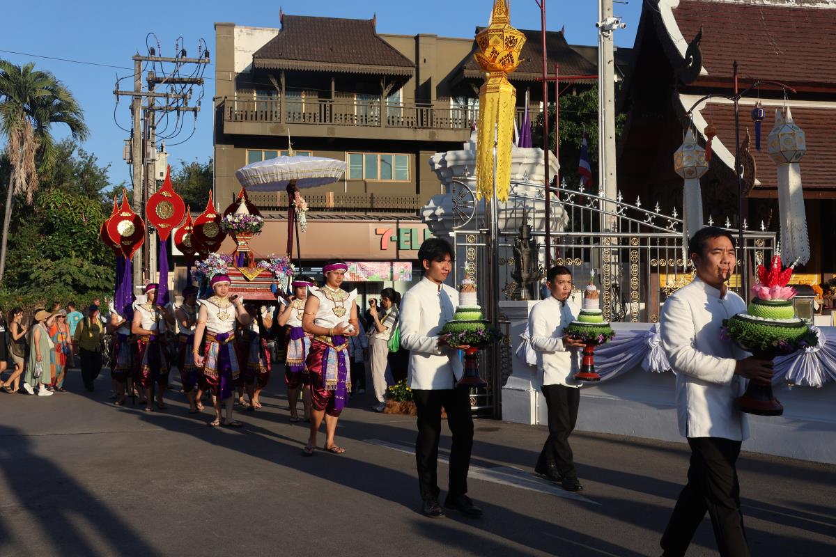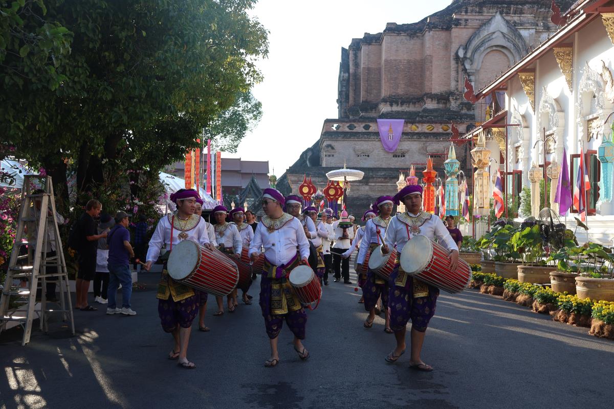 ศาสตราจารย์ปฏิบัติ ดร. เอกชัย มหาเอก รองอธิการบดี เป็นผู้แทนมหาวิทยาลัยเชียงใหม่ อันเชิญฝ้ายมงคลผูกข้อพระกร สมเด็จพระกนิษฐาธิราชเจ้า กรมสมเด็จพระเทพรัตนราชสุดาฯ สยามบรมราชกุมารี ในพิธีทูลพระขวัญ มหาวิทยาลัยเชียงใหม่ น้อมเกล้าจัดถวาย ณ วัดเจดีย์หลวงวรวิหาร สู่แท่นพิธี ภายในพระวิหารหลวง วัดเจดีย์หลวงวรวิหาร ในวันที่ 21 มกราคม 2568