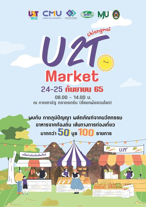 อาจารย์ ดร.ไพรัช พิบูลย์รุ่งโรจน์ ผู้ช่วยอธิการบดีมหาวิทยาลัยเชียงใหม่ กล่าวแสดงความยินดีในพิธีเปิดงาน U2T โครงการมหาวิทยาลัยสู่ตำบล โดยมีนายประพัฒน์ วงค์ชมภู ปลัดอาวุโส อ.หางดงเป็นประธานเปิด นายวิเชียร เชิดชูตะกูลทอง บริษัทภราดรอินโนซิส กล่าวต้อนรับ พร้อมด้วยคณะผู้บริหารจากองค์การบริหารส่วนจังหวัดเชียงใหม่ เทศบาลตำบลหนองควาย ภายใต้ความร่วมมือของ สภาอุตสาหกรรมเชียงใหม่ หอการค้าจังหวัดเชียงใหม่ บริษัทภราดรอินโนซิส สภาอุตสาหกรรมท่องเที่ยวจังหวัดเชียงใหม่ และองค์กรภาคีเครือข่ายเครือข่ายที่ให้การสนับสนุนร่วมพิธีเปิด เพื่อนำเสนอผลการดำเนินงานโครงการขับเคลื่อนเศรษฐกิจสังคมฐานรากหลังโควิดด้วยเศรษฐกิจ BCG (U2T for BCG) โดยมีการออกร้านแสดง จำหน่าย สินค้า ผลงาน และผลิตภัณฑ์ ที่เข้าร่วม ภายใต้แนวคิดการนำเสนอภูมิปัญญา และนวัตกรรมชุมชน โดยมีบูธนำเสนอผลงานกว่า 50 บูธ จัดขึ้นในระหว่างวันที่ 24 -25 กันยายน พ.ศ. 2565 ณ กาดเตาอิฐ ลานเตาอิฐโบราณ ภราดร กรีน (สี่แยกพืชสวนโลก) ต.หนองควาย อ.หางดง จ.เชียงใหม่