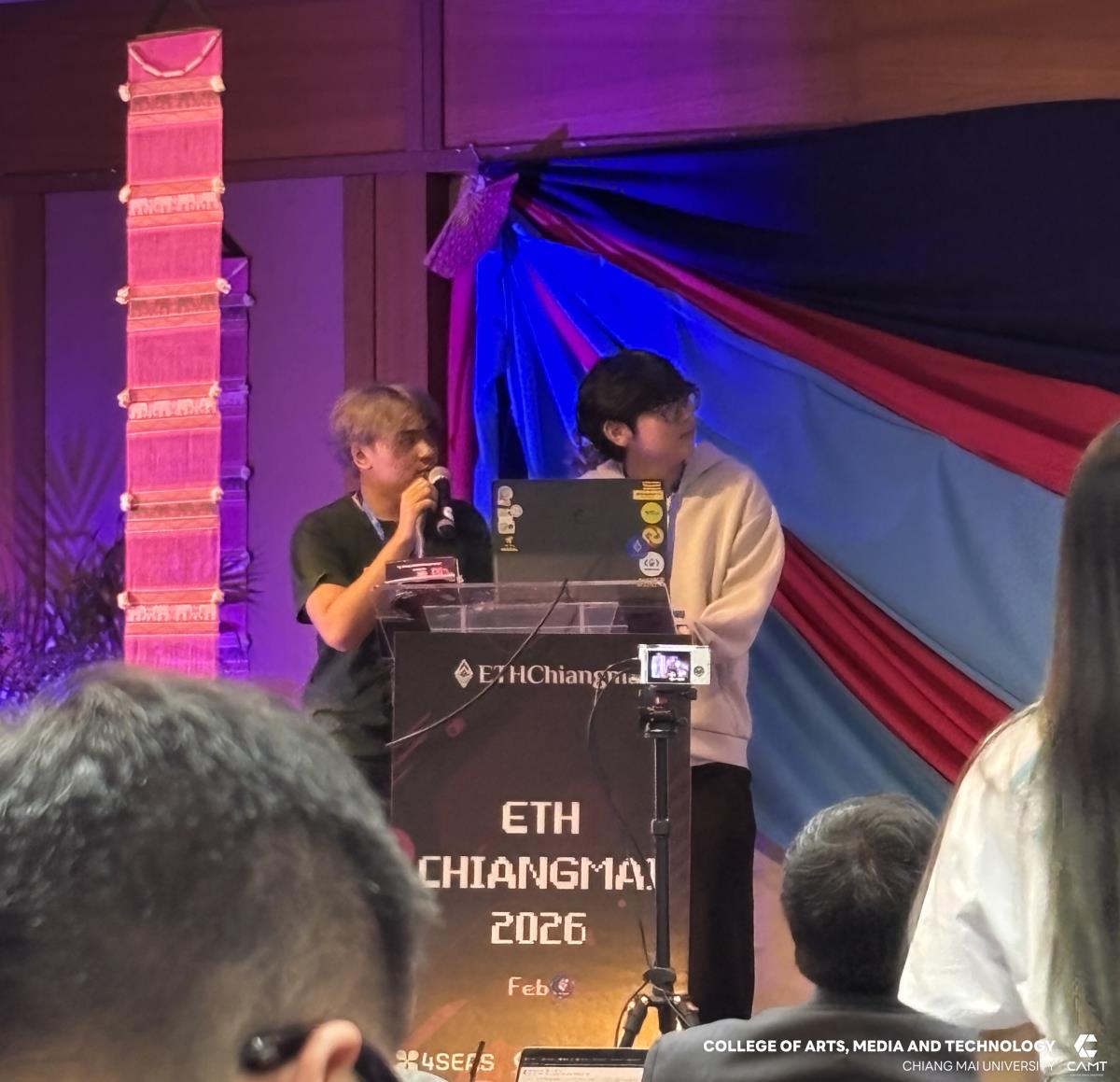 โดยมี อาจารย์กฤตย์ จินกลับ อาจารย์ประจำสาขาบูรณาการอุตสาหกรรมดิจิทัล ร่วมเป็นอาจารย์ที่ปรึกษาและคอยให้คำแนะนำอย่างใกล้ชิด ซึ่งงาน ETHChiangmai เป็นเวที Hackathon ด้าน Ethereum แบบเปิดกว้าง (Open Ecosystem) ที่ดึงดูดบุคลากรชั้นนำ ไม่ว่าจะเป็นนักพัฒนา (Developers), นักวิจัยด้าน Cryptography, วิศวกร DeFi และผู้ประกอบการในยุค Creator Economy มาสร้างสรรค์นวัตกรรมร่วมกัน โดยกิจกรรมจัดขึ้นระหว่างวันที่ 28 มกราคม - 3 กุมภาพันธ์ 2569 ณ มหาวิทยาลัยเชียงใหม่ และ 4Seas Nimman Coliving Coworking Space