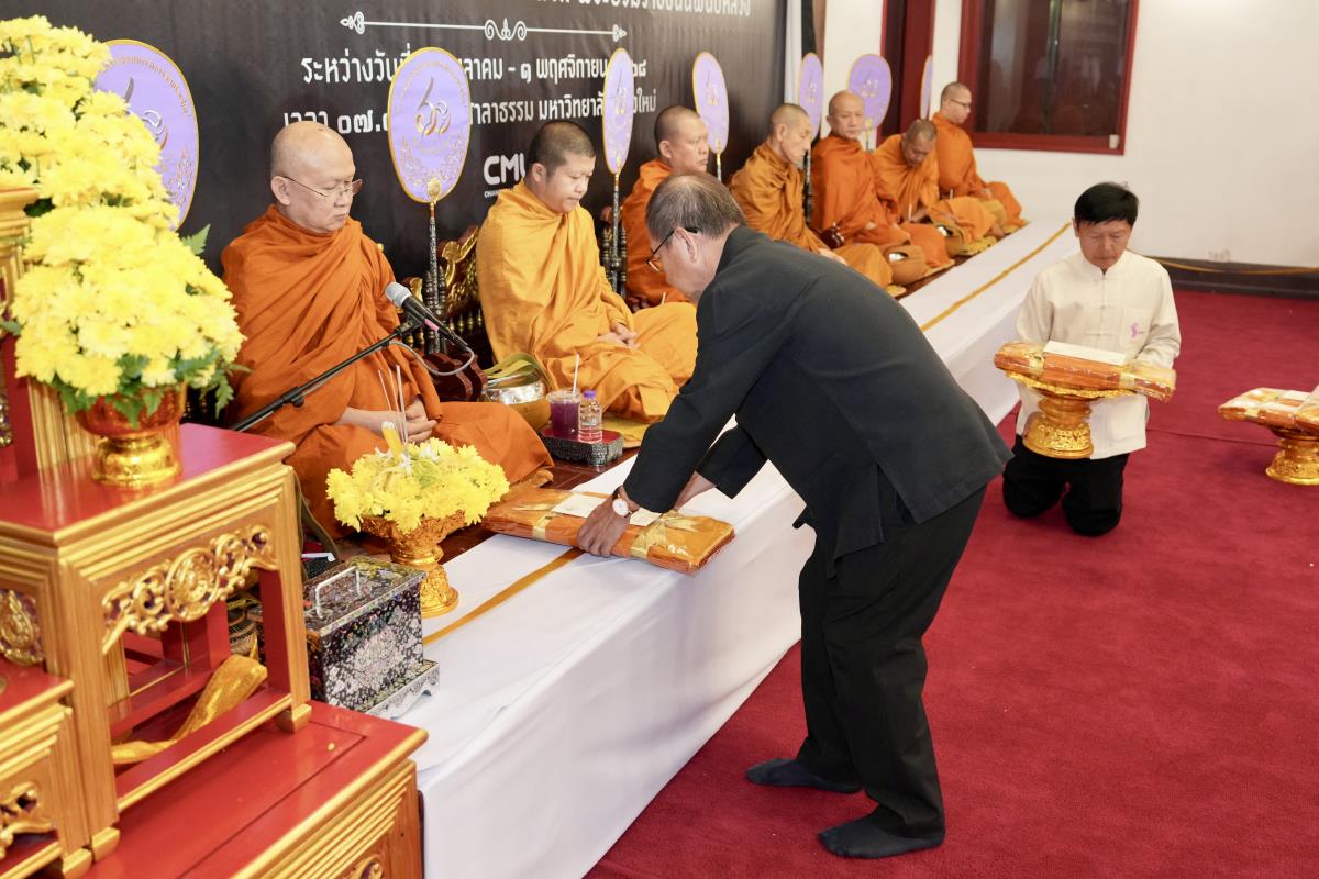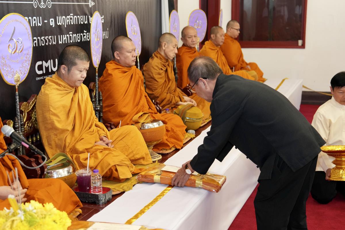 มหาวิทยาลัยเชียงใหม่ จัดพิธีทำบุญตักบาตรเพื่อถวายเป็นพระราชกุศล สมเด็จพระนางเจ้าสิริกิติ์ พระบรมราชินีนาถ พระบรมราชชนนีพันปีหลวง พระผู้เสด็จสู่สวรรคาลัย โดยมีพระครูสมุห์วิษุวัตร วรกิจฺโจ เจ้าอาวาสวัดฝายหิน ประธานสงฆ์ รองศาสตราจารย์ประเสริฐ ฤกษ์เกรียงไกร รองอธิการบดี รักษาการแทนอธิการบดี พร้อมด้วยผู้บริหาร คณาจารย์ ข้าราชการ พนักงาน เจ้าหน้าที่ บุคลากร และนักศึกษามหาวิทยาลัยเชียงใหม่ ร่วมพิธีฯ ณ ศาลาธรรม มหาวิทยาลัยเชียงใหม่ เมื่อวันที่ 26 ตุลาคม 2568