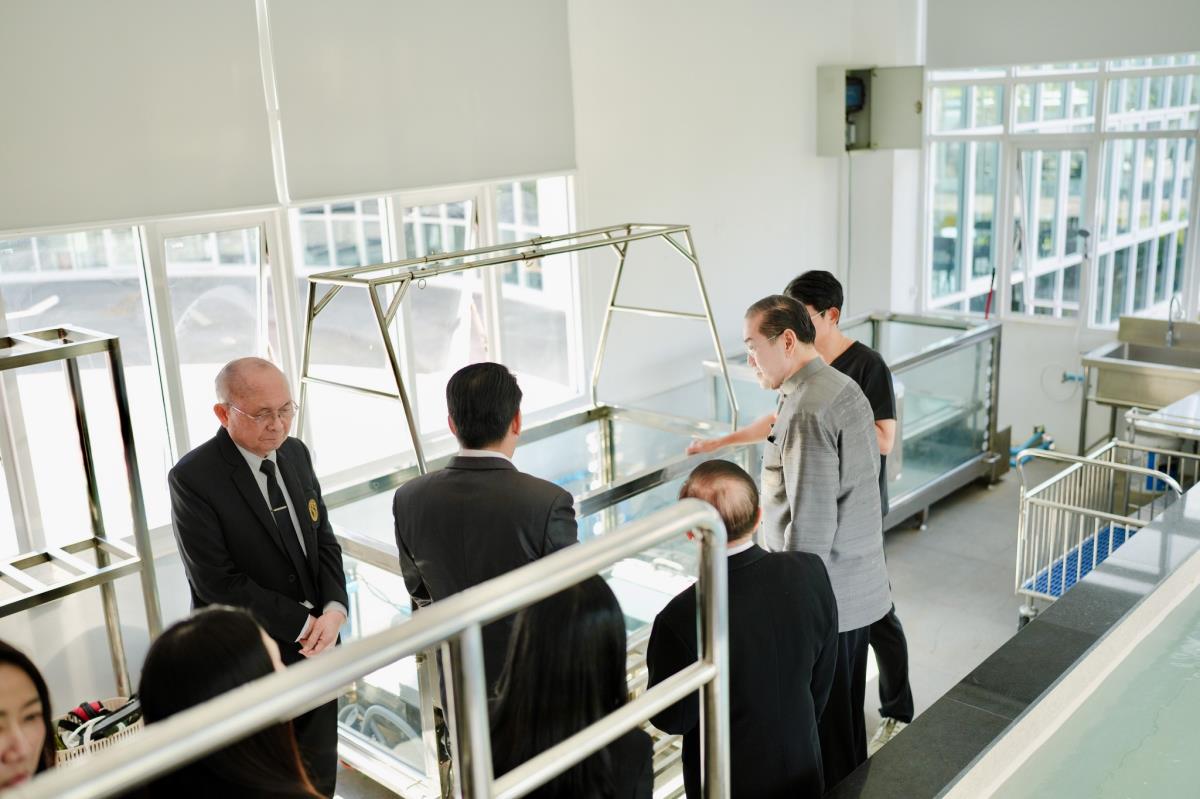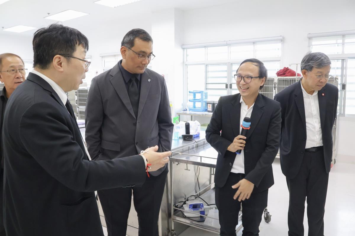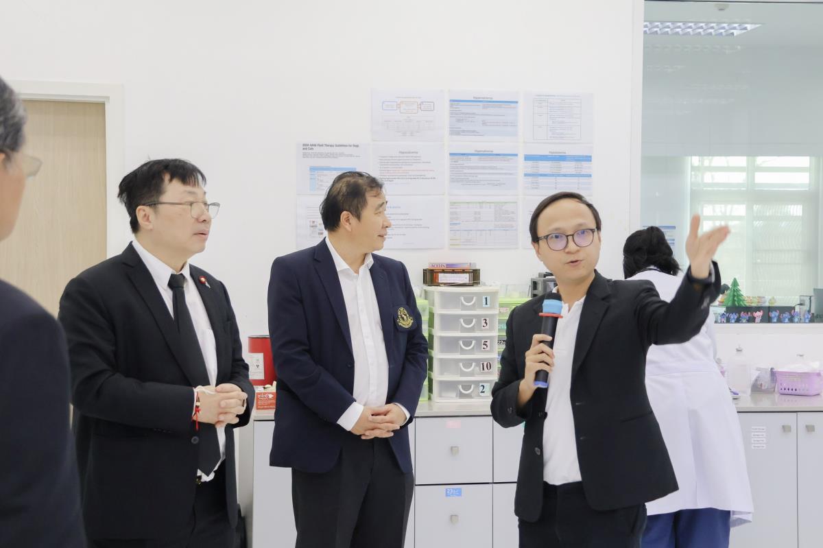 โอกาสนี้ คณะกรรมการสภามหาวิทยาลัยและคณะผู้บริหารมหาวิทยาลัยเชียงใหม่ ได้เยี่ยมชมการดำเนินงานในส่วนต่าง ๆ ของอาคาร NOVEL CMU อาทิ คลินิกสัตว์น้ำ คลินิกกายภาพบำบัด ศูนย์เอกซเรย์คอมพิวเตอร์ และหน่วยงานด้านการบริการและการเรียนรู้ทางสัตวแพทย์ที่ทันสมัย ซึ่งสะท้อนถึงศักยภาพของคณะสัตวแพทยศาสตร์ มหาวิทยาลัยเชียงใหม่ ในการเป็นศูนย์กลางด้านการเรียนรู้ การวิจัย และการให้บริการสุขภาพสัตว์ในระดับภูมิภาค โดยมี ศ.(เชี่ยวชาญพิเศษ) ดร. น.สพ.กรกฎ งานวงศ์พาณิชย์ คณบดี และ ผศ. ดร. น.สพ.อติกันต์ ทองทาบ ผู้อำนวยการศูนย์การเรียนรู้และส่งเสริมสุขภาพทางสัตวแพทย์ภาคเหนือ เป็นผู้นำเยี่ยมชม