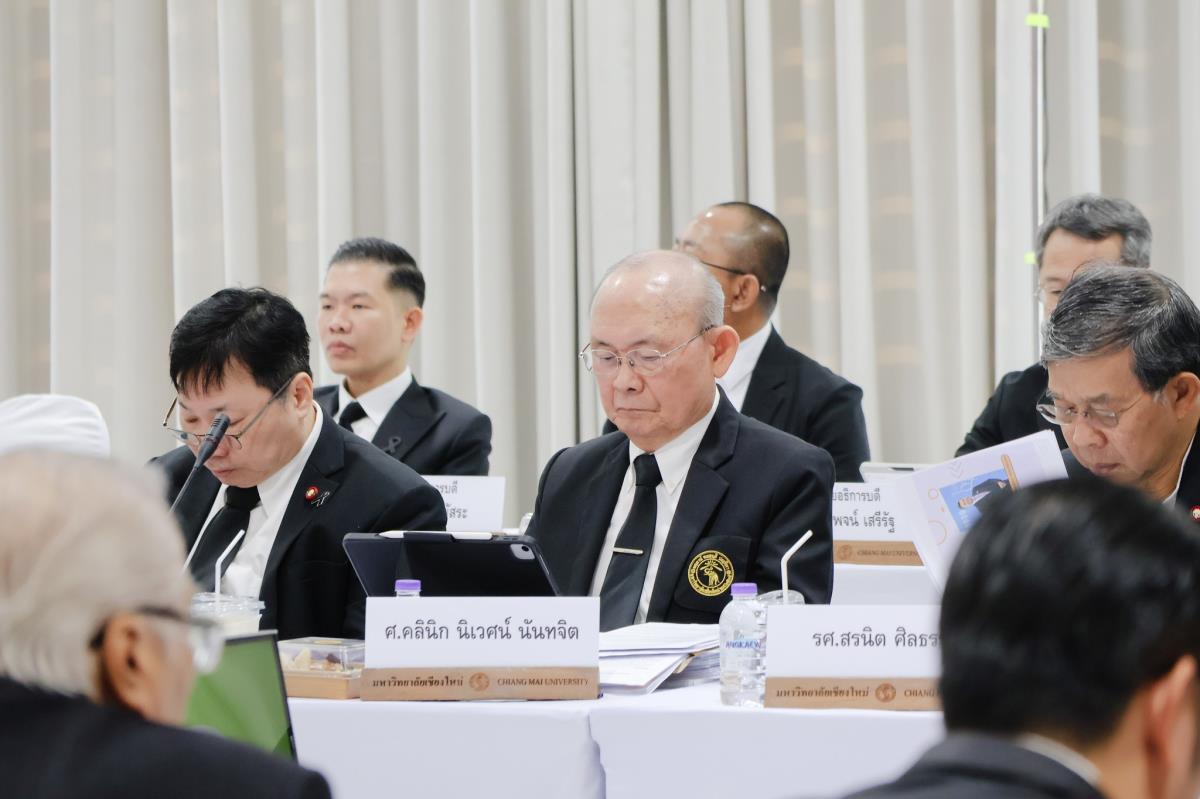 คณะสัตวแพทยศาสตร์ มหาวิทยาลัยเชียงใหม่ นำโดย ศ.(เชี่ยวชาญพิเศษ) ดร. น.สพ.กรกฎ งานวงศ์พาณิชย์ คณบดี พร้อมด้วยคณะผู้บริหารและบุคลากร ให้การต้อนรับ ศ.(พิเศษ) ดร.สุรเกียรติ์ เสถียรไทย นายกสภามหาวิทยาลัยเชียงใหม่ พร้อมด้วย ศ. ดร. นพ.พงษ์รักษ์ ศรีบัณฑิตมงคล อธิการบดีมหาวิทยาลัยเชียงใหม่ คณะกรรมการสภามหาวิทยาลัย และคณะผู้บริหารมหาวิทยาลัยเชียงใหม่ ในโอกาสเข้าใช้สถานที่จัดการประชุมสภามหาวิทยาลัย มหาวิทยาลัยเชียงใหม่ ครั้งที่ 12/2568 ณ ห้องประชุมชั้น 3 อาคารศูนย์การเรียนรู้และส่งเสริมสุขภาพทางสัตวแพทย์ภาคเหนือ (NOVEL CMU) เมื่อวันที่ 27 ธันวาคม 2568