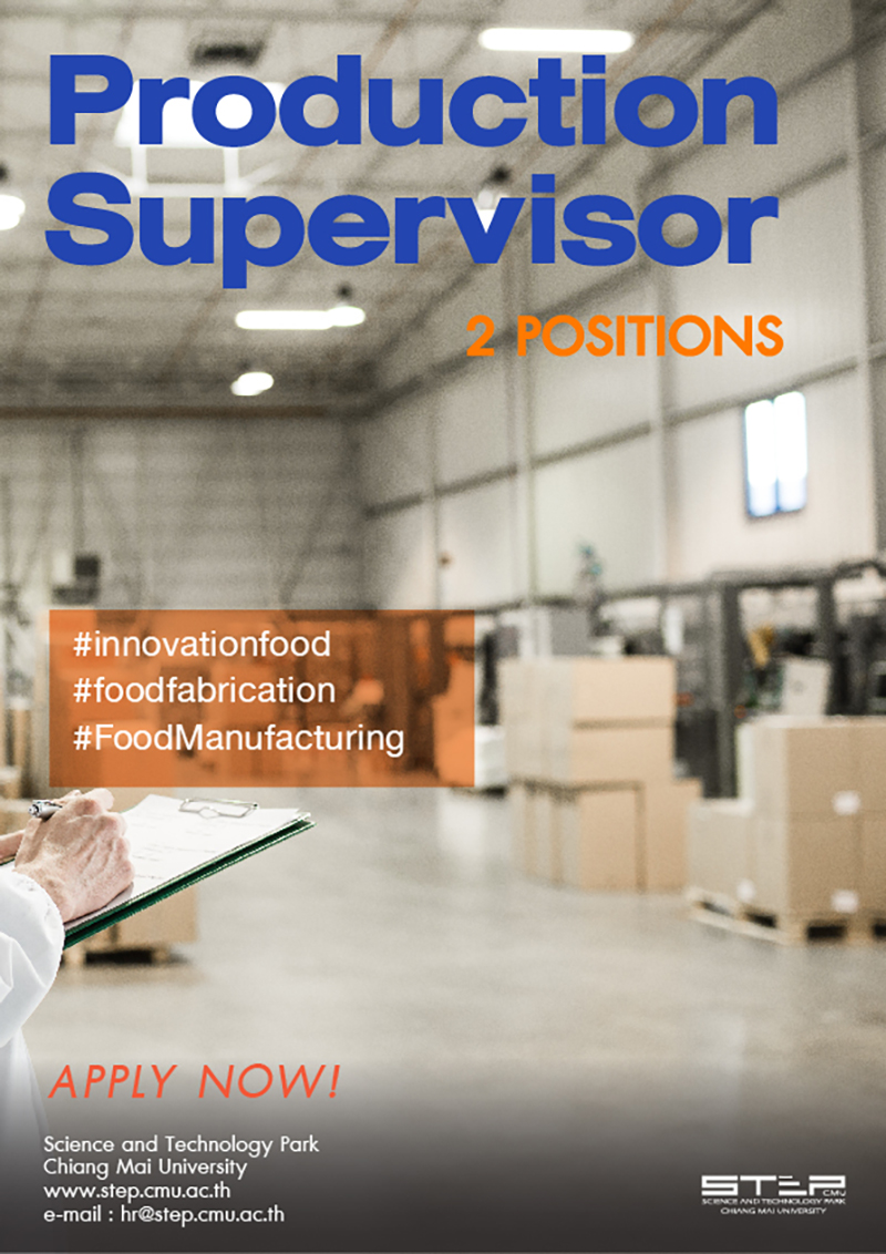 ตำแหน่งงาน "พนักงานควบคุมการผลิตอาหารแปรรูป โรงงานต้นแบบนวัตกรรมอาหารครบวงจร (Production Supervisor)"
