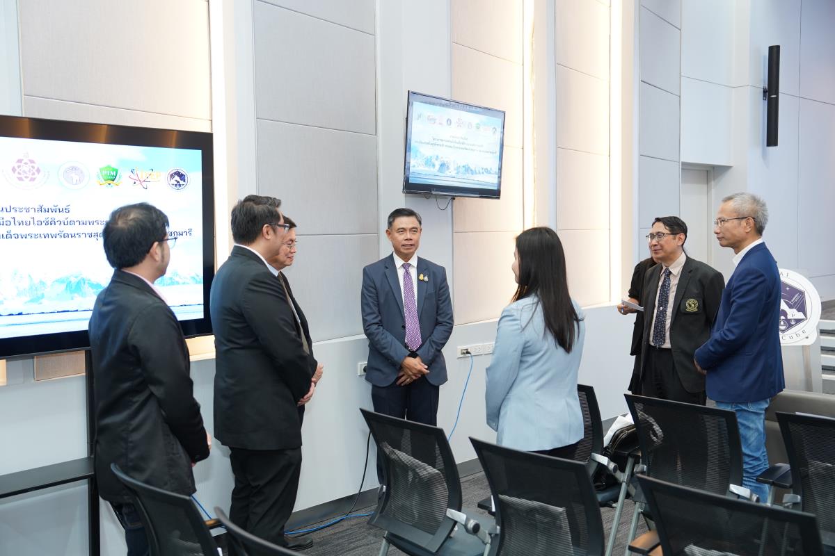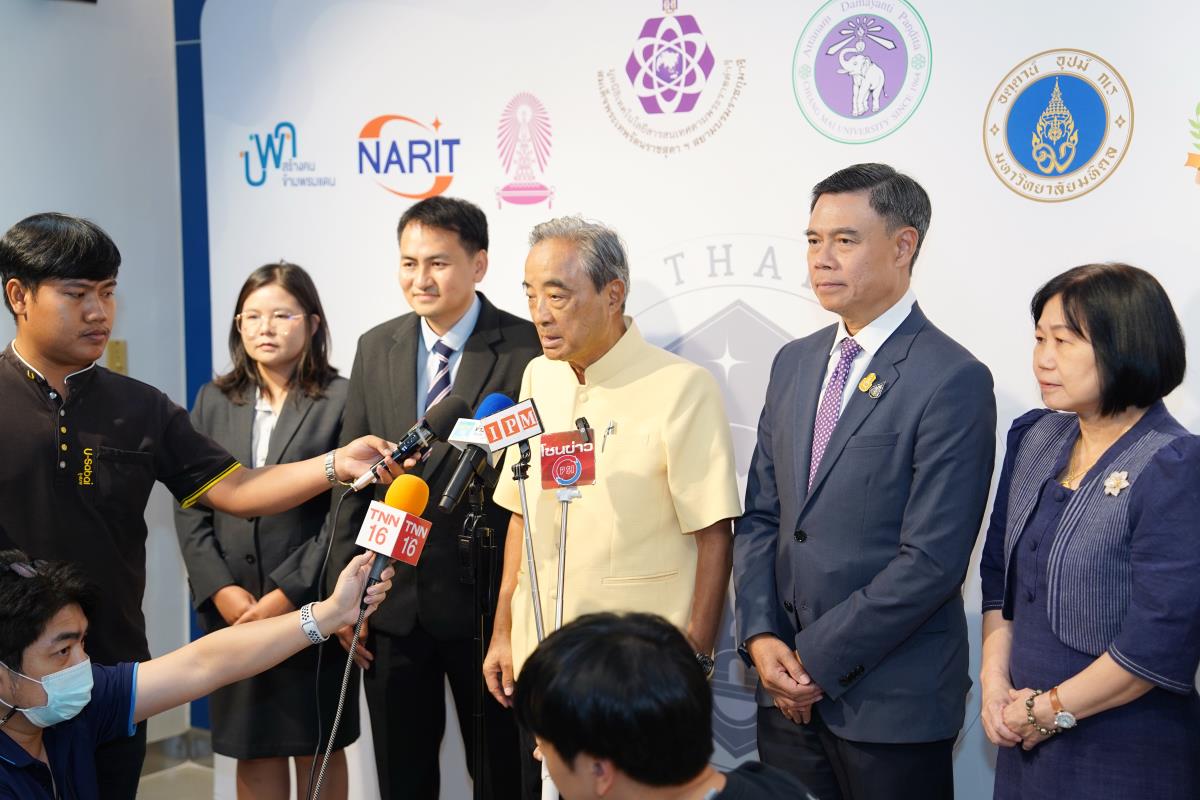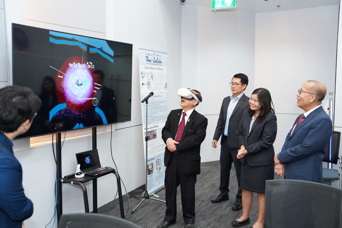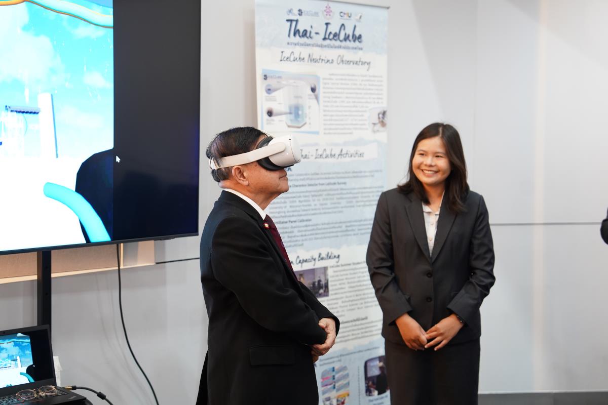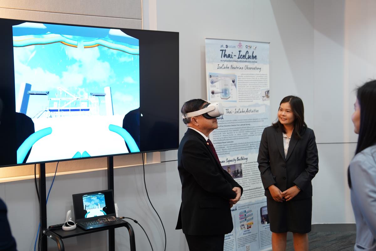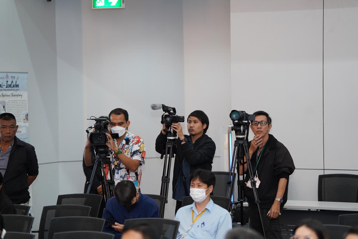 เมื่อวันที่ 24 พฤศจิกายน 2566 ศาสตราจารย์ ดร.นพ.พงษ์รักษ์ ศรีบัณฑิตมงคล อธิการบดีมหาวิทยาลัยเชียงใหม่ กล่าวถึงวิสัยทัศน์การดำเนินงานวิจัยของ มหาวิทยาลัยเชียงใหม่ และขอบคุณหน่วยงานที่มีความร่วมมือในการวิจัย งานแถลงข่าวโครงการความร่วมมือไทย-ไอซ์คิวบ์ ตามพระราชดำริ สมเด็จพระกนิษฐาธิราชเจ้า กรมสมเด็จพระเทพรัตนราชสุดาฯ สยามบรมราชกุมารี ซึ่งเป็นความร่วมมือระหว่างประเทศไทยกับสหรัฐอเมริกาในการวิจัยและพัฒนาวิทยาศาสตร์และเทคโนโลยีที่เกี่ยวข้องกับการตรวจวัดอนุภาคนิวทริโนจากวัตถุนอกระบบสุริยะ โครงการวิจัยดังกล่าวได้รับการสนับสนุนจากหน่วยบริหารและจัดการทุนด้านการพัฒนากำลังคน และทุนด้านการพัฒนาสถาบันอุดมศึกษา การวิจัยและการสร้างนวัตกรรม (บพค.) สำนักงานสภานโยบายการอุดมศึกษา วิทยาศาสตร์ วิจัยและนวัตกรรมแห่งชาติ (สอวช.) สำนักงานการวิจัยแห่งชาติ (วช.) สำนักงานพัฒนาวิทยาศาสตร์และเทคโนโลยีแห่งชาติ (สวทช.) มหาวิทยาลัยเชียงใหม่ ตลอดจนหน่วยงานภาคีความร่วมมือวิจัย อันได้แก่ มหาวิทยาลัยมหิดล สถาบันวิจัยดาราศาสตร์แห่งชาติ (องค์การมหาชน) จุฬาลงกรณ์มหาวิทยาลัย และสถาบันการจัดการปัญญาภิวัฒน์ โดยมีศาสตราจารย์ ดร.ไพรัช ธัชยพงษ์ กรรมการและเลขาธิการ มูลนิธิเทคโนโลยีสารสนเทศตามพระราชดำริสมเด็จพระเทพรัตนราชสุดา ฯ สยามบรมราชกุมารี นางสาวสุณีย์ เลิศเพียรธรรม หัวหน้าผู้ตรวจราชการกระทรวงการกระทรวงการอุดมศึกษา วิทยาศาสตร์ วิจัยและนวัตกรรม และนักวิจัย เข้าร่วม ณ ห้องแถลงข่าว อาคารพระจอมเกล้า (ถนนโยธี) กระทรวงการอุดมศึกษา วิทยาศาสตร์ วิจัยและนวัตกรรม