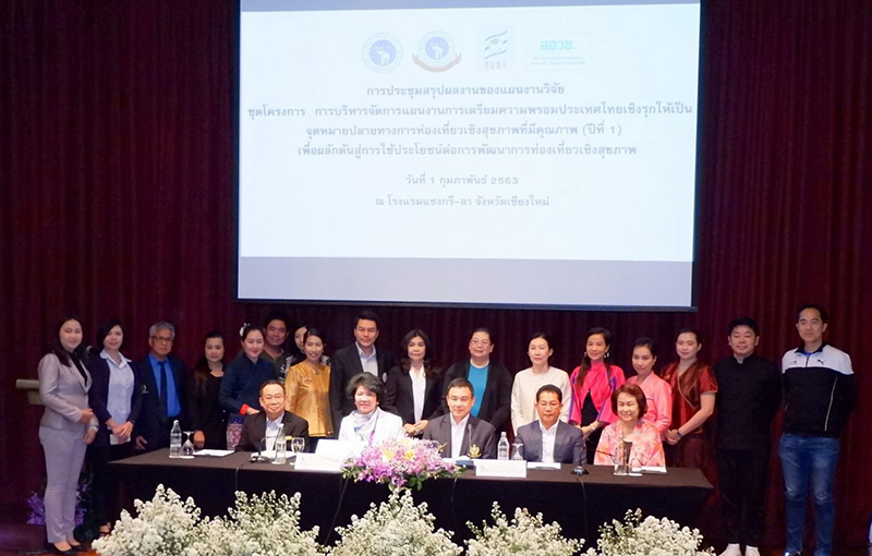 การดำเนินการชุดโครงการการเตรียมความพร้อมประเทศไทยเชิงรุกให้เป็นจุดหมายปลายทางการท่องเที่ยวเชิงสุขภาพที่มีคุณภาพ ได้รับการสนับสนุนการดำเนินงานจากสำนักงานคณะกรรมการส่งเสริมวิทยาศาสตร์ วิจัยและนวัตกรรม (สกสว.) อยู่ภายใต้แผนงาน Spearhead ด้านเศรษฐกิจ รูปแบบการบริหารจัดการแผนงานการบริการมูลค่าสูง โดยมี คุณพงษ์ภาณุ เศวตรุนทร์ เป็นประธานบริหารแผนงานฯ และ ศาสตราจารย์ ดร.วิภาดา คุณาวิกติกุล คณบดีคณะพยาบาลศาสตร์ มหาวิทยาลัยเชียงใหม่ เป็นผู้อำนวยการแผนงานของชุดโครงการฯ ดังกล่าว มีวัตถุประสงค์เพื่อการศึกษาหาแนวทางการพัฒนาประเทศไทยสู่การเป็นจุดหมายปลายทางท่องเที่ยวเชิงกีฬา (Sport Destination) ศึกษาและวิเคราะห์ห่วงโซ่อุปทานและกำหนดแนวทางการยกระดับการท่องเที่ยวเชิงกีฬาศักยภาพสูงกลุ่มกอล์ฟ และการท่องเที่ยวเชิงกีฬาวิ่ง จักรยาน และศิลปะมวยไทย ที่สอดคล้องกับการความต้องการของนักท่องเที่ยวรวมทั้ง เพื่อส่งเสริมและพัฒนาคุณภาพการให้บริการสปาในพื้นที่ภาคใต้ และเพื่อพัฒนารูปแบบการให้บริการสปาล้านนาที่มีมาตรฐานเพื่อการท่องเที่ยวเชิงสุขภาพ โดยจะก่อให้เกิดนวัตกรรมที่หลากหลายจากการดำเนินการศึกษาวิจัย ได้แก่ โมเดลธุรกิจการท่องเที่ยวส่งเสริมสุขภาพด้วยนวัตกรรมบริการบนฐานมรดกวัฒนธรรมและจิตบริการแบบไทยให้เป็นส่วนหนึ่งของกลไกขับเคลื่อนระบบการท่องเที่ยวส่งเสริมสุขภาพของไทยสู่การเป็น Global Wellness Tourism Destination อีกทั้งเพื่อกำกับ ติดตาม เร่งรัด การดำเนินการโครงการวิจัยภายใต้แผนงานให้สำเร็จลุล่วง และส่งมอบผลสำเร็จการดำเนินงานตามเป้าหมายที่กำหนดไว้ การวิจัยครั้งนี้มีวิธีการดำเนินงานที่เป็นระบบภายใต้ระเบียบวิธีวิจัยที่เชื่อถือได้ ทั้งการใช้วิจัยเชิงผลลัพธ์เป็นหลัก การวิจัยเชิงทดลอง การวิจัยเชิงพัฒนา การประเมิน วิเคราะห์ สังเคราะห์งานวิจัยทั้ง 5 โครงการ รวมทั้งการพัฒนานวัตกรรมทั้งเชิงกระบวนการและผลลัพธ์ ในการดำเนินการชุดโครงการการเตรียมความพร้อมประเทศไทยเชิงรุกให้เป็นจุดหมายปลายทางการท่องเที่ยวเชิงสุขภาพที่มีคุณภาพประกอบด้วยโครงการ 5 โครงการ ดังนี้