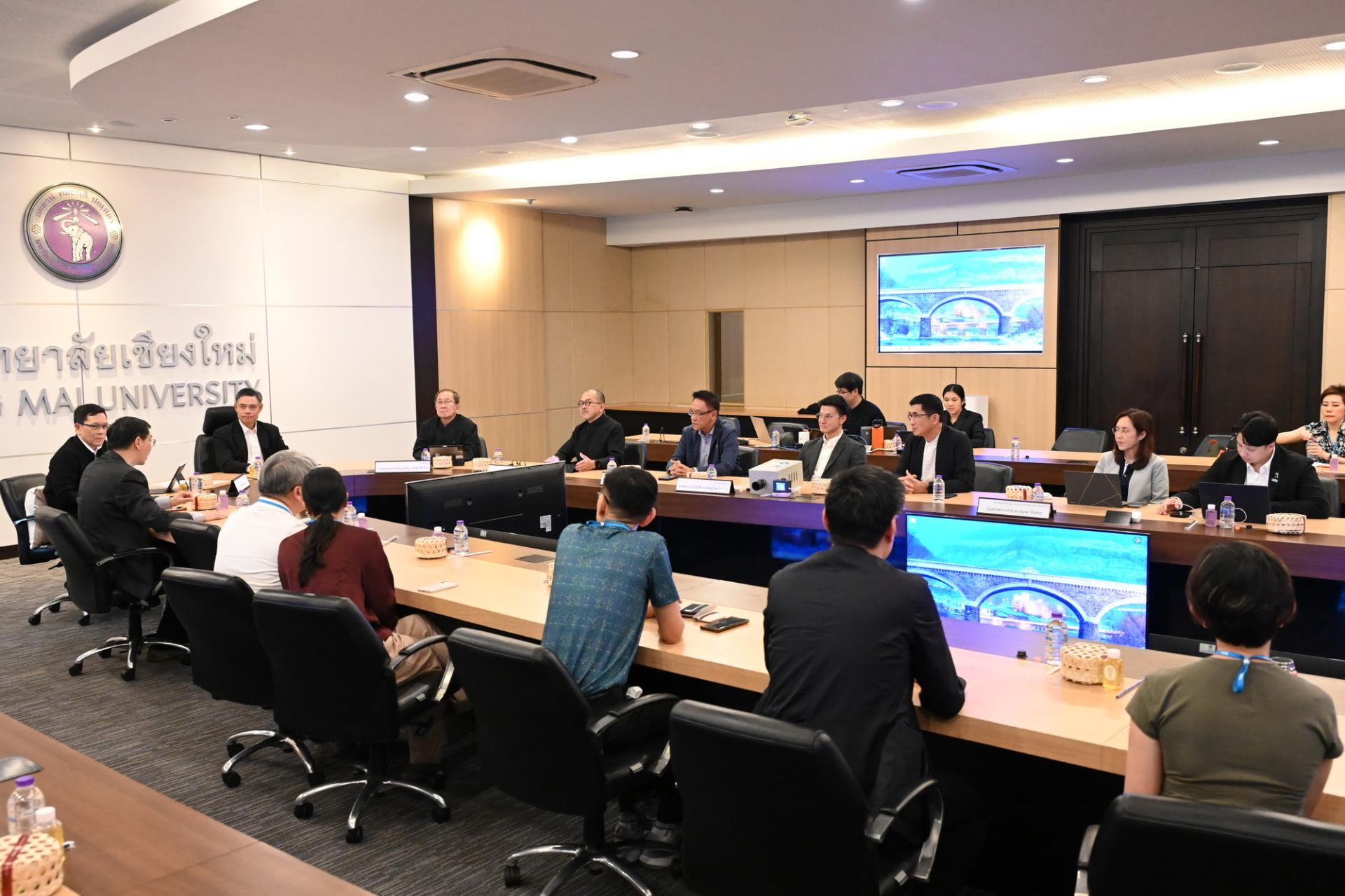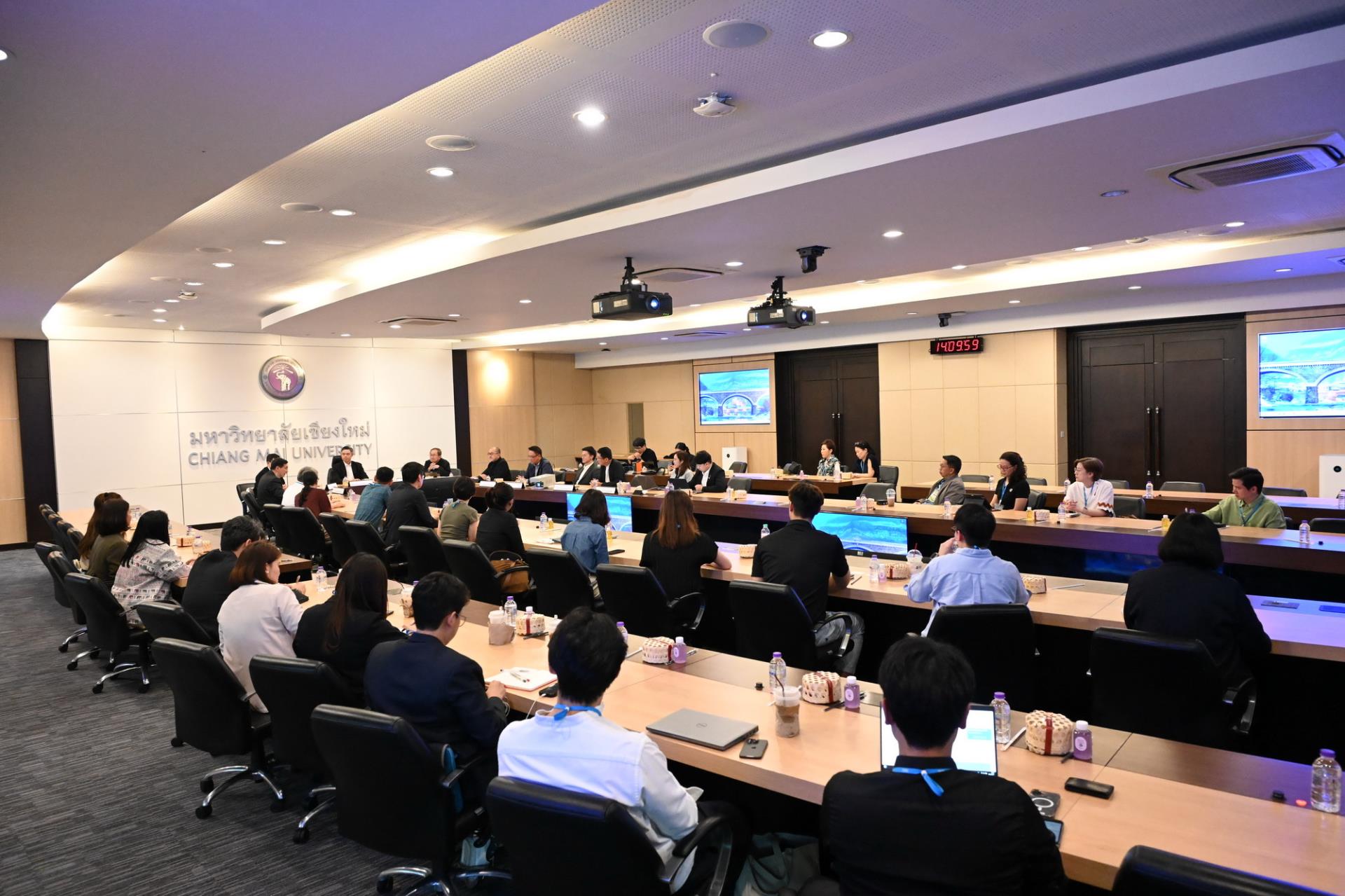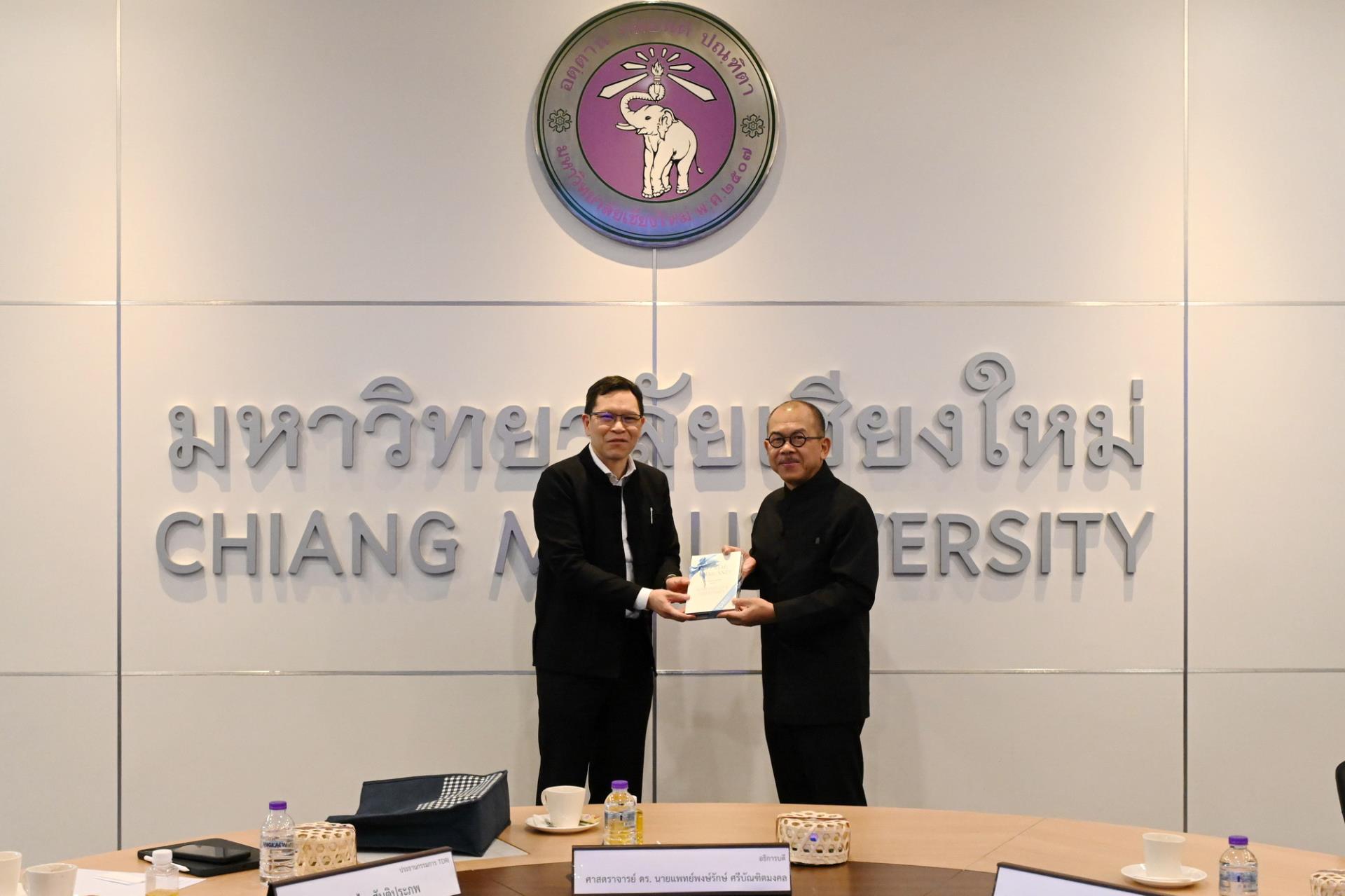 ศาสตราจารย์ ดร.นพ.พงษ์รักษ์ ศรีบัณฑิตมงคล อธิการบดีพร้อมด้วยคณะผู้บริหารมหาวิทยาลัยเชียงใหม่ ให้การต้อนรับคณะผู้บริหารจากสถาบันวิจัยเพื่อการพัฒนาประเทศไทย (TDRI) ในโอกาสที่มาเยี่ยมเยือนมหาวิทยาลัยเชียงใหม่ ในการศึกษาดูงานแลกเปลี่ยนเรียนรู้กับมหาวิทยาลัยเชียงใหม่ ณ ห้องประชุมตะวัน กังวานพงศ์ อาคารยุทธศาสตร์ สำนักงานมหาวิทยาลัย มหาวิทยาลัยเชียงใหม่ วันเสาร์ที่ 21 กุมภาพันธ์ พ.ศ. 2569