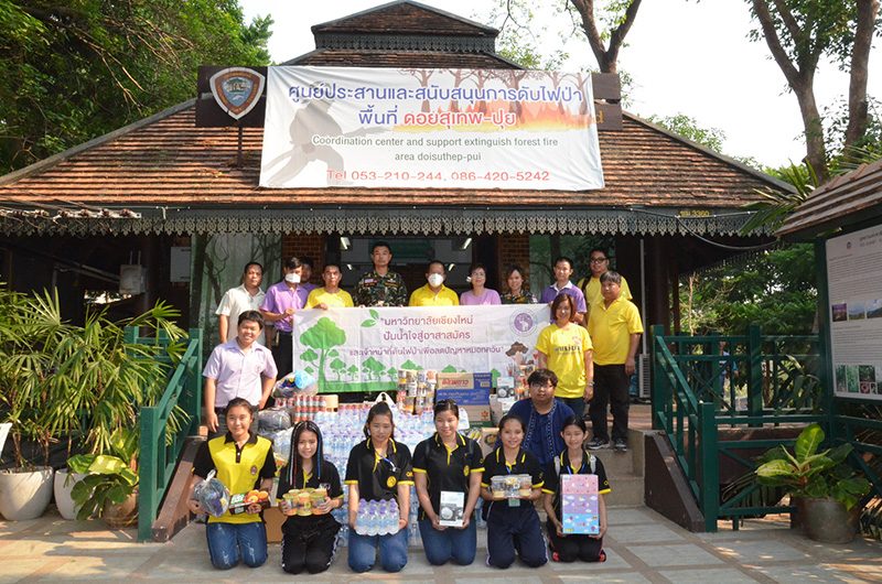 มอบอาหารแปรรูปและสิ่งของที่จำเป็น ช่วยเหลืองานเฝ้าระวังและทำแนวป้องกันไฟป่าในพื้นที่อุทยานดอยสุเทพ – ปุย