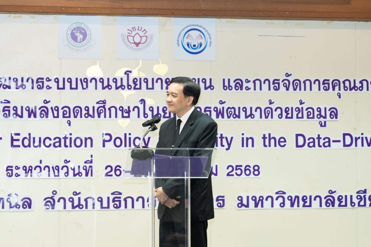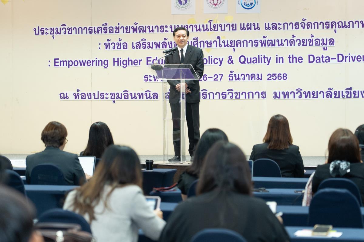 ศาสตราจารย์ปฏิบัติ ดร.ชรินทร์ เตชะพันธุ์ รองอธิการบดีมหาวิทยาลัยเชียงใหม่ เป็นประธานในพิธีเปิดการประชุมวิชาการเครือข่ายพัฒนาระบบงานนโยบาย แผน และการจัดการคุณภาพองค์กร (ปขมท.) ในหัวข้อ "เสริมพลังอุดมศึกษาในยุคการพัฒนาด้วยข้อมูล: Empowering Higher Education Policy & Quality in the Data-Driven Era" ซึ่งจัดร่วมกับสำนักบริการวิชาการ มหาวิทยาลัยเชียงใหม่ เพื่อพัฒนาศักยภาพบุคลากรสายสนับสนุนให้ก้าวทันความเปลี่ยนแปลง โดยเน้นการขับเคลื่อนองค์กรด้วยข้อมูล (Data-Driven) และปัญญาประดิษฐ์ (AI) ณ สำนักบริการวิชาการ มหาวิทยาลัยเชียงใหม่ เมื่อวันที่ 26 ธันวาคม 2568