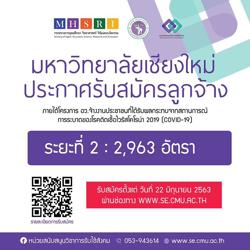 มหาวิทยาลัยเชียงใหม่ เปิดรับสมัครลูกจ้าง อว. ภายใต้โครงการจ้างงานประชาชนที่ได้รับผลกระทบ จากสถานการณ์การระบาดของโรคติดเชื้อไวรัสโคโรน่า (COVID-19) ระยะที่ 2