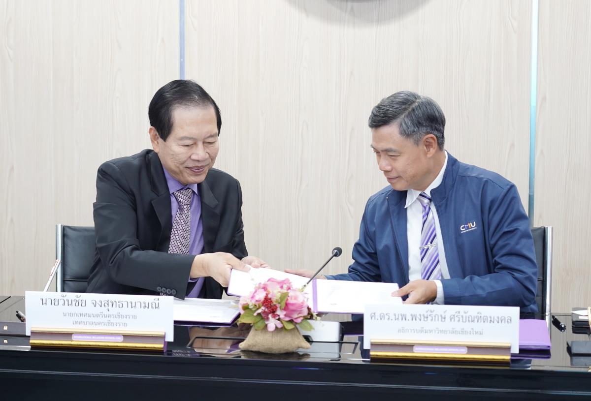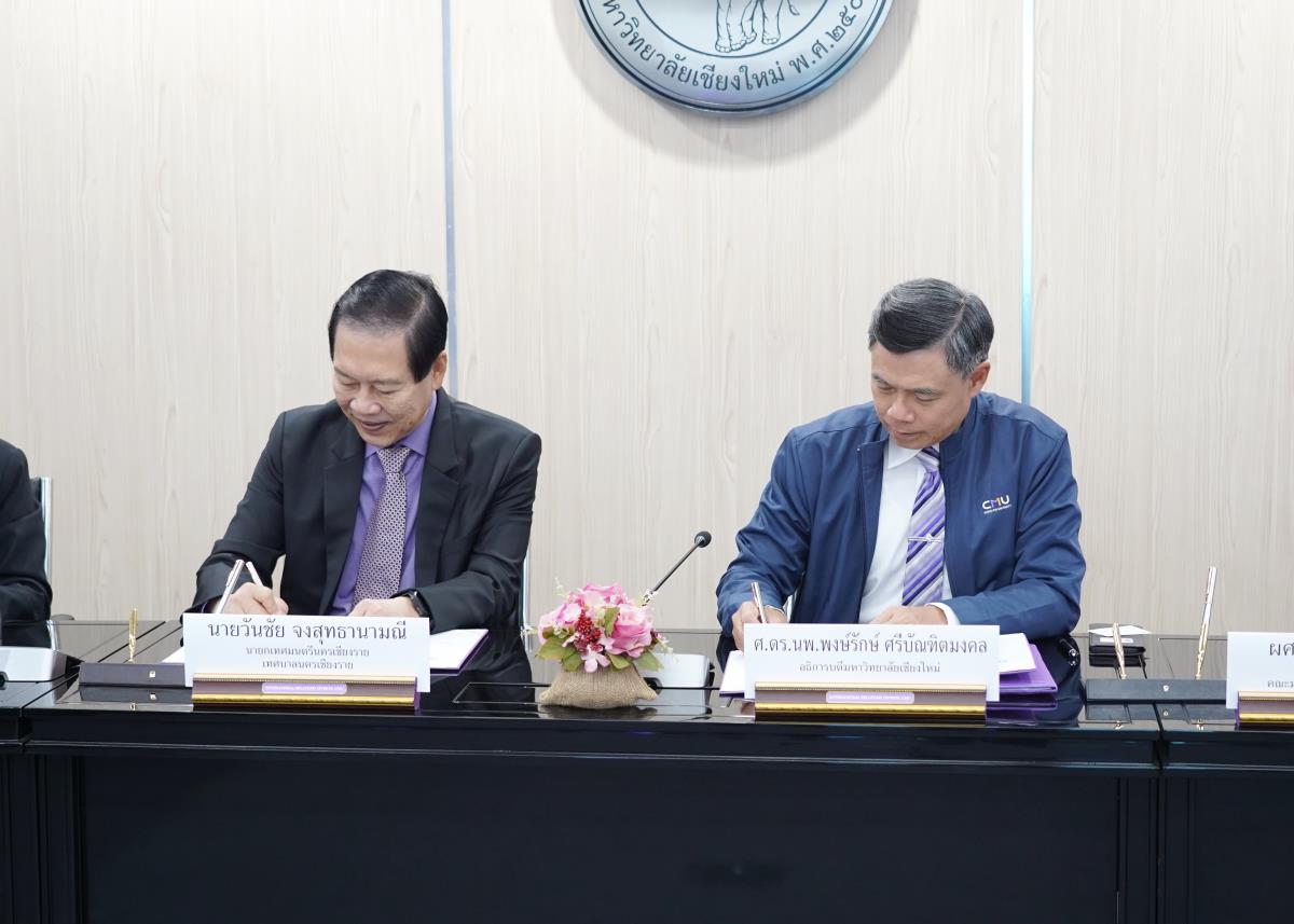 พิธีลงนามบันทึกข้อตกลงความร่วมมือทางวิชาการ ระหว่าง มหาวิทยาลัยเชียงใหม่ กับ เทศบาลนครเชียงราย และ คณะมนุษยศาสตร์ มหาวิทยาลัยเชียงใหม่ กับ โรงเรียนเทศบาล 6 นครเชียงราย