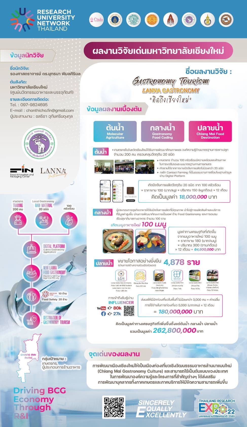 - ผลงานเด่นมหาวิทยาลัยเชียงใหม่ : โครงการ Gastronomy Tourism : Lanna Gastronomy คิดถึงเชียงใหม่ โดย ศูนย์นวัตกรรมอาหารและบรรจุภัณฑ์