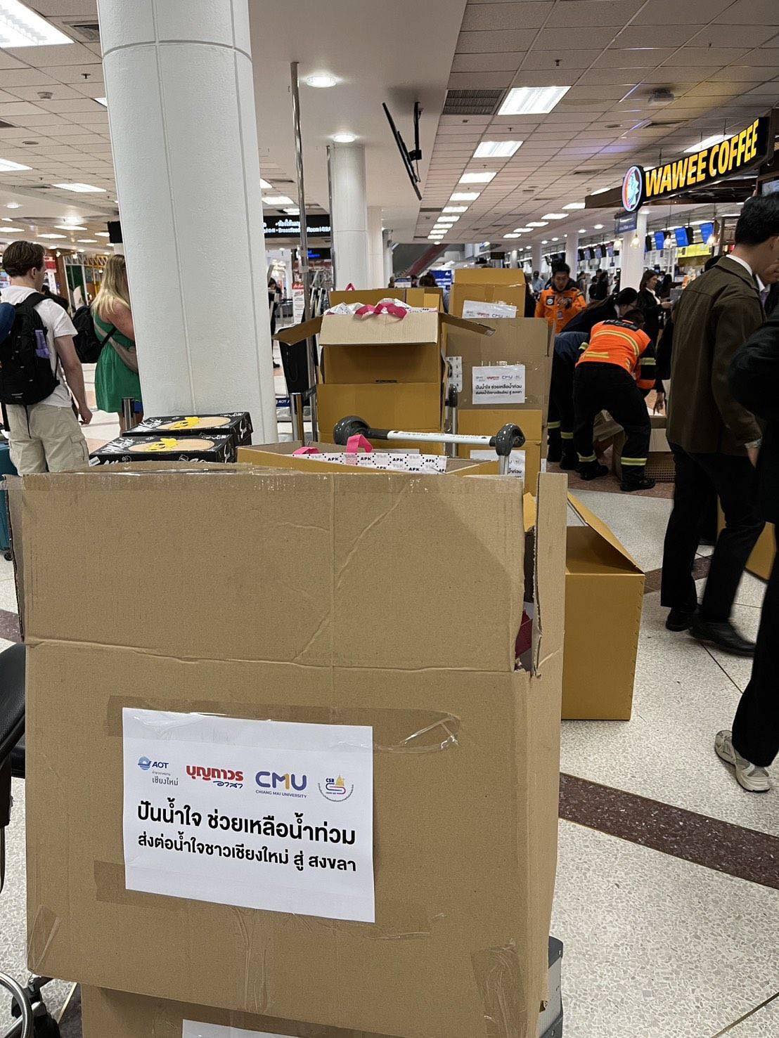 มหาวิทยาลัยเชียงใหม่แสดงความซาบซึ้งในความร่วมมือและมิตรไมตรีจากทุกหน่วยงาน รวมถึงประชาชนที่ร่วมบริจาคสิ่งของจำเป็นอย่างต่อเนื่อง เพื่อส่งต่อกำลังใจและบรรเทาความเดือดร้อนของพี่น้องชาวสงขลาในครั้งนี้ ขอเชิญร่วมบริจาครสิ่งของที่จำเป็นเร่งด่วน อาทิ แปรงสีฟัน ยาสีฟัน สบู่ เสื้อผ้า เสื่อปูที่นอน ผ้าขนหนู ผ้าห่ม ฯลฯ