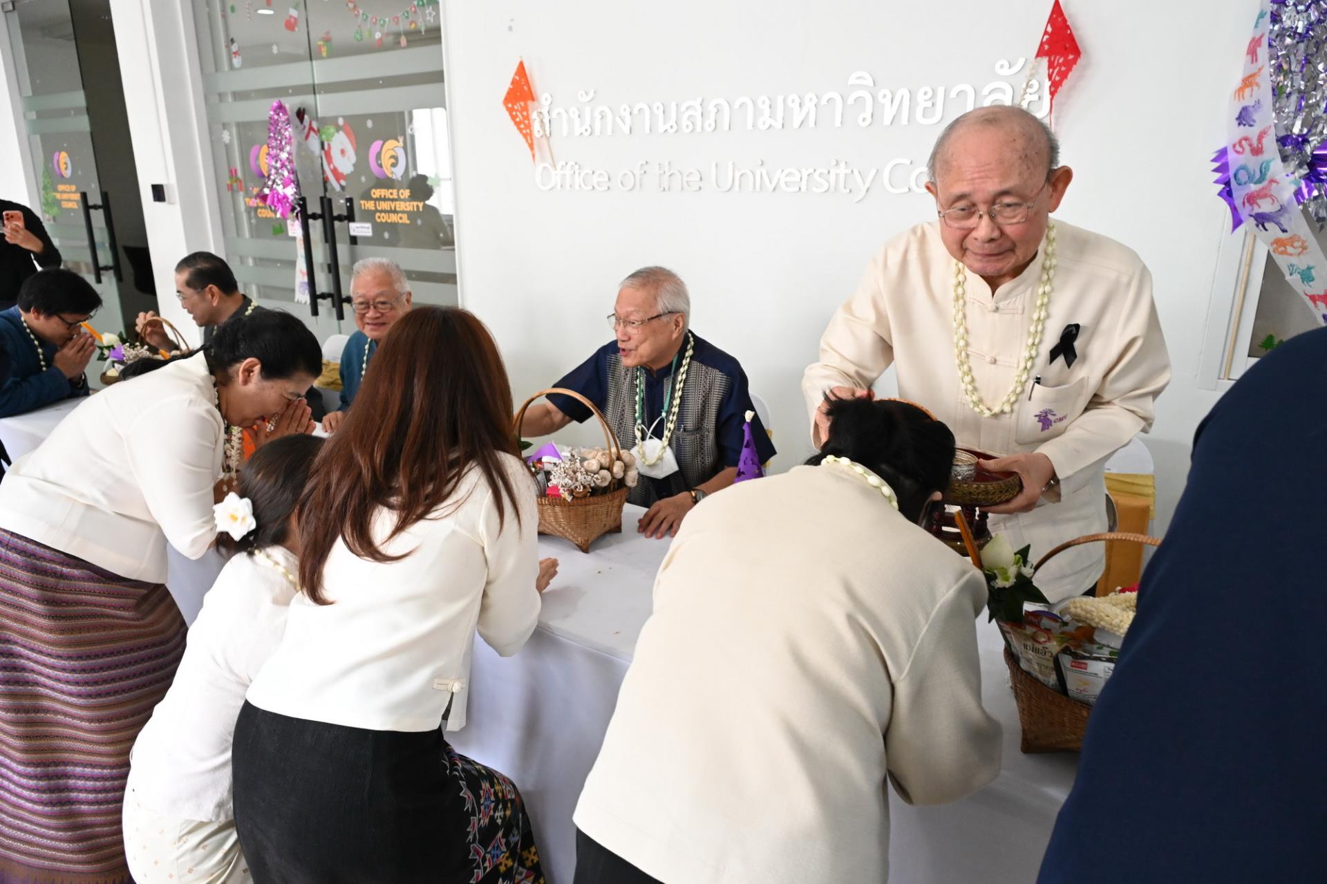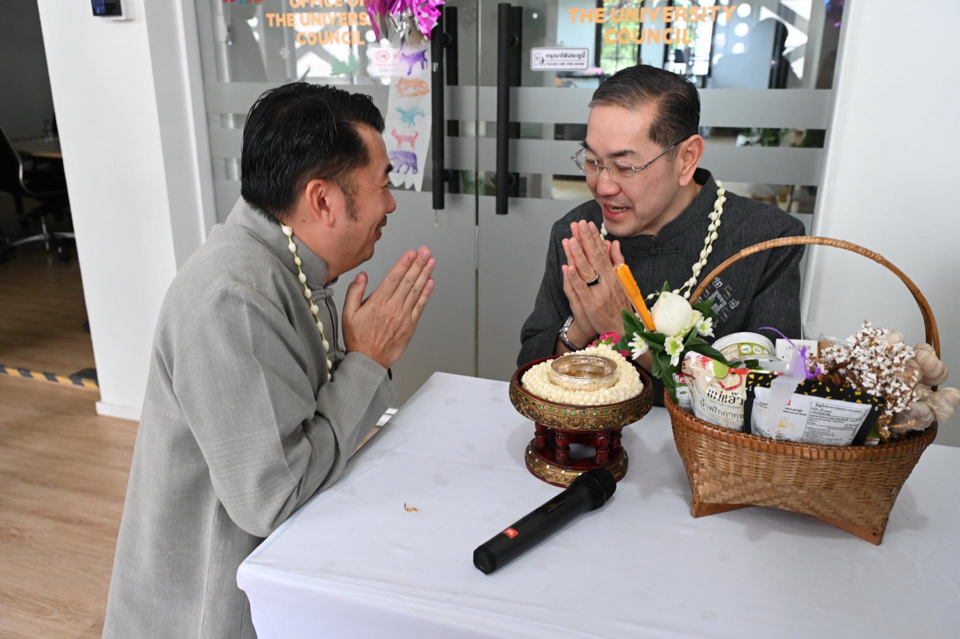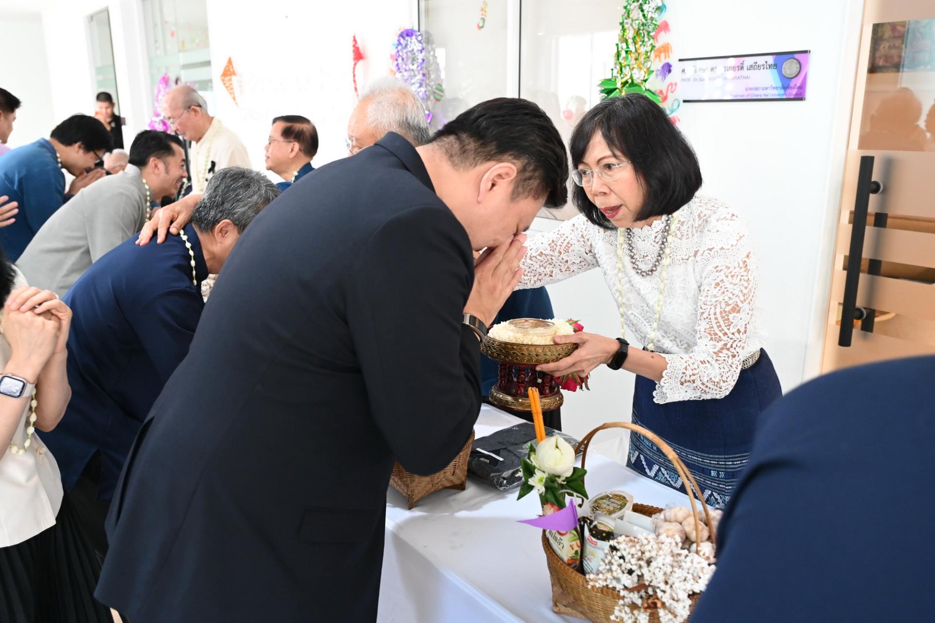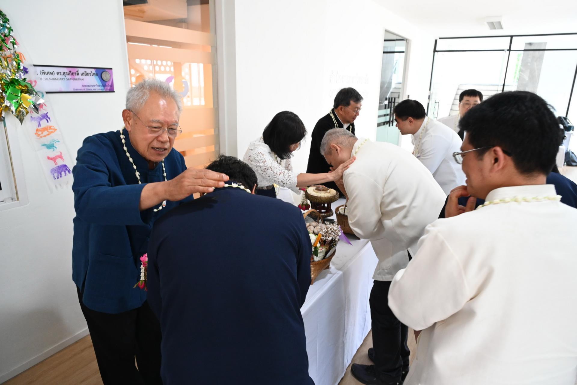 สำนักงานสภามหาวิทยาลัยเชียงใหม่ จัดพิธีดำหัวนายกสภาและคณะกรรมการสภามหาวิทยาลัยเชียงใหม่ เนื่องในโอกาสประเพณีปี๋ใหม่เมือง ประจำปีพุทธศักราช 2569 โดยมีศาสตราจารย์พิเศษ ดร.สุรเกียรติ์ เสถียรไทย นายกสภามหาวิทยาลัยเชียงใหม่ กล่าวให้พร ศาสตราจารย์ ดร.นพ.พงษ์รักษ์ ศรีบัณฑิตมงคล อธิการบดีมหาวิทยาลัยเชียงใหม่ กล่าวสูมาคารวะ พร้อมด้วยคณะผู้บริหาร คณาจารย์และเจ้าหน้าที่ ร่วมพิธี เพื่อขอสูมาคารวะ แสดงความเคารพ ตลอดจนการสืบสานรักษาวัฒนธรรมและประเพณีล้านนา ณ โถงชั้น 3 สำนักงานสภามหาวิทยาลัย อาคารยุทธศาสตร์ สำนักงานมหาวิทยาลัย มหาวิทยาลัยเชียงใหม่ วันเสาร์ที่ 25 เมษายน พ.ศ. 2569