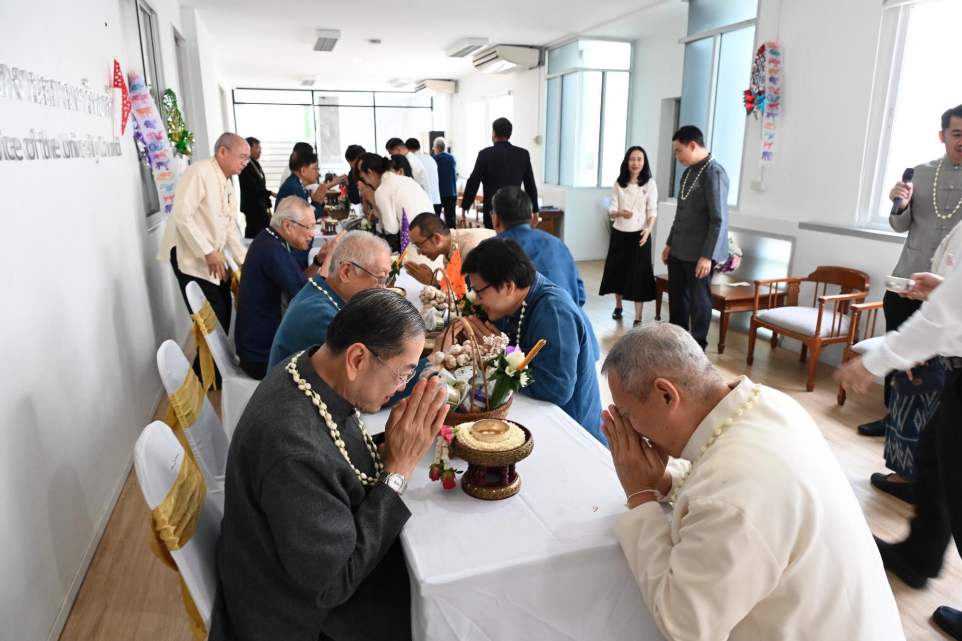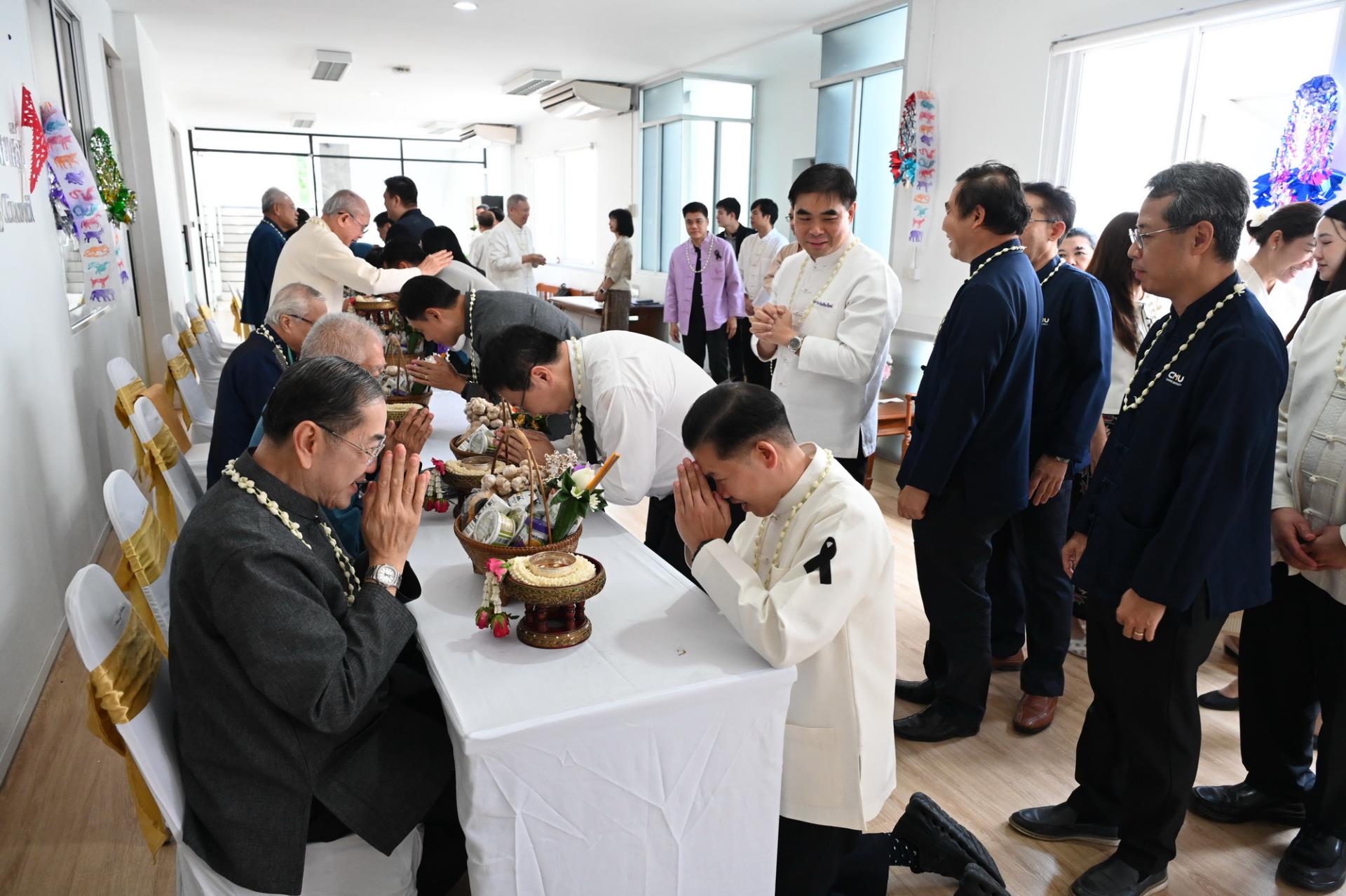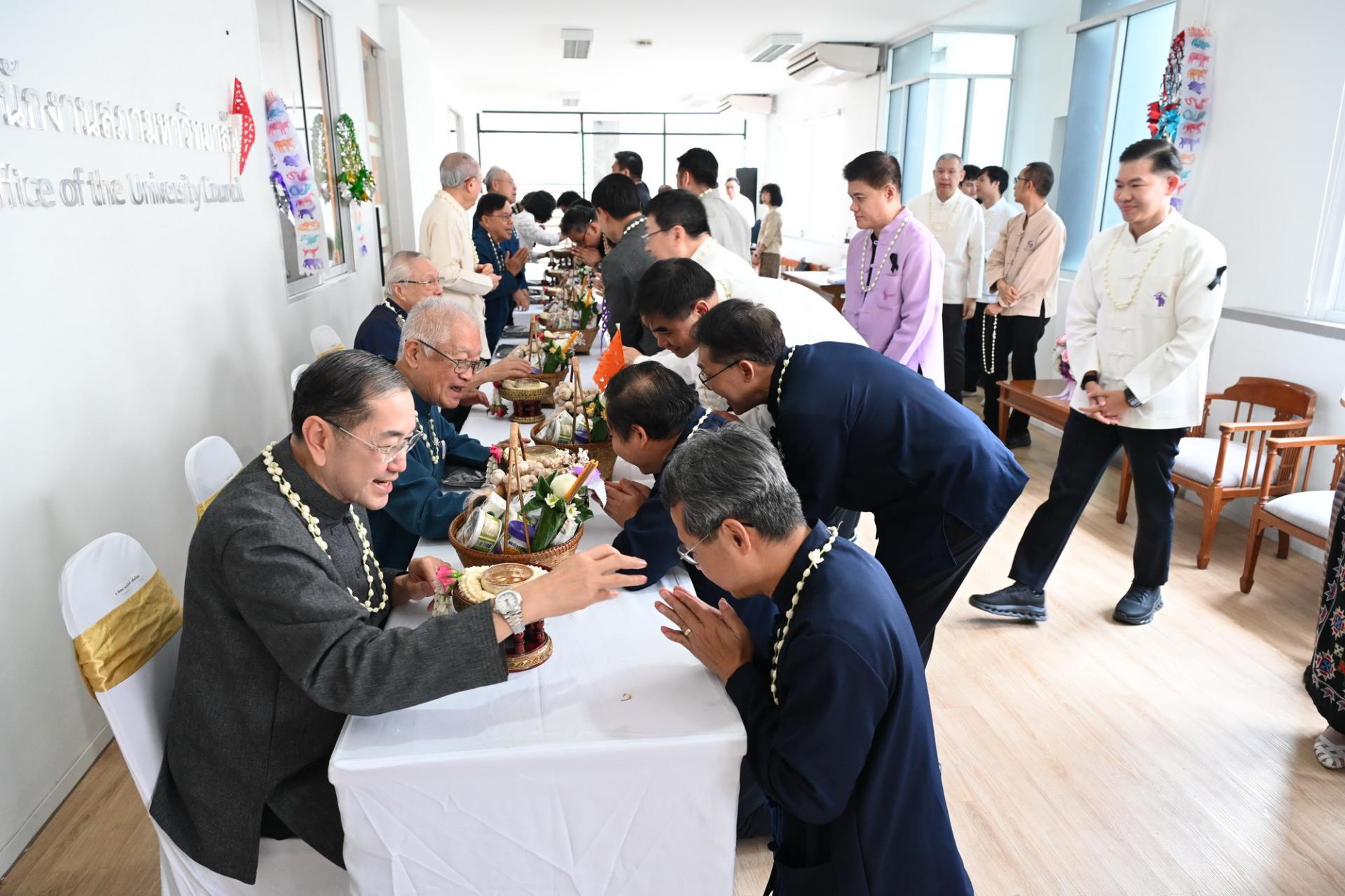 สำนักงานสภามหาวิทยาลัยเชียงใหม่ จัดพิธีดำหัวนายกสภาและคณะกรรมการสภามหาวิทยาลัยเชียงใหม่ เนื่องในโอกาสประเพณีปี๋ใหม่เมือง ประจำปีพุทธศักราช 2569 โดยมีศาสตราจารย์พิเศษ ดร.สุรเกียรติ์ เสถียรไทย นายกสภามหาวิทยาลัยเชียงใหม่ กล่าวให้พร ศาสตราจารย์ ดร.นพ.พงษ์รักษ์ ศรีบัณฑิตมงคล อธิการบดีมหาวิทยาลัยเชียงใหม่ กล่าวสูมาคารวะ พร้อมด้วยคณะผู้บริหาร คณาจารย์และเจ้าหน้าที่ ร่วมพิธี เพื่อขอสูมาคารวะ แสดงความเคารพ ตลอดจนการสืบสานรักษาวัฒนธรรมและประเพณีล้านนา ณ โถงชั้น 3 สำนักงานสภามหาวิทยาลัย อาคารยุทธศาสตร์ สำนักงานมหาวิทยาลัย มหาวิทยาลัยเชียงใหม่ วันเสาร์ที่ 25 เมษายน พ.ศ. 2569